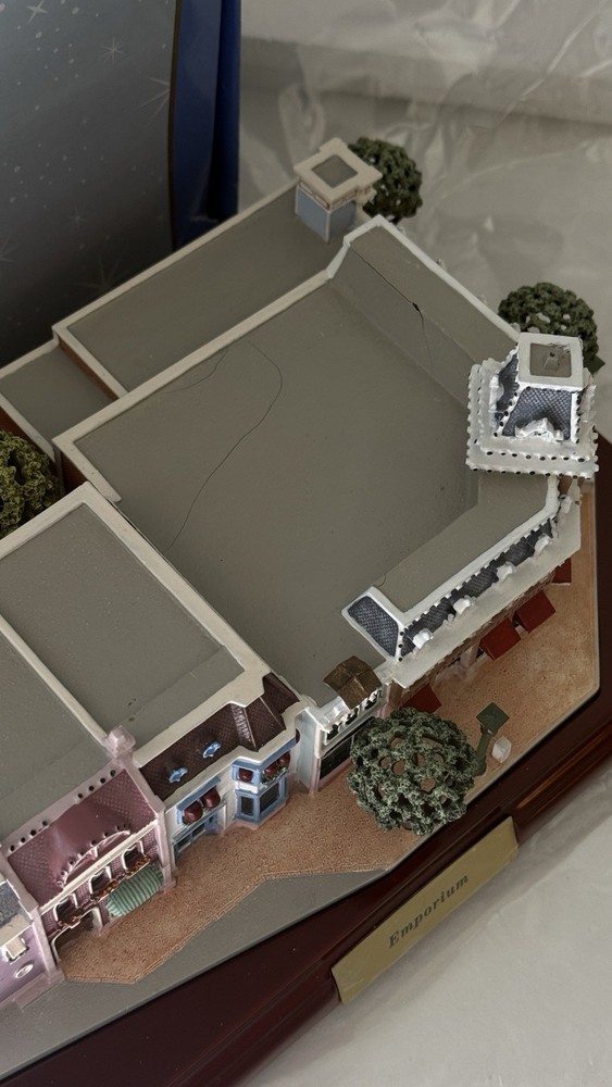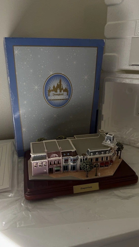 The Walt Disney World Main Street USA EMPORIUM Miniature First Edition by Olszewski is a collectible item that captures the charm and nostalgia of the classic Disney theme. Released in 2010, this miniature replica of Main Street USA from the Disney franchise is a special edition piece that would be a perfect addition to any Disney fan's collection. Featuring intricate details and craftsmanship, this item brings to life the beloved streets of Disney's Main Street USA in a smaller scale, making it a cherished memorabilia for fans of all ages. please view photos to see item condition  as seen in photos there seems to be a little bit of crack on the roof item is new inbox with all original parts and certificates. If you need additional information, please reach out.