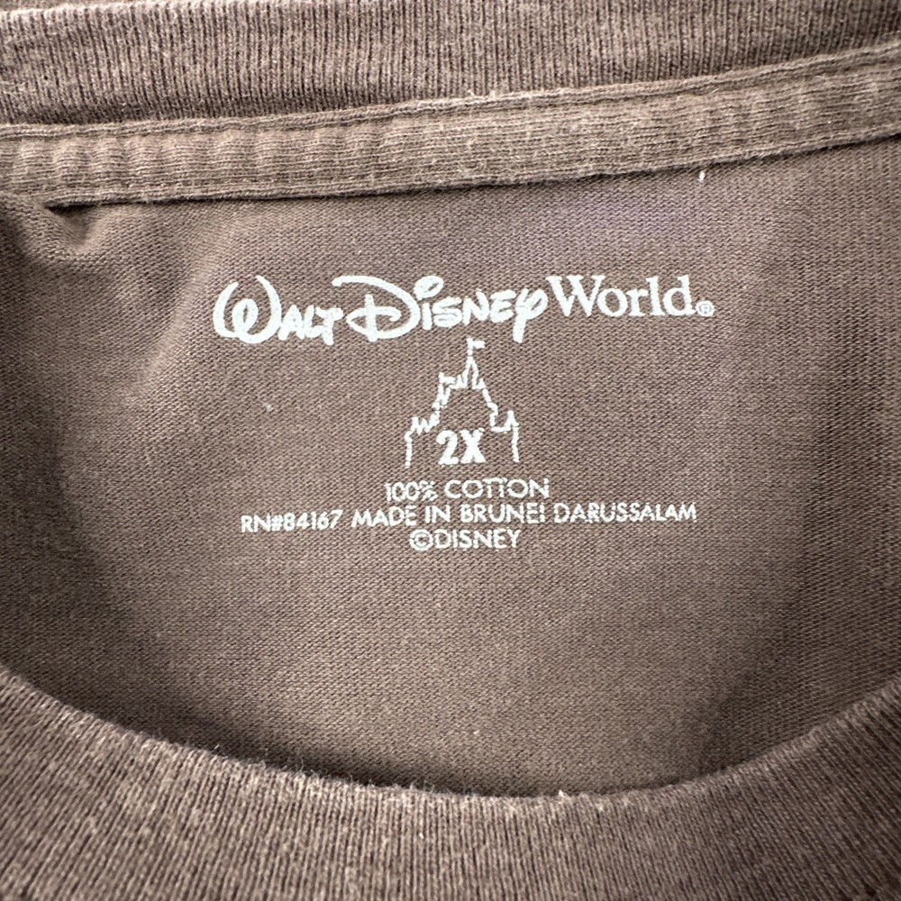 The product is a Walt Disney World Mickey Mouse brown long sleeve t-shirt in men's size 2X. This officially licensed shirt features the iconic Mickey Mouse character from the Disney franchise and is suitable for adults of any gender. The brown color adds a classic touch to the design, making it a must-have collectible for any Disney fan. Perfect for wearing around Walt Disney World or showing off your love for the beloved character.