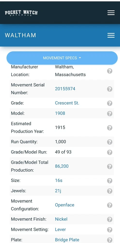 With Original Box/Packaging: No Dial Color: White Style: Railroad Grade Closure: Open Face Features: 12-Hour Dial Escapement Type: Lever Vintage: Yes Number of Jewels: 21 Jewels Indices: Arabic Numerals Personalize: No Brand: Waltham Model: Crescent With Papers: No Pocket Watch Size: 16 With Service Records: No Display: Analog Caseback: Screwback Movement: Mechanical (Manual) Year Manufactured: 1910-1919 Case Material: 10K RGP Materials sourced from: United States Water Resistance: Not Water Resistant Type: Pocket Watch Department: Men With Manual/Booklet: No Customized: No