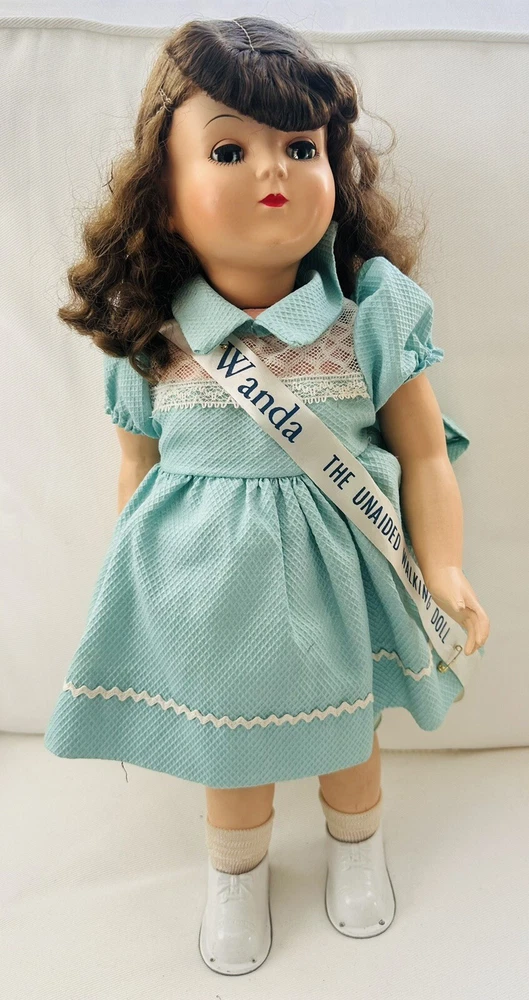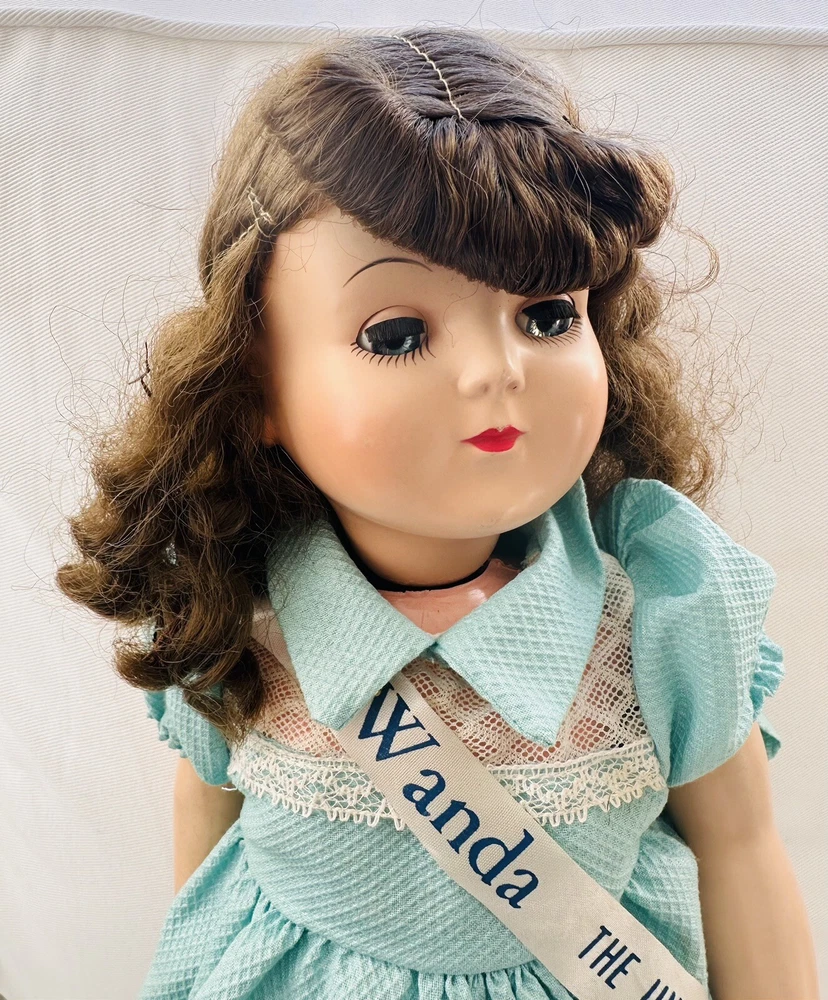 Original/Licensed Reproduction:OriginalHandmade:NoDoll Hair Type:WavyYear Manufactured:1950UPC:does not applyTime Period Manufactured:1950-1959Signed:NoVintage:YesFeatures:Collector Toy, Eyes Open and Close, Interactive, No Battery Used, Removable Clothes, Special Edition, Timeless Treasure, WashableMaterial:Hard PlasticUnit of Sale:Single UnitOccasion:All OccasionsDoll Gender:Girl DollEthnicity:Caucasiangtin13:does not applySet Includes:DollCharacter:WandaCountry/Region of Manufacture:United StatesType:Play/Collector Dol + Small 7.5" dollItem Length:18 inDoll Complexion:LightDoll Eye Color:BlueDoll Hair Color:BrownBrand:Advance Doll & Toy CoAntique:Yes