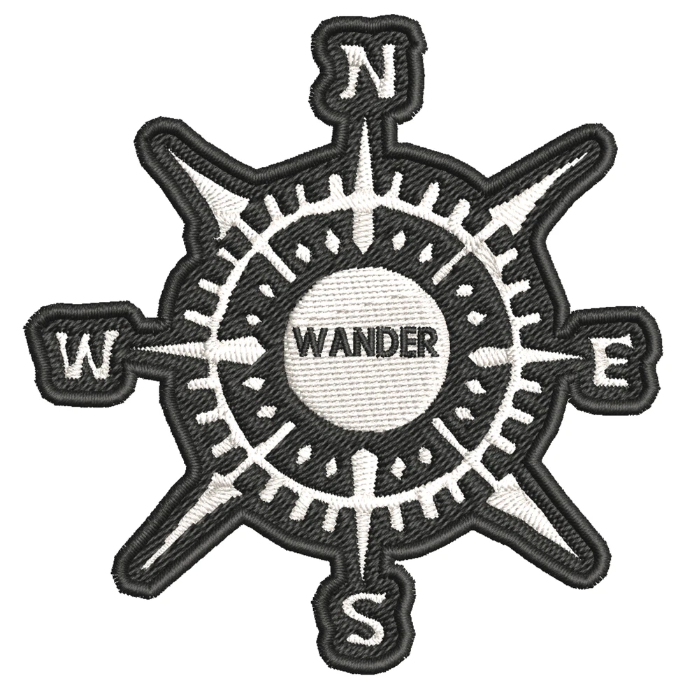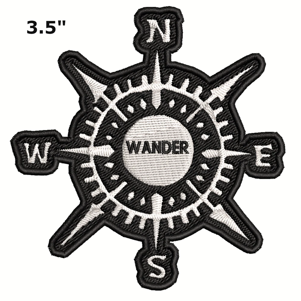 Wander Compass Black Patch Embroidered iron-on Applique Travel Souvenir