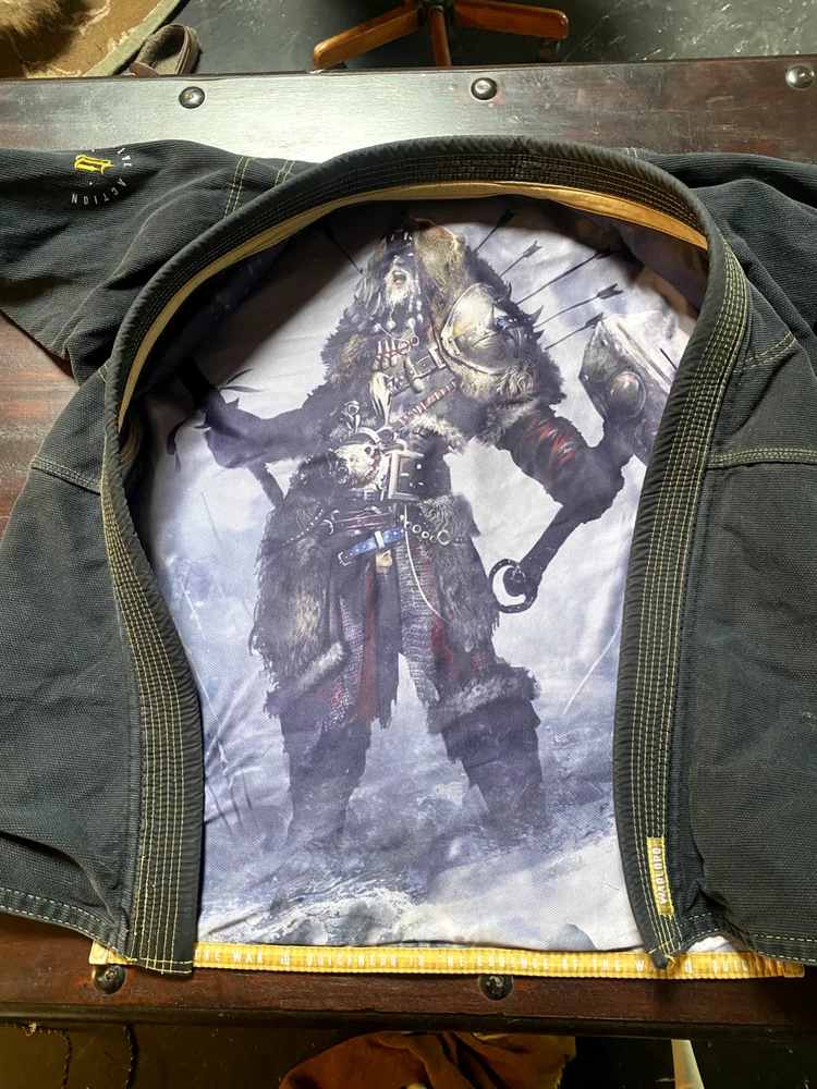 Crafted for the martial arts enthusiast, the War Tribe Gi "Warlord" in dark navy blue is a robust A2 jacket designed to offer both functionality and durability. The pearl weave construction ensures a lightweight yet resilient fit, suitable for practitioners of Jiu-Jitsu and other combat sports. The adult unisex gi is a versatile addition to any fighter's gear, featuring a classic blue color that stands out on the mat. With its thoughtful design and brand reputation for quality, the War Tribe gi is an essential piece for those dedicated to the art of self-defense and discipline.