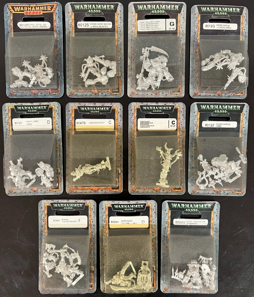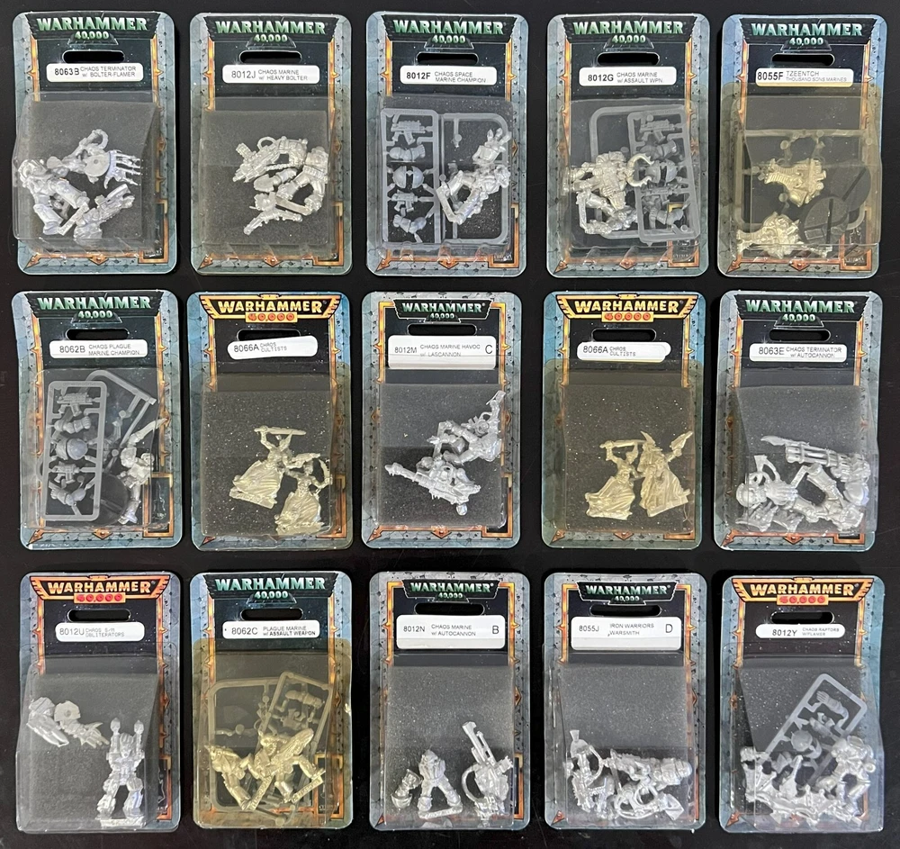 Warhammer 40K - Chaos Space Marines Blister Packs (1995-2000) Metal, Pewter Miniatures, Factory Sealed, New In Box, Out of Production / OOP, Vintage, Rare. I have a collection of Warhammer, Warhammer 40K, Mordheim, Gothic, Blood Bowl, Epic, Inquisition, Lord of the Rings, Necromunda, Gorkamorka, etc., boxed sets, whole armies, and blister packs. If you are looking for something, just ask, I just might have it. I accept offers on all merchandise, but keep in mind, I'm not giving anything away. Let's keep the offers realistic. Thanks for looking and Happy Hunting. Item is "new old stock" and has been sitting in storage on shelves for years (some for over 20 years). Some items may show signs of aging. If you need more pictures, please ask. I try to respond to all queries, comments, and concerns. All items are sold "as is." Feedback is always appreciated. I will leave some for you if you leave some for me. Thank you for your time.