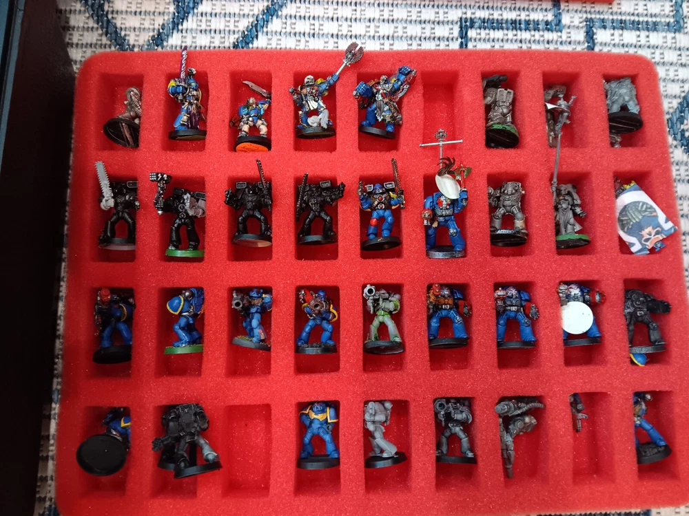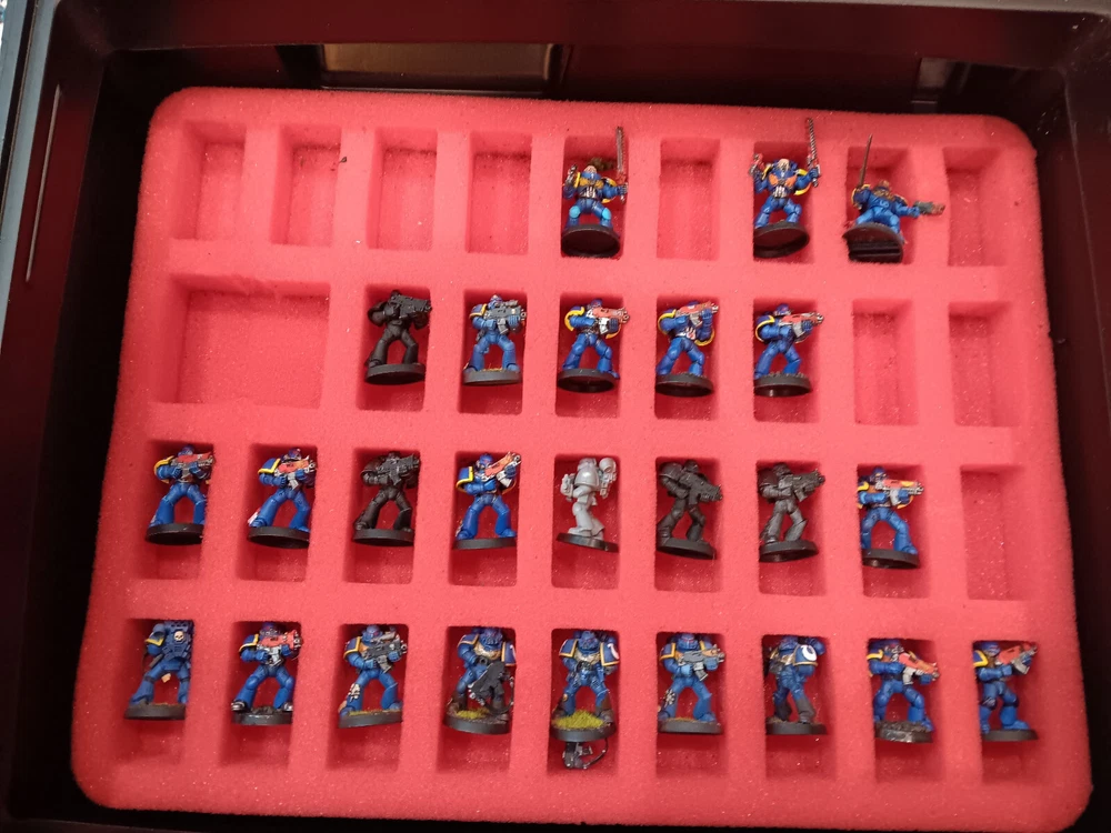 Everything in pictures included, what you see is what you receive. The listing includes models and carrying case. Jump start your Warhammer 40k fun with a ready to go army of space marines. Impress your friends, start a collection, or have enough models for a head to head match up. Official games workshop pre-2000 firstborn space marine models. They look like mainly 2cnd edition models, but please verify with the pictures. None of the models are new primaris. Some models may need pieces reattached. Most models are complete, but a few may miss a piece . Some models are painted, and some are ready for your custom paint job. If you need more information about a certain model, send a message before you bid. I can try and answer your questions. There are 70 total models included. Notable models are: Emperor Champion 2ncd Marneus Calgar 2cnd Epistolary 2cnd Chaplain 2cnd Scouts 2cnd Terminators and one with cyclone missle 2cnd Assault squad 2cnd CaptainTerminator 1999 Apothecary 2cnd Techmarine 2cnd (missing backpack) Devastators various tactical/combat squad