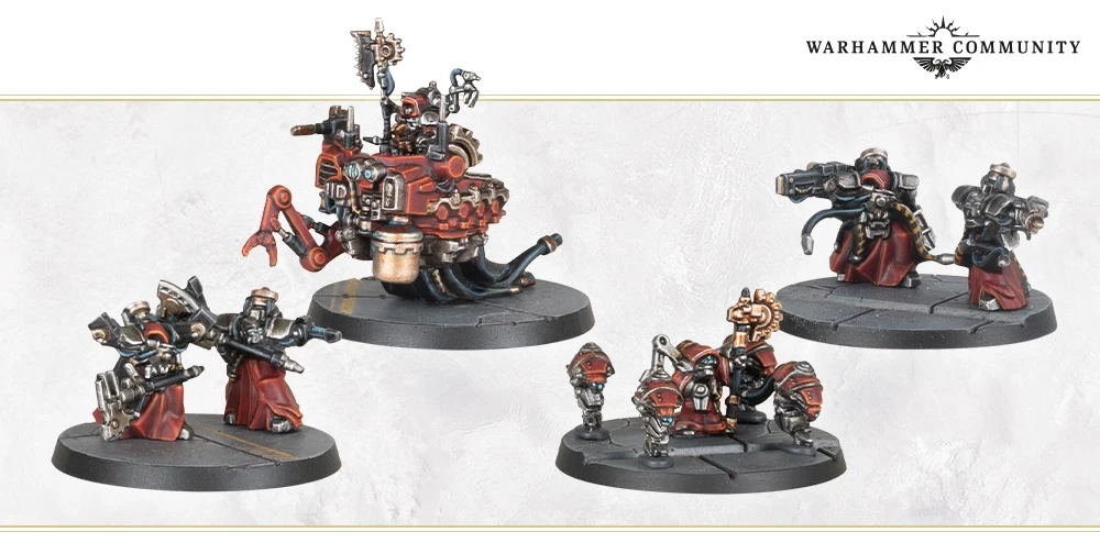Legions Imperialis: The Horus Heresy Mechanicum Battle Group The Mechanicum has access to resources on a scale unmatched in the Age of Darkness, not as numerous as some, nor as highly trained as others, but heavily augmented with technology to make up for both. For numbers, they create countless Tech-thralls, repurposed from the labouring workforces of forge worlds. For fire support, their battle-automata carry the heaviest of weapons with no thought of exhaustion or inconvenience. Commanded by brilliant, if eccentric, Archmagos Primes, they operate as a well-oiled machine – each cog in its place. This box contains a massive collection of Mechanicum miniatures to act as either the core of a new Mechanicum or Dark Mechanicum army, or as a versatile pool of allied Detachments for your existing collection. You'll find everything from dependable, yet disposable, infantry and transports, to specialised shock troops, and heavy support. This boxed set contains 146x epic scale plastic Citadel miniatures, which combine to build 56x Mechanicum or Dark Mechanicum models as follows: – 2x Archmagos Prime on Abeyant – 2x Vultarax Stratos-Automata – 2x Arlatax Battle-Automata – 2x Myrmidon Secutor Host bases – 2x Domitar Battle-Automata – 2x Tech-Priest Auxilia bases – 2x Vorax Battle-Automata bases – 4x Ursarax Cohort bases – 4x Triaros, and accessories – 4x Castellax Battle-Automata bases – 4x Myrmidon Destructor Host bases – 8x Thallax Cohort bases – 8x Thanatar Siege-Automata, weapon options, and accessories – 10x Adsecularis Tech-Thrall bases This kit includes 530 plastic components, 16x Legions Imperialis 32mm Round Bases, and 38x Legions Imperialis 25mm Round Bases. These miniatures are supplied unpainted and require assembly – we recommend using Citadel Plastic Glue and Citadel Colour paints. The individual miniatures in this set will be available separately at a later date.