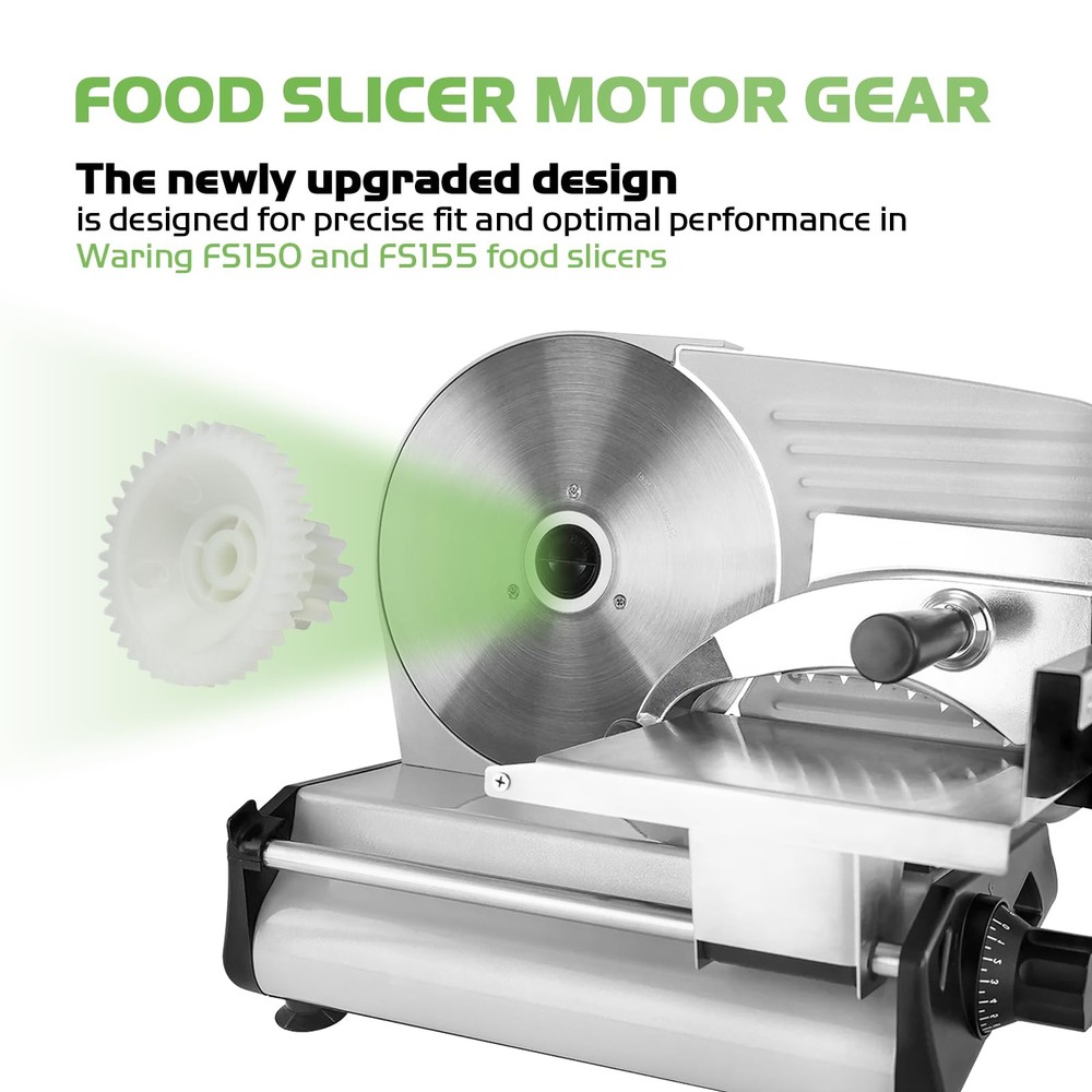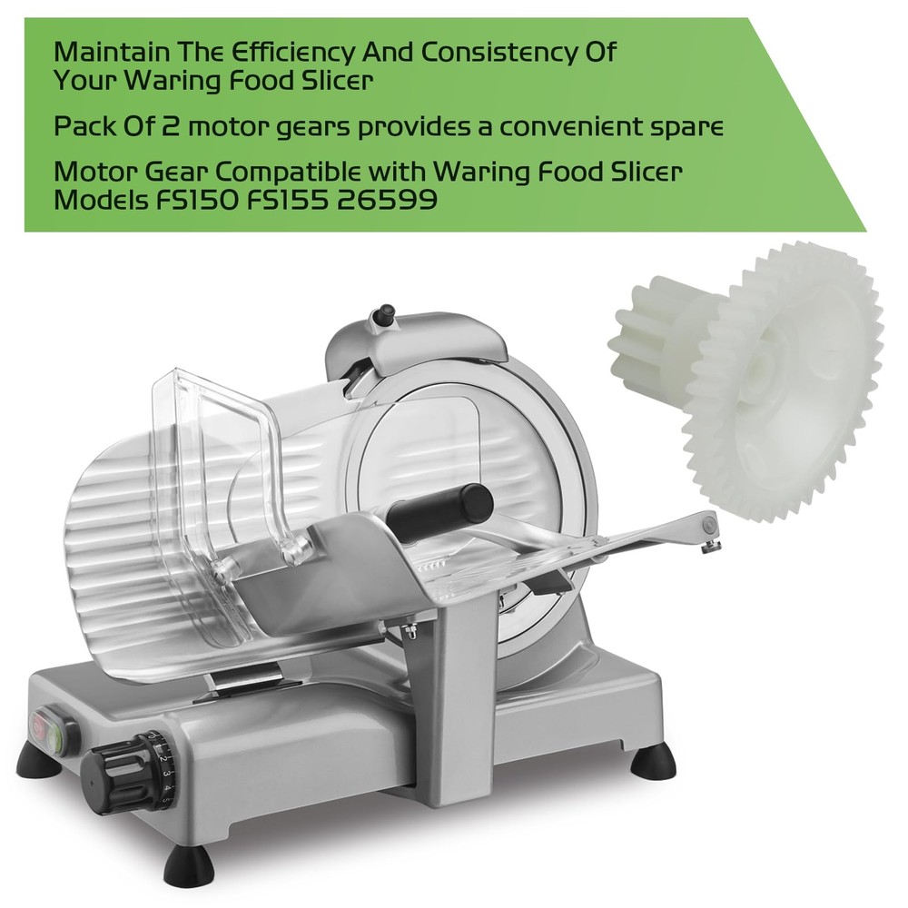 Pokin food slicer motor gear fit for Waring Professional food slicer Food Slicer Motor Gear The newly upgraded design is designed for a precise fit and optimal performance in Waring FS150 and FS155 food slicers Item specifics Type: motor gear Material: Plastic Model number: 026599 Food Slicer Models: FS150 FS155 26599 Package included: 2 pack gears EASY REPLACEMENT GEAR Transfers are easy to install It fits perfectly into place Smooth to use when replacing with new ones Quality Parts Restore Your Slicer To Peak Condition Meat Slicer Parts: Package of 2 motor gears, Food slicer motor gear compatible with Waring Professional food slicer models FS150 FS-150 FS155, Replace part number 026599,26599. Premium Quality: Food slicer motor gear, Made of high-quality materials, Designed for precise fit and optimal performance in Waring FS150 and FS155 food slicers Easy to install: Motor gears before installation, Please remove/install screws with a Phillips screwdriver. Quality parts restore your slicer to peak condition Motor Gear Function: Newly upgraded food slicer motor gear, Durable construction ensures long-lasting use and reliable operation, Maintaining the efficiency and consistency of your Waring food slicer 【AFTER-SALE SUPPORT】If you have any questions or concerns about our food meat slicer motor gear replacement parts, please do not hesitate to contact us. We will do our best to provide you with a satisfactory shopping experience.