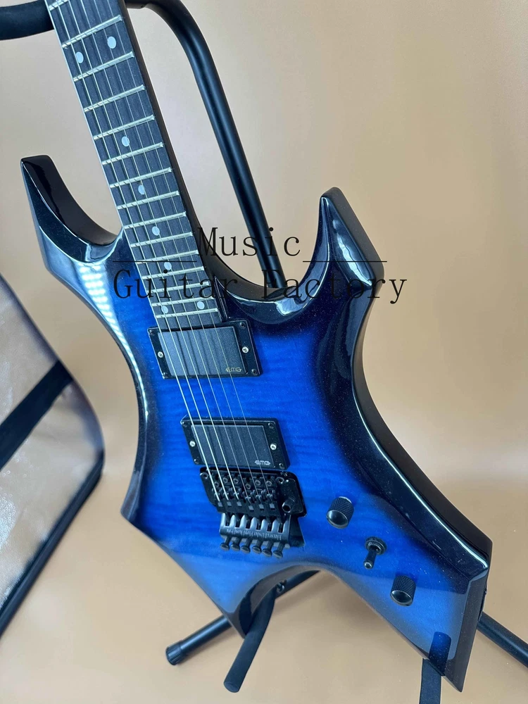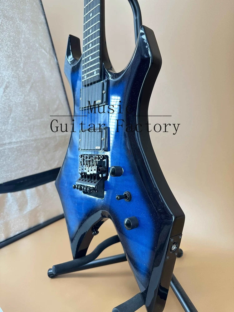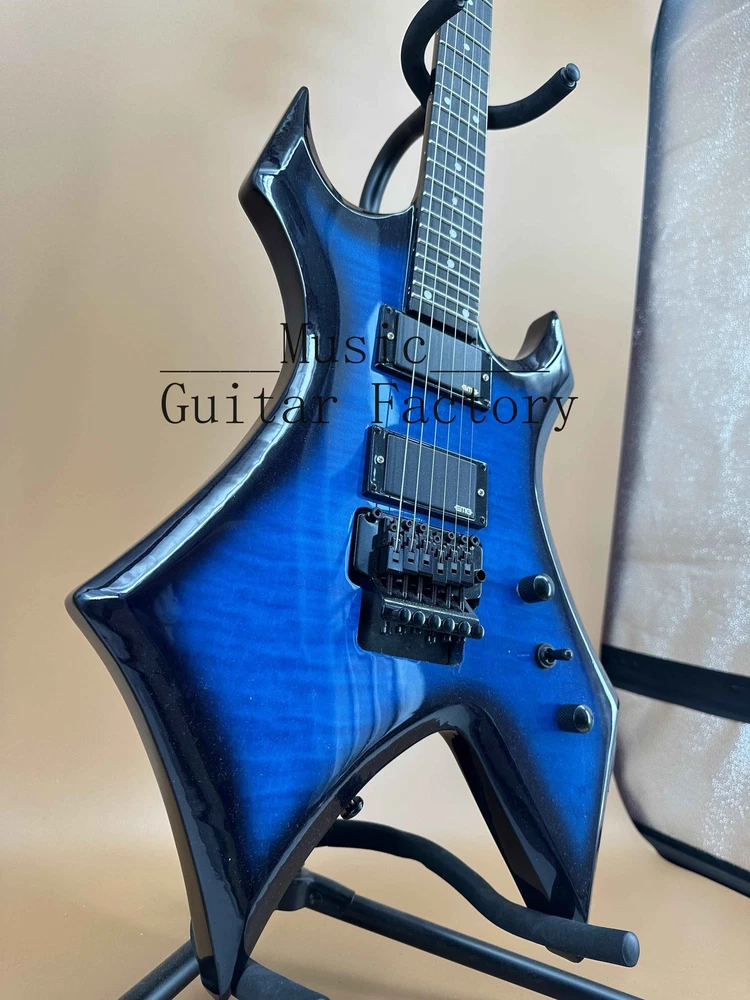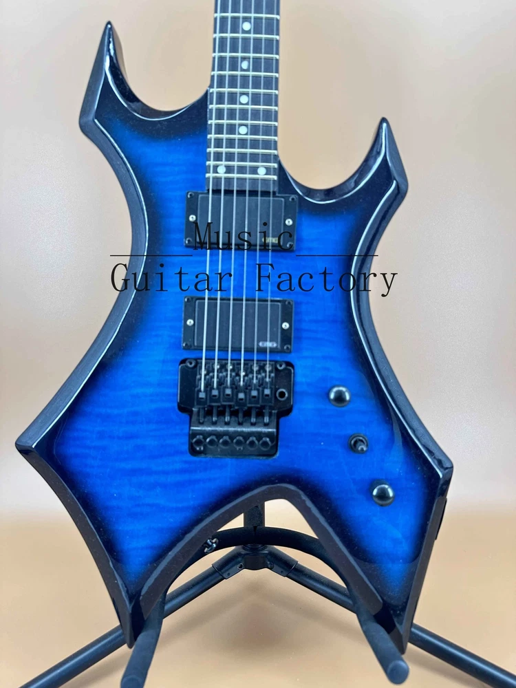 Warlock Blue Flame Maple Top Electric Guitar HH Pickup Black Hardware Fast Ship