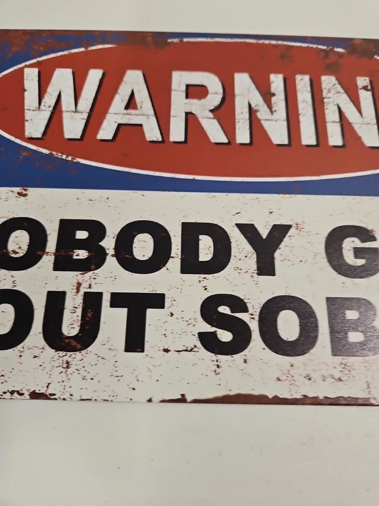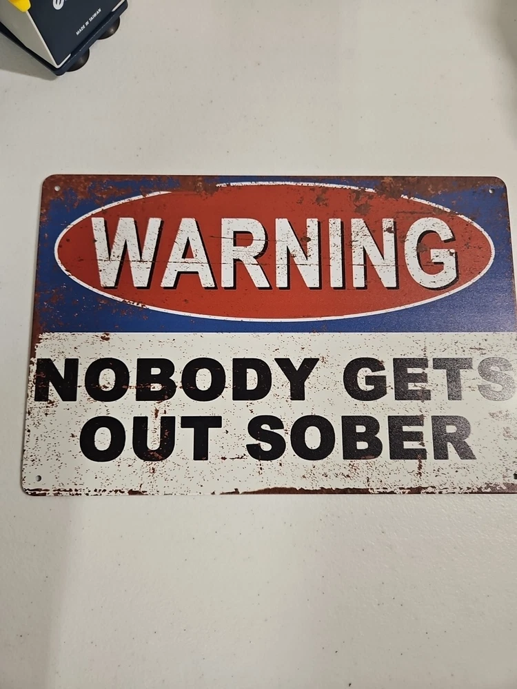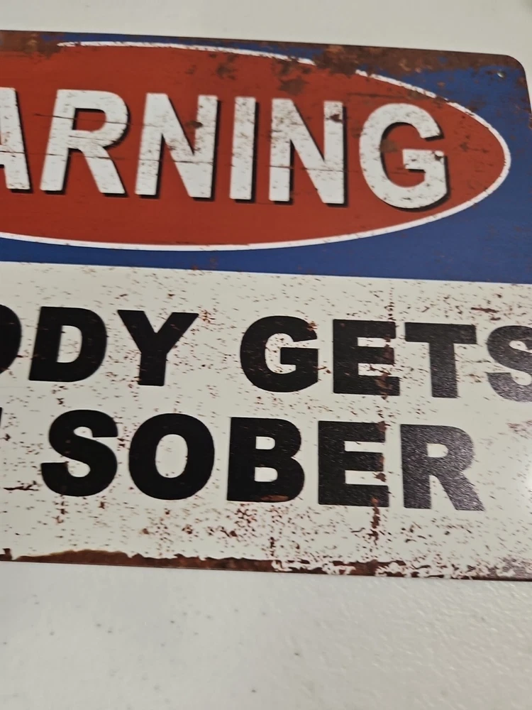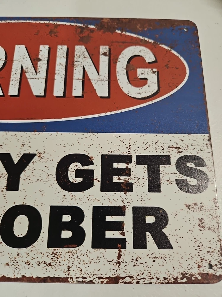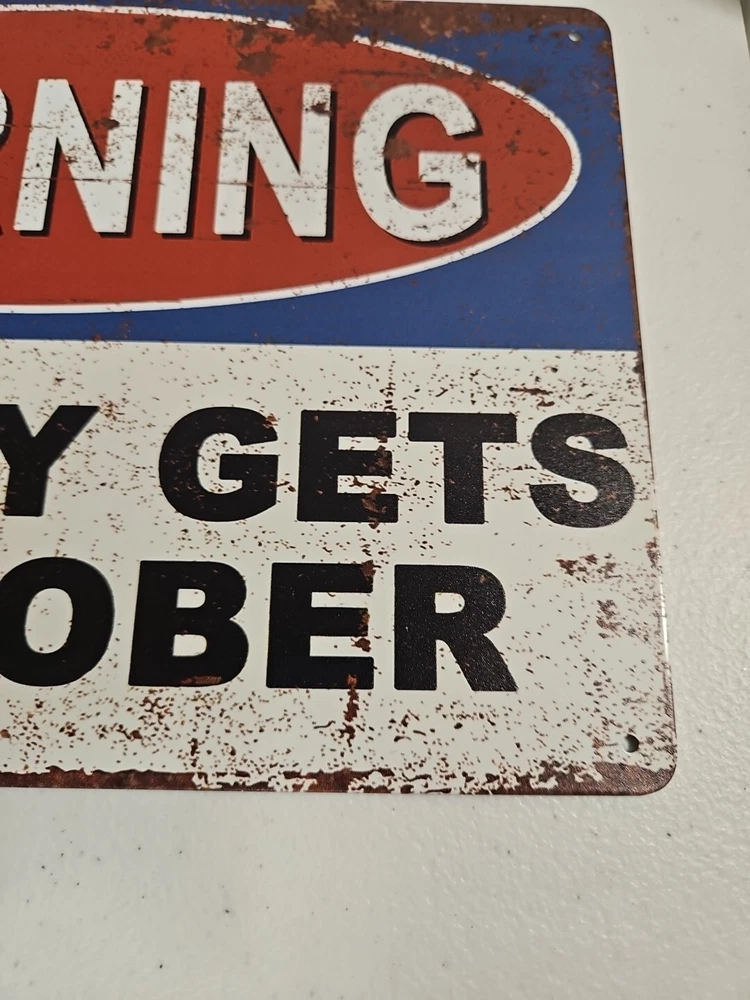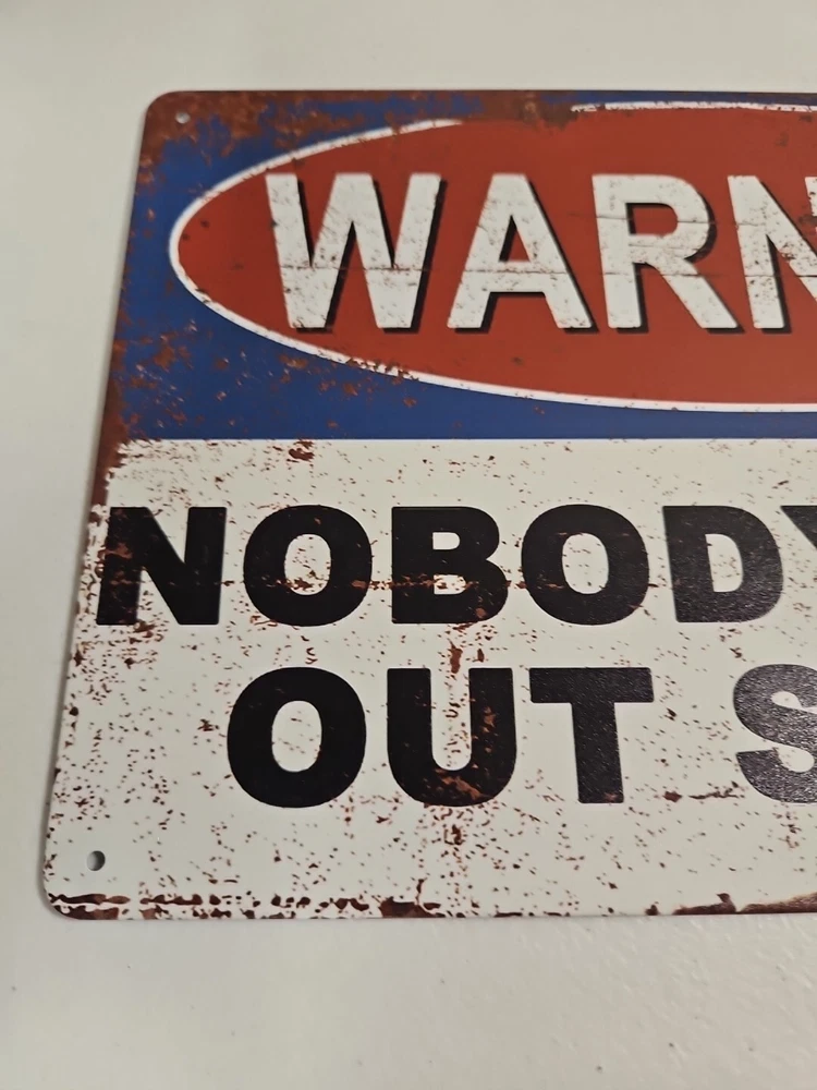 This unique 8x12 metal sign will definitely grab the attention of anyone passing by. Its rustic and primitive style, along with the humor theme, makes it the perfect decoration for any room, whether it's indoors or outdoors. The sign is ready to hang and has a ruffled look that adds to its charm. The rectangular shape and metallic finish make it a perfect fit for any home decor. It can be mounted on a wall or door, and the sign is made of high-quality metal that will last for years to come. This sign is perfect for those who want to add a touch of humor to their living room, lounge, porch, or patio.