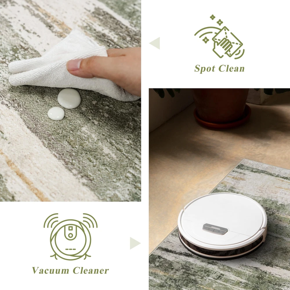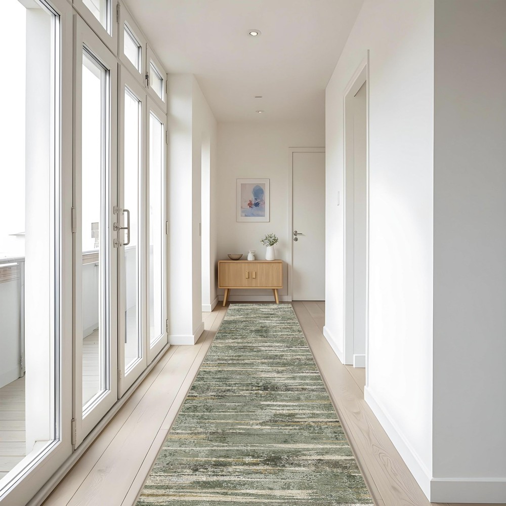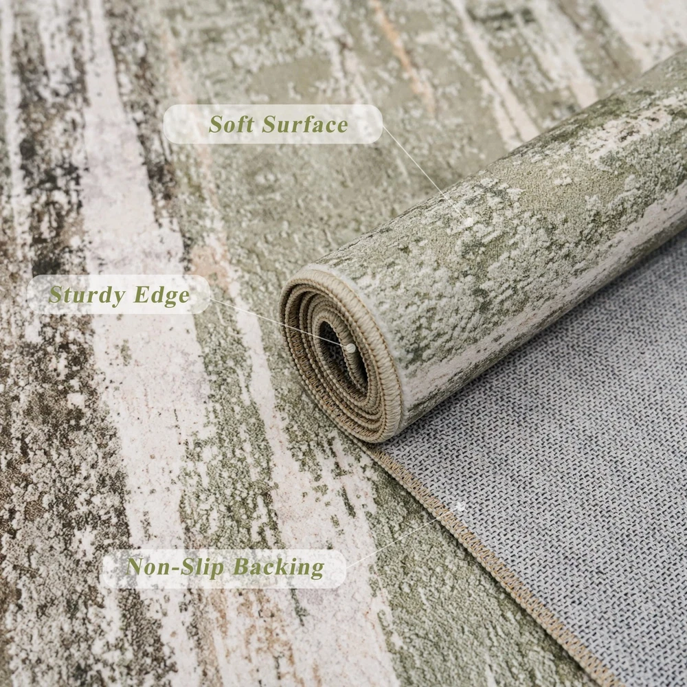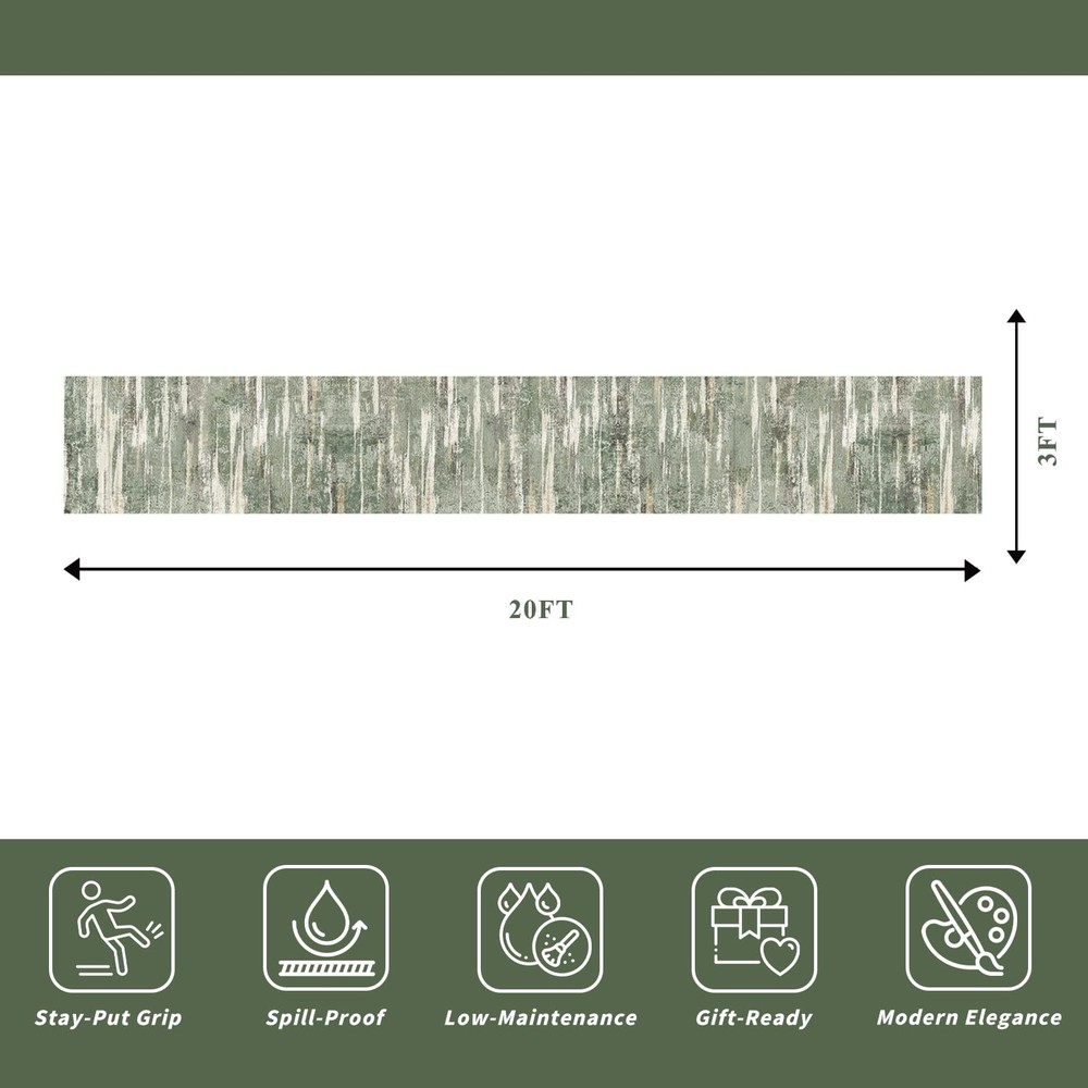 Washable 3x20 Hallway Runner Rug - Extra Long Modern Abstract Kitchen Rugs with Non Slip Backing Soft Low Pile Living Room Bedroom Carpet Durable Indoor Home Decor Floor Mat for Bathroom 3x20 Green Effortless Clean Tech: Accidental spills vanish instantly—just blot with water, no harsh chemicals needed. For deep cleaning, simply toss the long rug runner into the washing machine (cold cycle recommended). Pet owners love how it handles muddy paws, while busy households appreciate its seamless compatibility with robot vacuums, daily upkeep is a breeze. No more tedious scrubbing—just a fresh soft runner rug ready for daily foot traffic Non-Slip TPR Backing: Designed to grip hard surfaces like wood, tile, or laminate,long runner rug for hallway 20 ft stays firmly in place even in busy kitchens or hallways—no slipping, no curling edges. While the 100% recyclable TPR material reduces environmental impact compared to traditional rubber Low Pile and Lightweight Design: At just 0.14 inches thick, this low pile area rug seamlessly fits under doors - doesn’ t interfere with door swings. And the lightweight design of the extra long hallway runner rugs 20 ft allows solo dwellers to effortlessly roll the carpet runners for hallway 20 ft up for storage or reposition it in compact spaces Premium Soft-Touch Surface: Engineered to redefine plush comfort, this floor runner transcends natural fibers with cashmere-soft indulgence that withstands shedding, humidity, and daily wear. Featuring reinforced double-stitched edges for machine-wash convenience, the soft runner rug masterfully blends cloud-like tactile luxury with certified durability—creating enduring elegance that matures gracefully through life’s footsteps Tips for Creases: The 3 x 20 ft runner rug for hallway may arrive with temporary creases. To remove them, turn the hall runners 20 feet long non slip face down and lightly spray the creases and wrinkles with water from a spray bottle. Then, lay the green runner rug face down in direct sunlight for about 20 minutes. This method is safe for the rug, and all creases and wrinkles will disappear Coastal Western Abstract Artistry: Channel California cool with organic wave patterns and desert sunset hues. Our modern area rug blends with coastal farmhouse, Santa Fe boho, or modern ranch aesthetics. Neutral tones anchor bold furniture, while the vivid color elevate sterile spaces. It’s the “quiet statement piece” for those who hate overused nautical motifs but crave relaxed sophistication