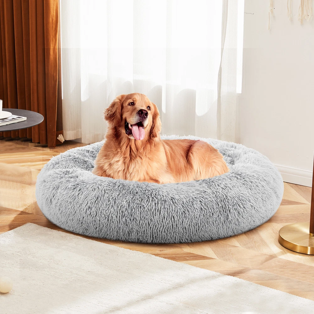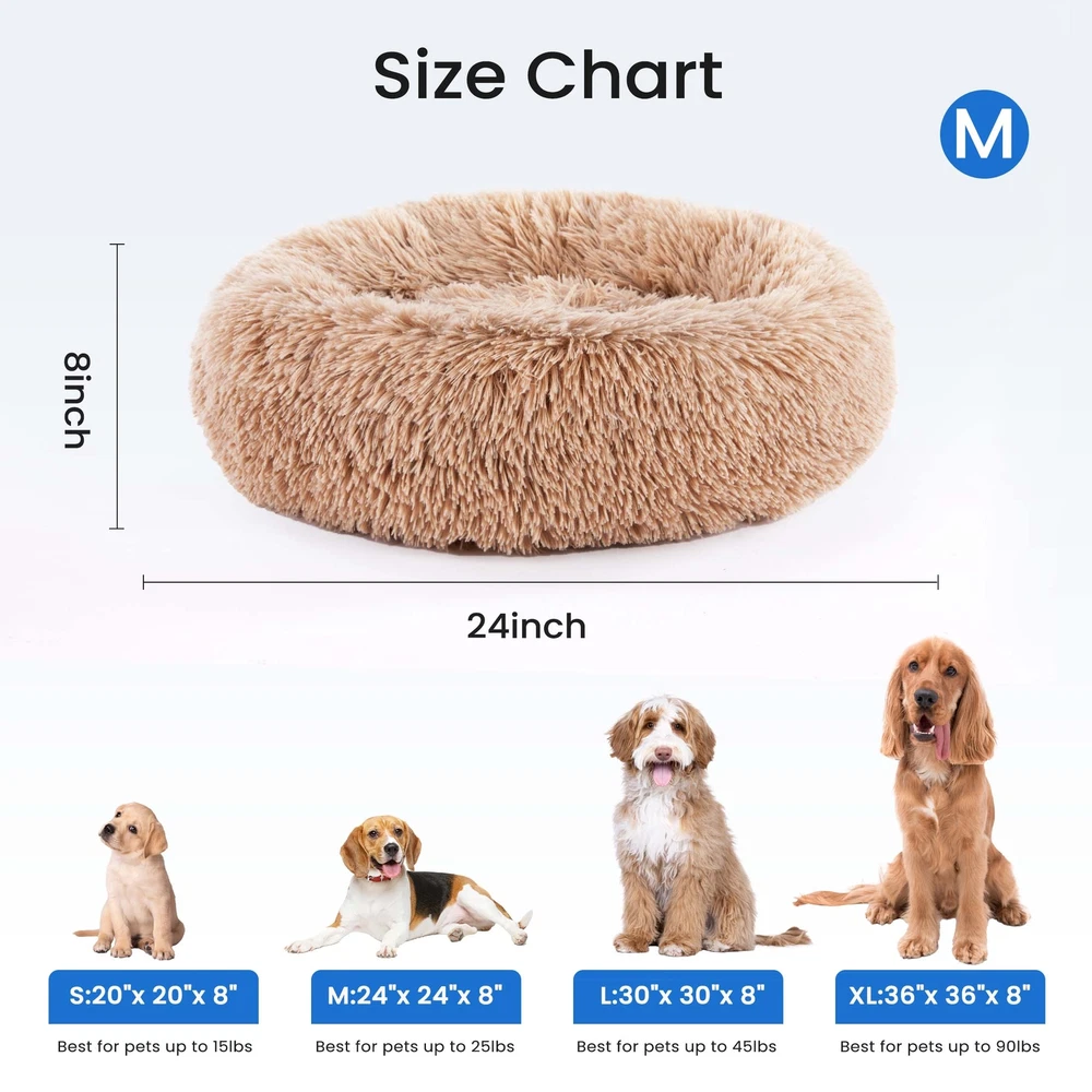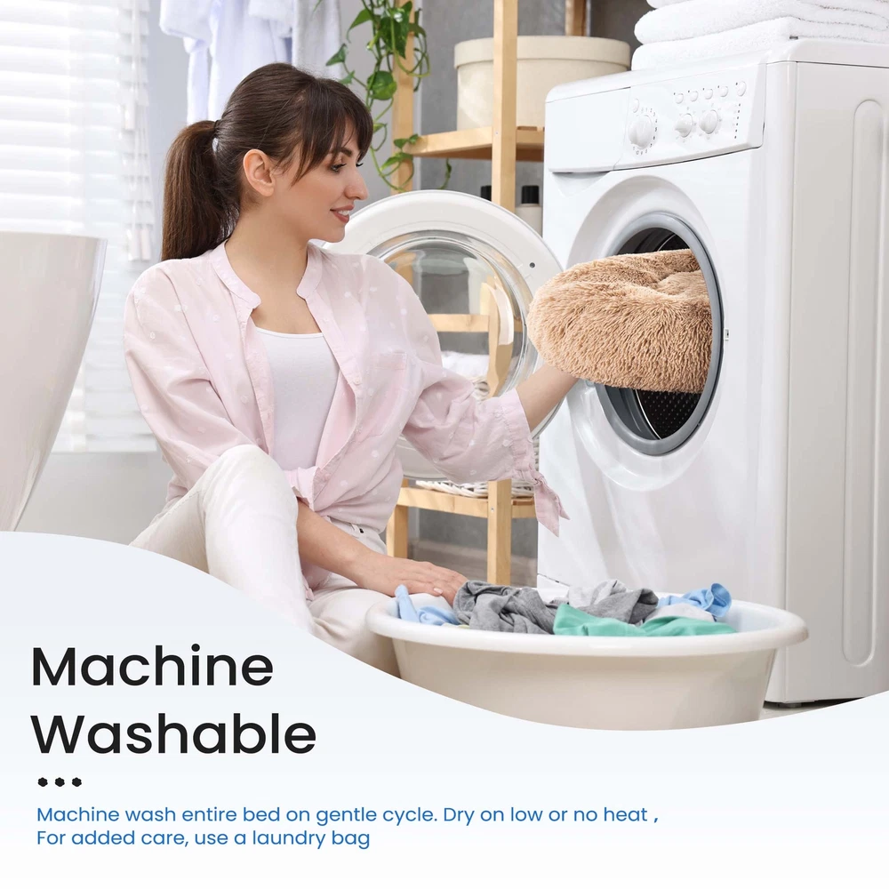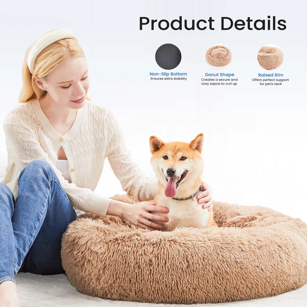 Ultimate Comfort : Our round brown dog bed features a plush design with long fur, ensuring your pet enjoys a cozy and inviting resting space, promoting relaxation and a better sleep quality. Easy Maintenance : Designed for convenience, this dog bed comes with a removable cover that is machine washable, making it simple to maintain cleanliness and hygiene for your furry friend. Durable Materials : Crafted from high-quality materials, this dog bed is built to withstand daily wear and tear, ensuring lasting comfort and support for your pet. Versatile Use : Ideal for various settings, this stylish brown dog bed seamlessly fits into your home décor while providing your pet with a dedicated and comfortable spot to lounge or sleep.