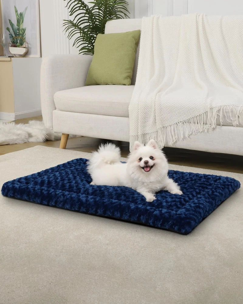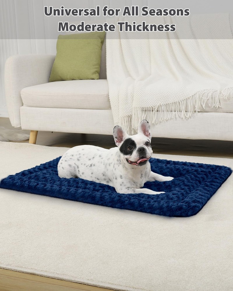 dog bed Ultimate Sleep Surface - Our dog bed adopts 300gsm deluxe plush which is skin friendly, comfortable and not easy to shedding, full stuffing to ensure your little furry friend surrounded by love & warmth, helps them to calm down faster, ease anxiety, and sleep well. Reversible Design - Built with 600D oxford fabric on the bottom, the dog beds can hold up to daily wear and tear, what’s more, the back sleeping surface ensure your pets can still be cool in summer. Machine Washable - Our crate bed can be fully washed by washing machine and can remain shape after times wash. Let your puppy enjoy a breathable, clean and hygienic kennel bed. Size Details - L size measures approximately 29"L x 18"W x 1-1/2"H, works great as medium dog bed mats for dog up to 40 pounds. An excellent choice if you want a softer pad for your pet which is not too thick. Smart Design - Rectangle shaped dog mattress is perfect for your pets to sleep and roomy enough to stretch out. It also can be placed on any elevated dog bed & dog bed trampoline or in a crate & pet house.