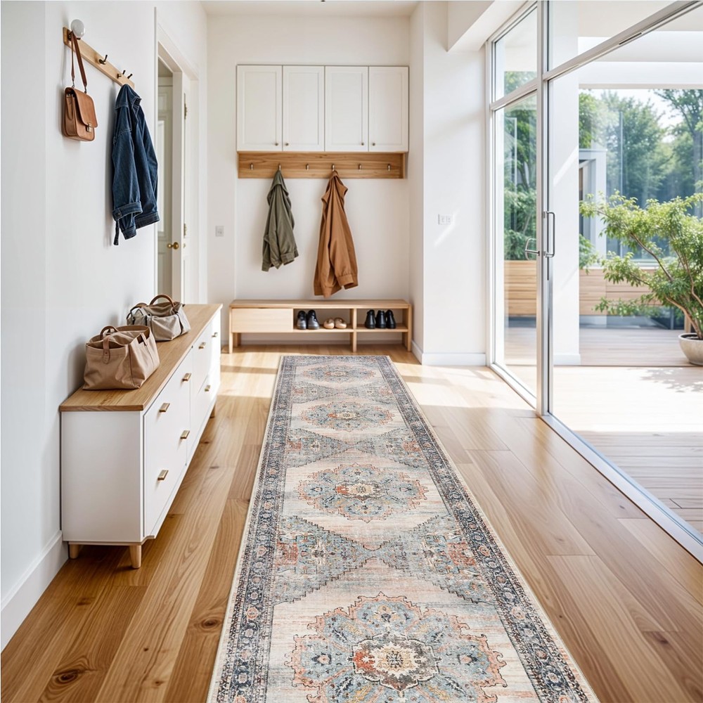 The rug has stood the test of time, blending both contemporary and traditional styles. Coming in a variety of colours, they will suit a wide range of settings. 100% polyester material, machine made, features rubber backing. Non-shedding, highly stain resistant, durable, tight weave, soft under foot,fade resistance, antistatic and easy to clean. 【One-piece Design】 The 14 foot runner rug for hallway are geared to make life easier which is why runner rugs with rubber backing lay down in a snap! When washable runner rug arrives, simply place it flat in the desired space. It's easy to fold and unfold, with no need to worry about matching corners, allowing time for creases to flatten and level. 【Ideal for High Traffic】 The washable 3x14 runner rug is made from one hundred percent polyester material for craft with precision, not only ultra-soft but also stain resistant. Its low pile height and non-shed fabric composition make the floor runner easy to clean and a durable choice for high traffic areas such as living room, dining room, kitchen, and hallways. 【Long-lasting and Low Maintenance】 The 14 ft runner rug for hallway non slip is the heart of your home and the occasional "oops" is a part of life. Spills?Stain?Paw prints?No need to worry. Just toss your kitchen rugs into washing machine and treat all of life's messes. The rug is inherently stain and fade-resistant, overall beauty for years to come. 【Cling to the Floor】 There is a non slip back with no need for a separate rug pad. The long hallway runner rug is truly non slip and holds onto the slick surface underneath and prevents the non slip hallway runner from sliding out of place. Machine serving is a finishing process that gives vintage rug edge a clean, uniform appearance. No curl-up on the edges. 【Fit right in】 The distressed, vintage design that can complement a variety of decor styles from contemporary to classic. A delightful and stunning addition to your home. With a range of colours and styles available, find your perfect fit with to make every room a place you love to be.