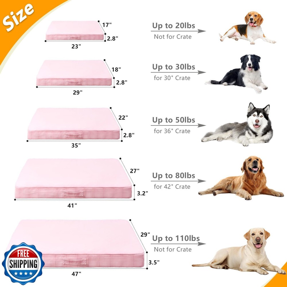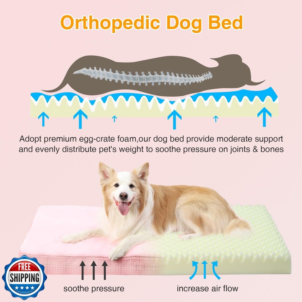 MIHIKK Washable Orthopedic Dog Bed for Large Dogs, L Waterproof Pet Bed with Egg Crate Foam Strong Support, Machine Washable Cover and Anti-Slip Bottom and Durable Zipper 35x22(Pink) Features 【Soft & Durable Foam】 Filled with moderate hardness egg crate foam,our orthopedic dog beds are soft and durable,providing ample support and effectively relieving stress.Suits for pets of all ages,especially for puppies or older dogs. 【Comfy & Elegant Design】We have pet beds in various colors that features preimum quality fabric and a unique checkered design, which ensure a perfect sleep for pets and can be a good decoration for you to match with different colors styles at home. 【Composite Waterproof Layer】In order to prevent liquid leaks from contaminating the foam, extend product life and improve cleaning efficiency, the upper and lower layer of our washable dog bed contain waterproof material.Save your time and energy. 【Easy to Maintain】Our waterproof dog bed features a removable and machine-washable cover with a high quality zipper.Make the maintainence a piece of cake for puppy parents and provide puppies with clean dog crate pad every day. 【Easy to Carry】Our dog beds for crate come in a variety of sizes to suit dogs of all breed sizes,and the handle design on the side makes the dog pad easy to carry and can be placed in a bedroom,living room,crate or any other space in the house. Shipping Free & Fast Shipping: We offer free shipping to most of the USA with a normal delivery time of 3-7 days. However, due to the current situation, additional delivery time (up to 3 weeks) may be required for some items. Alternative Carriers: We may use alternative carriers (e.g., USPS, FedEx, UPS) to ensure your package arrives safely and on time. Due to the use of multiple carriers, we are unable to provide a tracking number automatically. Handling Time: Orders are processed and shipped within 1-2 business days of receiving cleared payment. Shipping Restrictions: Shipping to Alaska, Hawaii, Puerto Rico, Guam, and other US territories may incur shipping charges or delivery restrictions. Please contact us before ordering, or your order can be refunded/cancelled. State Restrictions: Certain items may not be shipped to California due to state regulations. Contact for Tracking Updates: If you require tracking updates or have any concerns about the delivery of your order, please feel free to contact us, and we will be happy to assist you. Return Policy 30-Day Hassle-Free Returns: If you are not completely satisfied with your purchase, you can return the item for free within 30 days of receiving it for a full refund or exchange. Easy Return Process: Contact us, and we will provide you with a prepaid return shipping label and detailed instructions. No Restocking Fee: There are no restocking fees for returns. However, the buyer is responsible for return shipping costs if the return is not due to a seller"s error. Refund Processing: Refunds will be processed within 1 business day of receiving the returned item in its original condition. Feedback Your feedback is extremely important to us. We strive to provide the best products and customer service possible. If you are satisfied with your purchase, please take a moment to leave us a positive review. If you have any concerns or issues with your order, please contact us before leaving negative feedback. We are committed to resolving any problems and ensuring your satisfaction. Contact Us If you have any questions or concerns, please feel free to reach out to our customer support team. You can contact us through the eBay messaging system. We are available Monday to Friday, 9:00 am to 5:00 pm EST, and we will do our best to respond to your inquiry within 24 hours. Thank you for supporting our small family business!