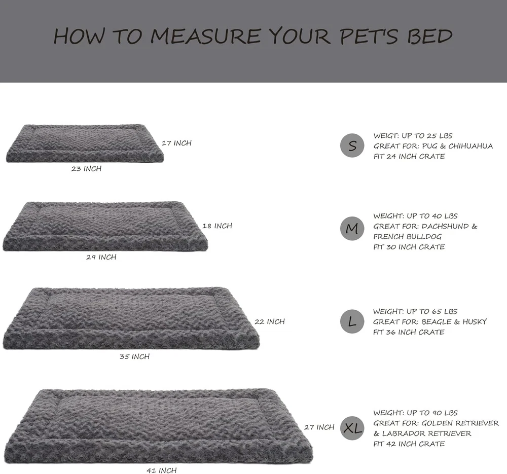35.00" x 22.00" x 1.50" Polyester Dog Bed Mat Core Parameters Material: Polyester Size: 35.00"L x 22.00"W x 1.50"H (88.9cm x 55.9cm x 3.8cm) Color: Grey Weight: 2.23 lbs (1.01 kg) Technical Specifications • Ultimate Sleep Surface - 300gsm deluxe plush, skin-friendly, non-shedding, full stuffing for warmth and anxiety relief • Universal for All Seasons - Moderate thickness for support without heat retention, suitable year-round • Machine Washable - Maintains shape after washing, ensures hygiene • Size Details - Fits dogs up to 65 pounds, soft yet not overly thick • Smart Design - Rectangle shape for stretching, compatible with crates/pet houses Package Information Package Dimensions: 10.75" x 6.06" x 6.02" (27.3cm x 15.4cm x 15.3cm) Package Weight: 2.23 lbs (1.01 kg)