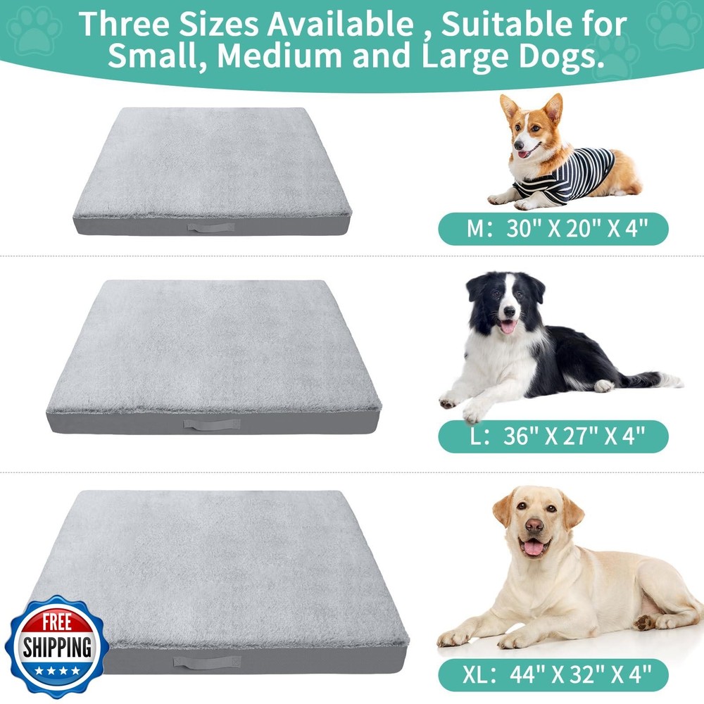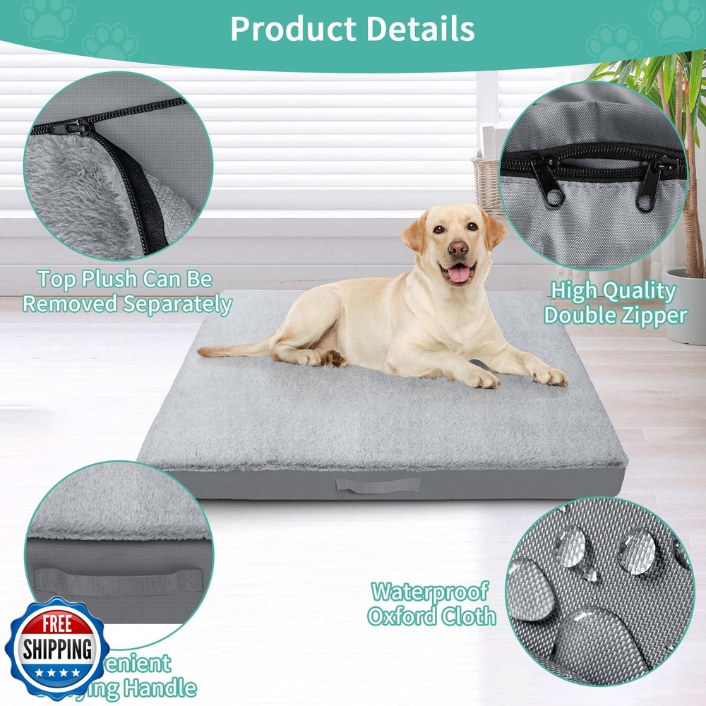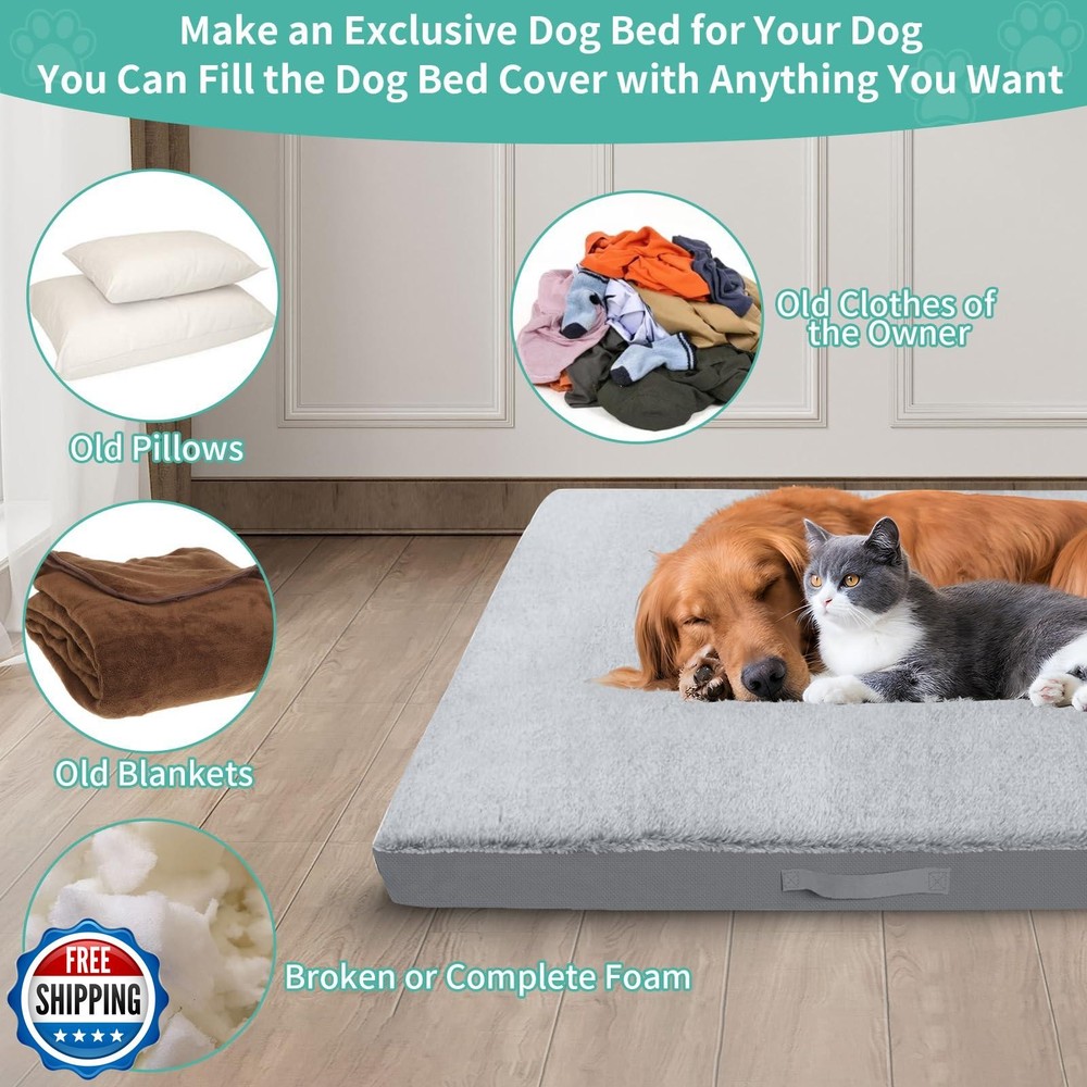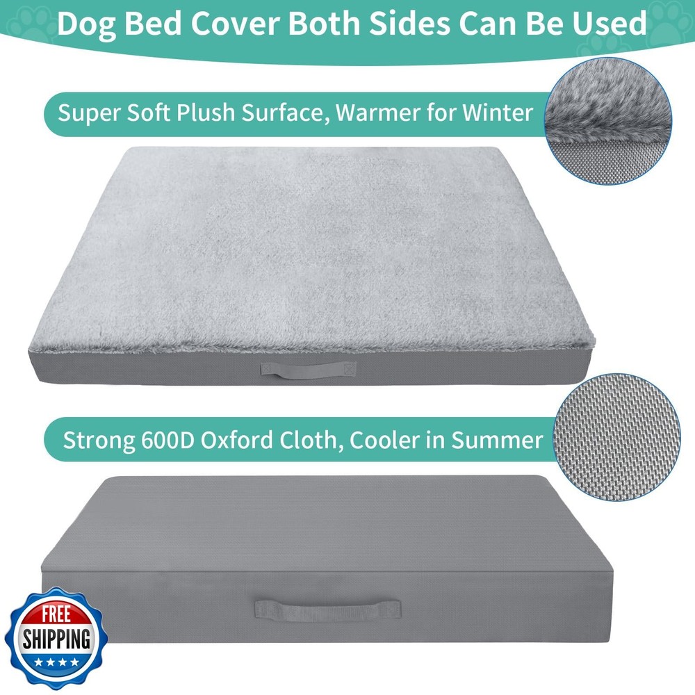 COSHNIBI Dog Bed Covers Replacement Washable,Waterproof Bed Covers Soft Plush Replacement with Zipper and Removable for Dog/Cat 44''Lx32''Wx4''H-Grey Features 🐶【DIY dog bed】The universal waterproof dog bed cover suitable for 44" L x 32" W x 4" H size dog mattress, you can fill the dog bed cover with anything you want, such as old blankets, old clothes, pillows, crushed foam, etc. Putting in the owner's old clothes will make the dog adapt to the new bed faster and reduce pet anxiety. 🐶【Soft and comfortable dog bed cover】The top of our dog bed cover is made of soft plush fabric to provide a super soft tactile experience for your pet.The sides and bottom of the pet bed cover are made of 600D heavy-duty Oxford fabric, which is strong, durable and tear-resistant. 🐶【Waterproof & Non-skid fabric】The back of the dog bed washable cover has a waterproof coating that prevents any liquid from seeping into the dog bed, keeping the dog mattress clean and dry couch cover to the maximum. Our non slip bottom keeps the bed securely in place especially on hardwood surfaces. Durable material with brings your pet a sense of security. 🐶【Easy to use】Removable dog bed covers with invisible double zipper design, sofa cover suitable for most standard pet beds. Also the top plush is removable, when the top plush is dirty it can be removed and washed separately and can be reused. The side carry handles are designed to easily put in and take out the padding. 🐶【Easy to clean】Machine Washable. You can try our replacement dog bed covers that can be washed over and over again and are easy to maintain. If you have any questions during use, please feel free to contact us and we will provide you with a satisfactory solution. Shipping Free & Fast Shipping: We offer free shipping to most of the USA with a normal delivery time of 3-7 days. However, due to the current situation, additional delivery time (up to 3 weeks) may be required for some items. Alternative Carriers: We may use alternative carriers (e.g., USPS, FedEx, UPS) to ensure your package arrives safely and on time. Due to the use of multiple carriers, we are unable to provide a tracking number automatically. Handling Time: Orders are processed and shipped within 1-2 business days of receiving cleared payment. Shipping Restrictions: Shipping to Alaska, Hawaii, Puerto Rico, Guam, and other US territories may incur shipping charges or delivery restrictions. Please contact us before ordering, or your order can be refunded/cancelled. State Restrictions: Certain items may not be shipped to California due to state regulations. Contact for Tracking Updates: If you require tracking updates or have any concerns about the delivery of your order, please feel free to contact us, and we will be happy to assist you. Return Policy 30-Day Hassle-Free Returns: If you are not completely satisfied with your purchase, you can return the item for free within 30 days of receiving it for a full refund or exchange. Easy Return Process: Contact us, and we will provide you with a prepaid return shipping label and detailed instructions. No Restocking Fee: There are no restocking fees for returns. However, the buyer is responsible for return shipping costs if the return is not due to a seller"s error. Refund Processing: Refunds will be processed within 1 business day of receiving the returned item in its original condition. Feedback Your feedback is extremely important to us. We strive to provide the best products and customer service possible. If you are satisfied with your purchase, please take a moment to leave us a positive review. If you have any concerns or issues with your order, please contact us before leaving negative feedback. We are committed to resolving any problems and ensuring your satisfaction. Contact Us If you have any questions or concerns, please feel free to reach out to our customer support team. You can contact us through the eBay messaging system. We are available Monday to Friday, 9:00 am to 5:00 pm EST, and we will do our best to respond to your inquiry within 24 hours. Thank you for supporting our small family business!