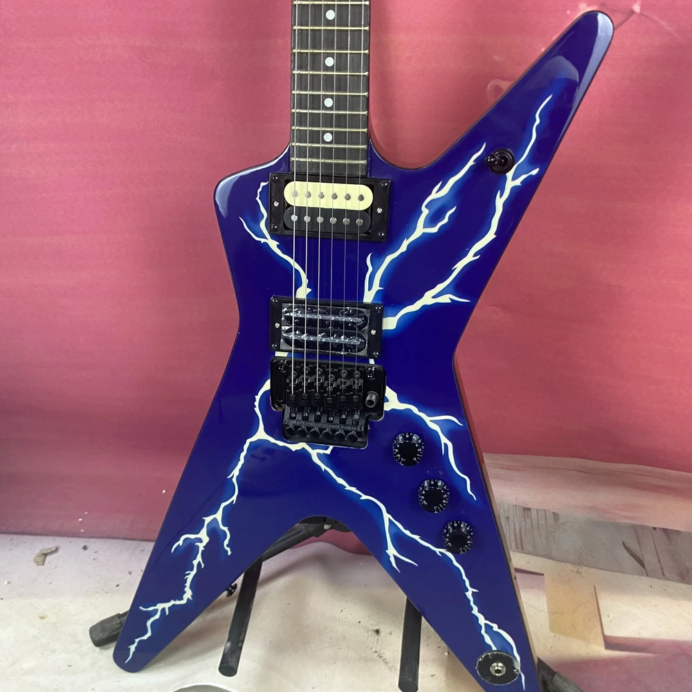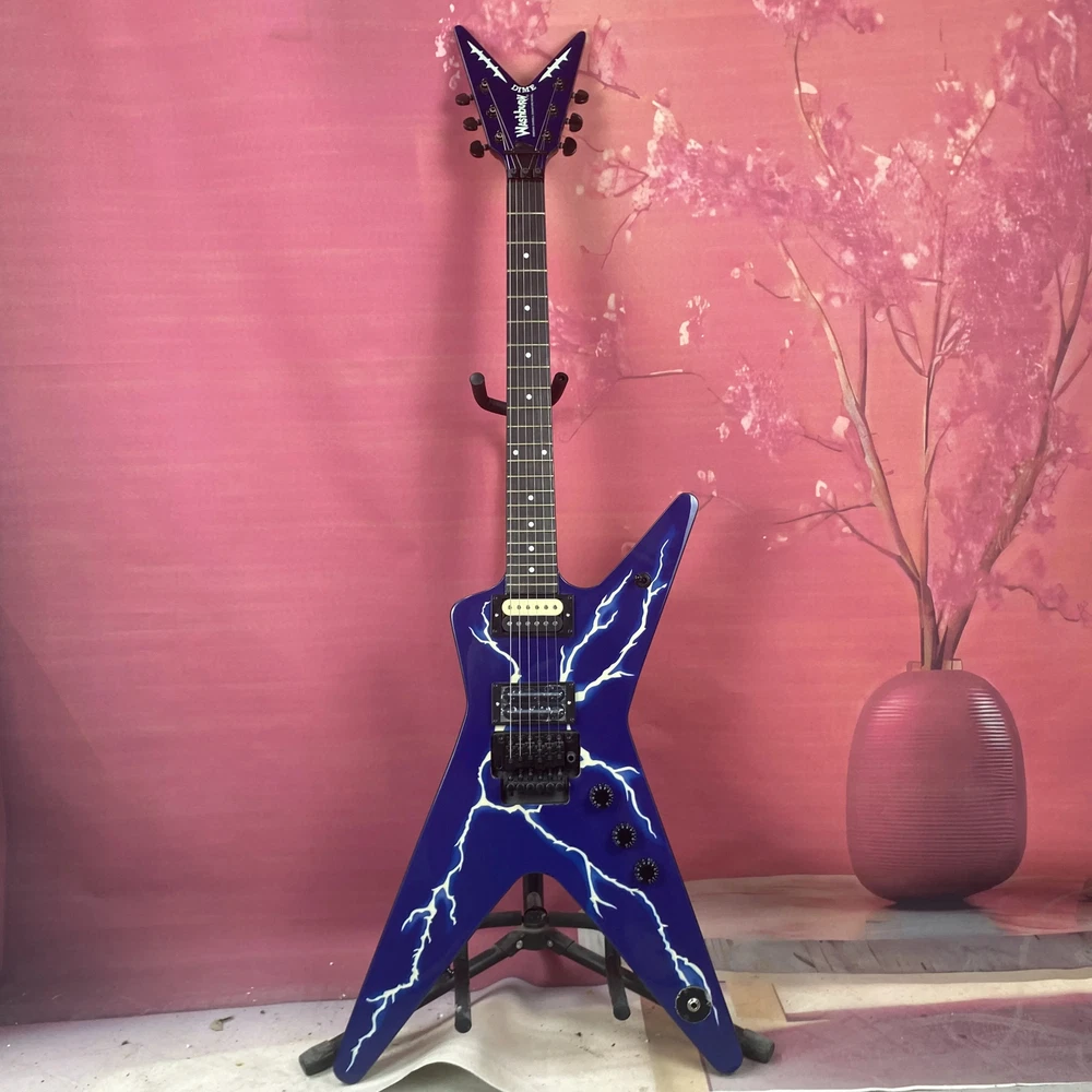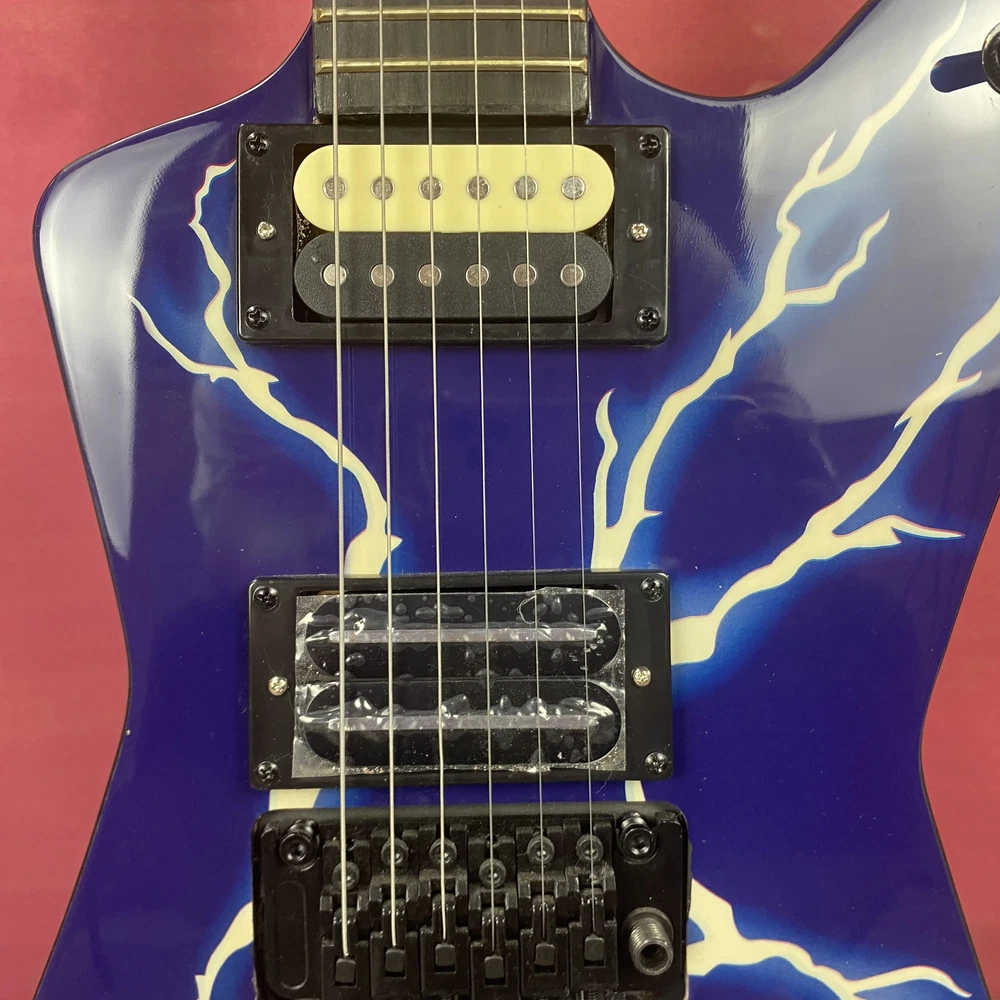 Warlock Blue Flame Maple Top Electric Guitar HH Pickup Black Hardware Fast Ship