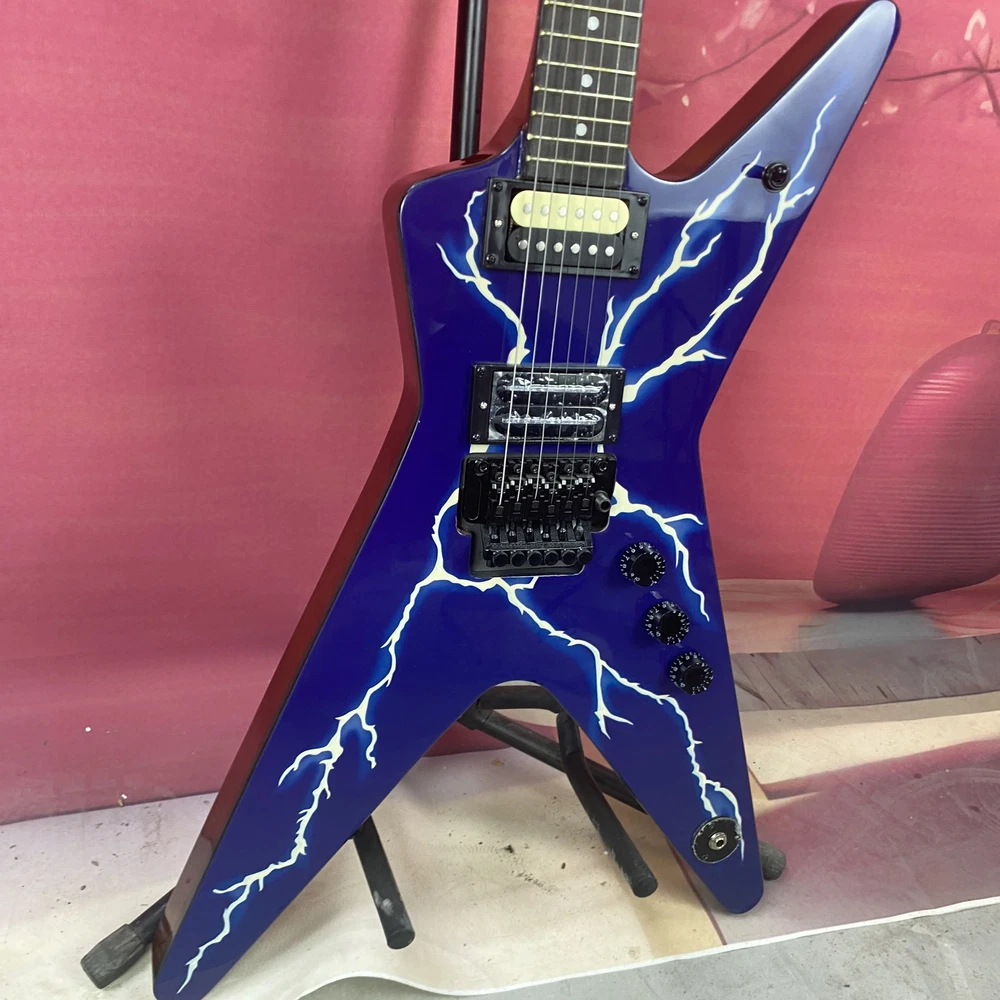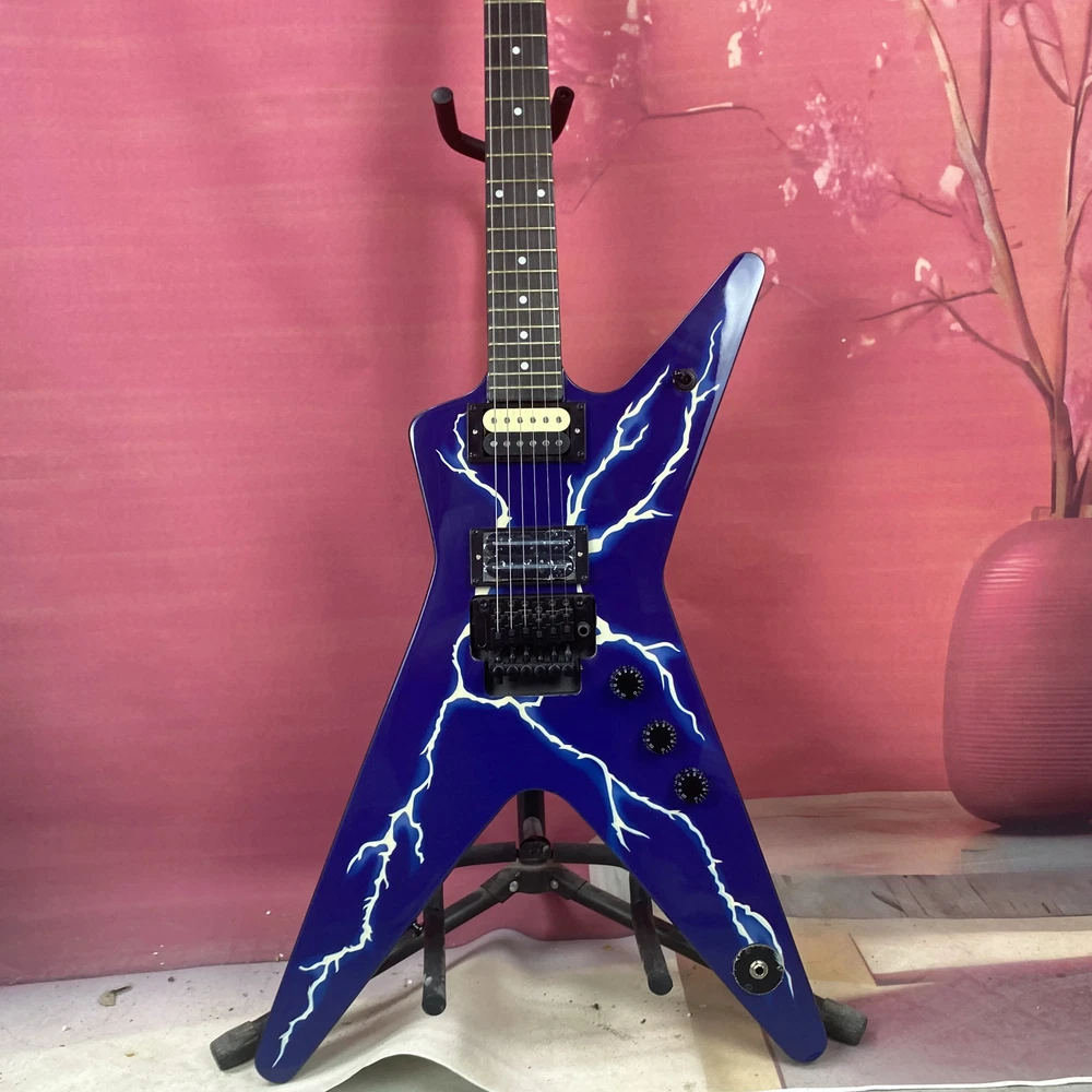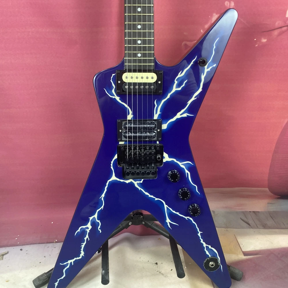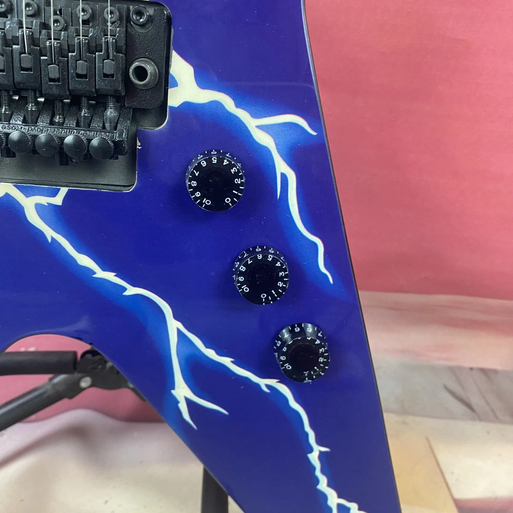 Warlock Blue Flame Maple Top Electric Guitar HH Pickup Black Hardware Fast Ship