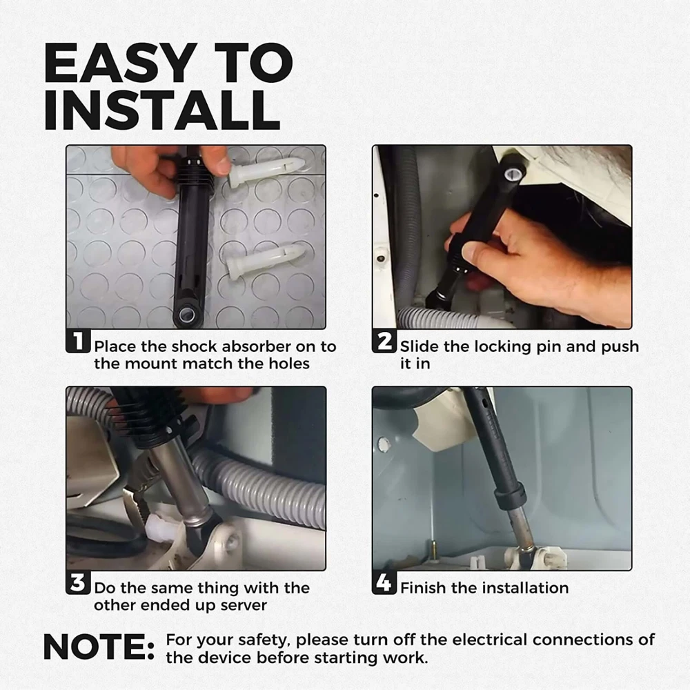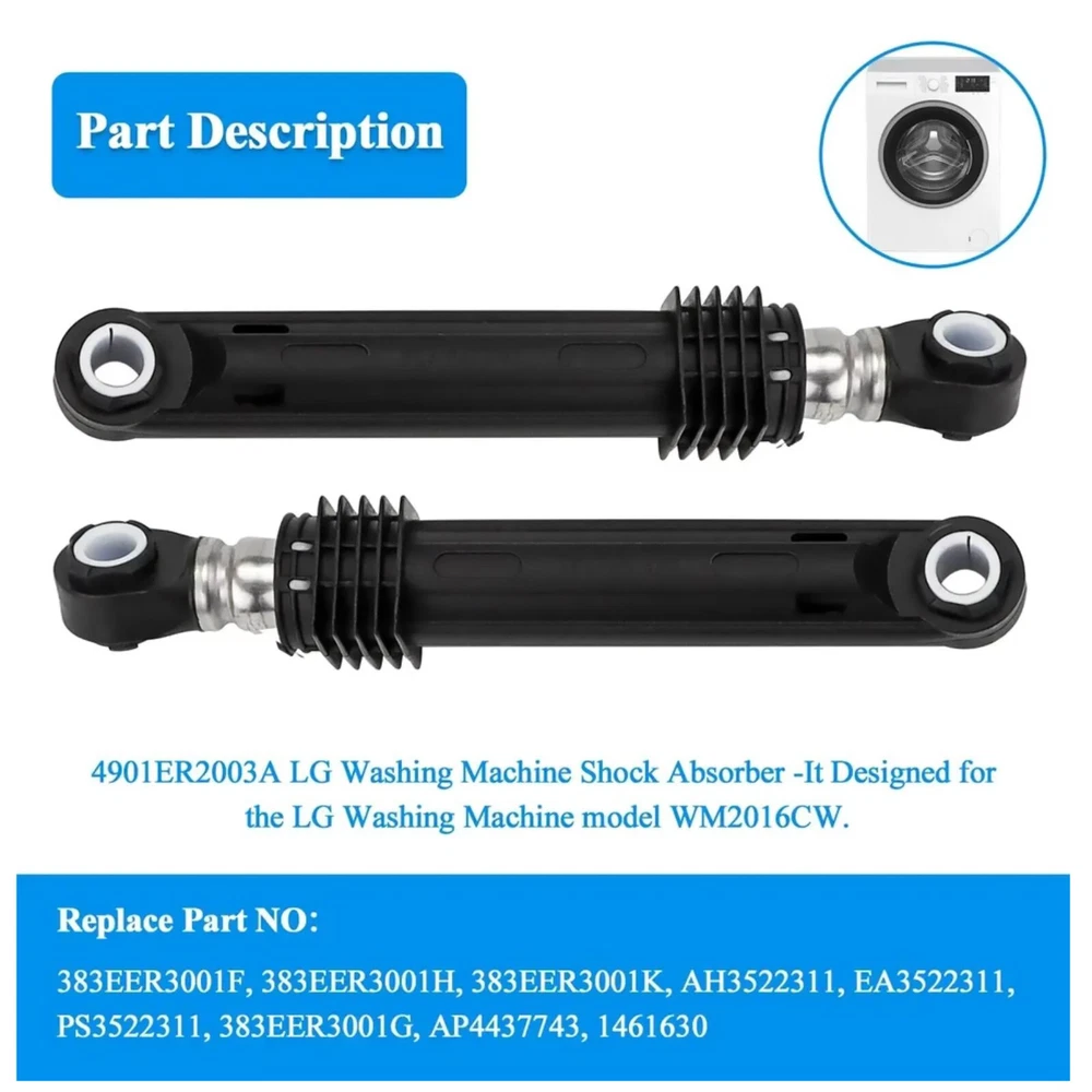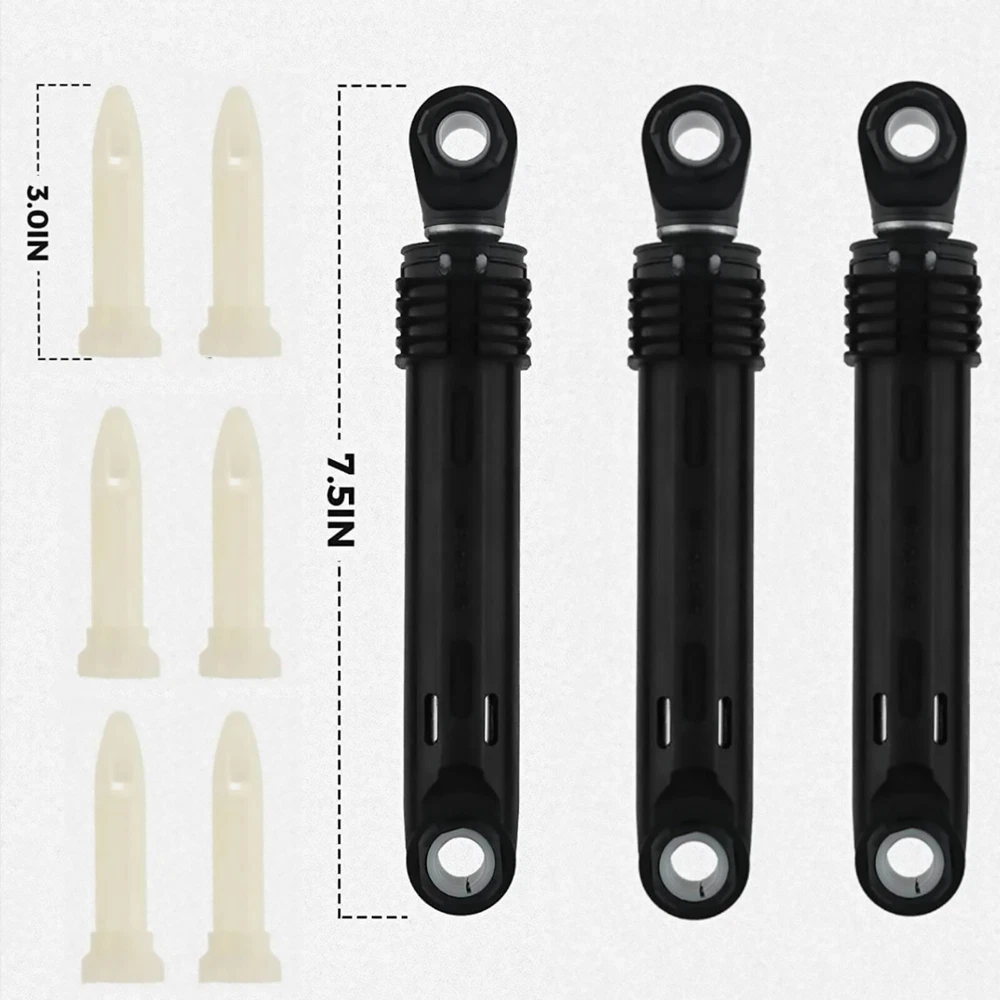 Product Description Washer Shock Absorber Replacement Part For LG Washing Machine 383EER3001G 3Pcs Features: Easy installation and replacement: Designed with user convenience in mind, the shock absorber rod replacement parts feature standardized sizes and a simple installation structure, enabling home users to effortlessly complete the task without professional skills. This significantly shortens maintenance time and reduces installation difficulty. High durability: Crafted from high-strength, high-elasticity materials, the premium shock rod replacement parts withstand intense vibrations and long-term loads during washing machine operation, effectively prolonging the service life. This durability ensures a stable working condition for an extended period, minimizing inconvenience and costs associated with frequent replacements. Improved shock absorption: In comparison to aging or damaged shock rods, the new replacement parts excel at absorbing and dispersing vibrations and noise generated during washing machine operation. This safeguards internal components from damage while diminishing laundry-related noise, fostering a quieter, more comfortable living environment. Enhanced stability and safety: Maintaining the shock absorber rod's optimal condition is crucial for the washing machine's overall stability. Replacing worn-out shock rods significantly enhances the machine's balance, minimizes shaking and displacement, and prevents it from tipping or moving at high speeds. This, in turn, strengthens usage safety and safeguards the wellbeing of family members and the home environment. Specifications: OE Reference: 383EER3001G, ACV72909503, ACV72909501 Color: Black Quantity: 3pcs Replace: 383EER3001G, 383EER3001J, 4901ER2003A, 383EER3001F, 383EER3001H, 1461630, 383EER3001K, AH3522311, EA3522311, PS35222311, AP4437743, 1335104, AP5226074, PS3583320, Compatible: For LG Package Included: 3 x Washer Shock Absorbers 6 x Mounting Pins Shipping Returns Contact Us Payment 1. Items sent from US warehouse. 2.Receiving time = Processing time + Shipping time 3. Processing Time: Around 1-2 business Days 4. Shipping Time: 3-5 business day it may have a little delay during some holiday (such as Christmas),any problem ,please feel free to contact 1. 30 days warranty from the purchased date. Please contact us via email before returning the defective item. 2.Our warranty does not extended to any product that are physically damaged or that are not under normal operating conditions as result of misuse or improper installation on the buyer/user's part. 3.Return items should include the original packaging and all accessories. buyers MUST contact us for the returning address. 4.In all cases, buyers pay shipping fees at their own cost to return products for exchange or refund. We will be responsible for the postage of replacements. Refund will be made upon receipt of the returned item. Pls contact us if you have any problems,we will try our best to solve for you We accept all verified payment from eBay. Shipping 1. Items sent from US warehouse. 2.Receiving time = Processing time + Shipping time 3. Processing Time: Around 1-2 business Days 4. Shipping Time: 3-5 business day it may have a little delay during some holiday (such as Christmas),any problem ,please feel free to contact Returns 1. 30 days warranty from the purchased date. Please contact us via email before returning the defective item. 2.Our warranty does not extended to any product that are physically damaged or that are not under normal operating conditions as result of misuse or improper installation on the buyer/user's part. 3.Return items should include the original packaging and all accessories. buyers MUST contact us for the returning address. 4.In all cases, buyers pay shipping fees at their own cost to return products for exchange or refund. We will be responsible for the postage of replacements. Refund will be made upon receipt of the returned item. Contact Us Pls contact us if you have any problems,we will try our best to solve for you Payment We accept all verified payment from eBay. You may also like Watch Crystal Glass Sapphire Bubble Magnifier Calendar Lens Small Date Window 10.66 USD Quick Genuine Leather Band Strap For Garmin Fenix 7 7X 6 6X 7S 6S Pro 5 5X Plus 14.29 USD 3.49 USD Time Relay / Timer Control Board Power For Arcade Vending Machine Digital 16.49 USD 3.49 USD Green Low-Noise Quick-Release Propellers 8331F For DJI Mavic PRO Platinum Drone 14.95 USD 2 Pac Watch Hand Remover Presto Tool Repair Plunger Type Hairspring Collect 13.08 USD 24Pack Waterproof Watch Crown Assortment Replacement Watchmaker Repair Parts Set 18.36 USD powered by
