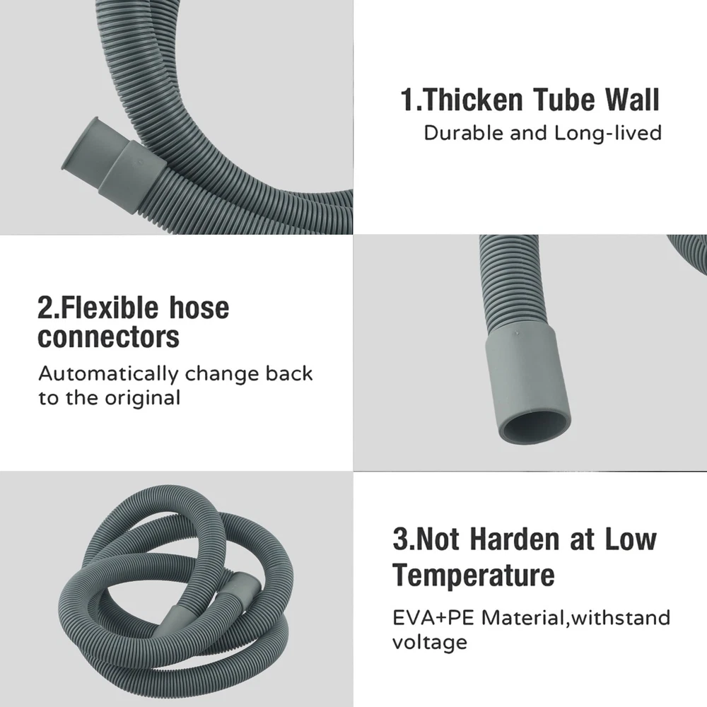 Product Description Features: * brand new and high quality *Made of quality material, anti-aging and *Perfect for water draining *Easy to Install *Compatible washing machine and dishwasher drain hose extension kit *This drain hose kit is available in all brands and models of all brands of dishwashers and washing machines, with the same dimensions *This kit will give you more room to position your appliance exactly where you want it, whilst your pipes are not overstretched or damaging the connections on your appliance Specifications: Type: Washing Machine Drain Product Size: 1.5M Material: Plastic Package Contents: 1 x Drain hose Note: 1. The real color of the item may be slightly different from the pictures shown on website caused by many factors such as brightness of your monitor and light brightness. 2. Please allow slight manual measurement deviation for the data. Payment Payment must be completed within 5 days. If you have any problems about payment, please contact us via ebay message. Delivery details We only ship to confirmed ebay Order addresses. Please comfirm that your Order address is in line with your shipping address. Please kindly note that the c ombined shipping is not provided because the shipping fee is calculated by weight. Also, the each additional item means exactly the the same color and size. It takes about 7 -15 working days to US; about 10-30 working days to other countries. Transit time may be a little delayed because of the bad weather and customs inspection . If you do not receive your item within 30 working days since payment finished, please contact us immediately for further assistance. Contact us We strive for 100% customer satisfaction! Positive Feedback is very important to us. If you have any questions, p lease feel free to contact us via "Ask seller a question" . We will reply your email within 24 working hours.