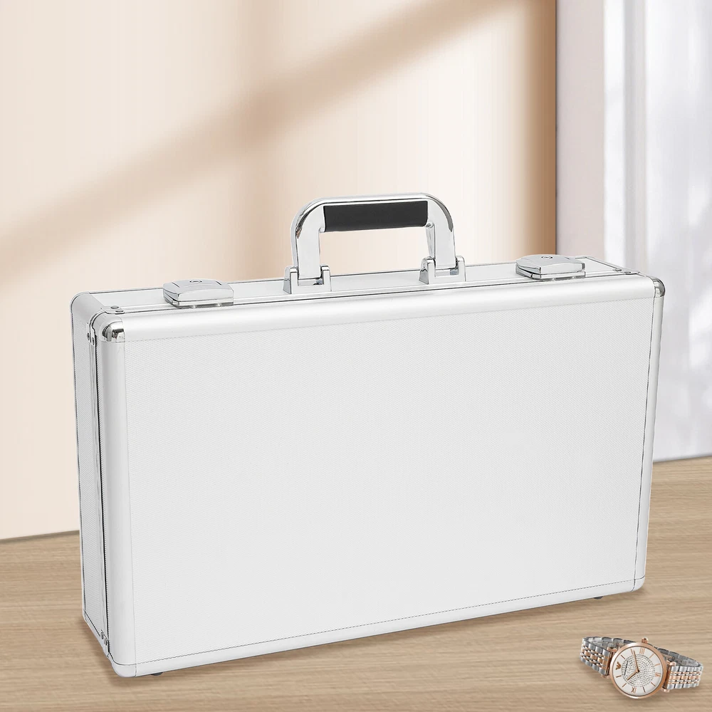 Specification Color: Silver Type: Watch Storage Case Shape: Rectangular Material: Aluminum, ABS, Plastic, Wooden Board, Sponge Process: Veneer Number of Grids: 24 Each Grid Size(L*W): 8.5*4cm/ 3.3*1.6inch Product Size: 47.5*28*8cm/ 18.7*11*3inch Package Size: 50.5*32.5*12cm/ 19.88*12.8*4.74inch Net Weight: 1.8kg/ 3.97lbs Gross Weight: 2.5kg/ 5.51lbs Package Included 1* 24-Grid Watch Case 2*Keys Watch Case Jewelry 24 Grid Aluminum Alloy Box Watch Case Briefcase Design Gift Specification Color: Silver Type: Watch Storage Case Shape: Rectangular Material: Aluminum, ABS, Plastic, Wooden Board, Sponge Process: Veneer Number of Grids: 24 Each Grid Size(L*W): 8.5*4cm/ 3.3*1.6inch Product Size: 47.5*28*8cm/ 18.7*11*3inch Package Size: 50.5*32.5*12cm/ 19.88*12.8*4.74inch Net Weight: 1.8kg/ 3.97lbs Gross Weight: 2.5kg/ 5.51lbs Package Included 1* 24-Grid Watch Case 2*Keys Specification Color: Silver Type: Watch Storage Case Shape: Rectangular Material: Aluminum, ABS, Plastic, Wooden Board, Sponge Process: Veneer Number of Grids: 24 Each Grid Size(L*W): 8.5*4cm/ 3.3*1.6inch Product Size: 47.5*28*8cm/ 18.7*11*3inch Package Size: 50.5*32.5*12cm/ 19.88*12.8*4.74inch Net Weight: 1.8kg/ 3.97lbs Gross Weight: 2.5kg/ 5.51lbs Description This watch case is made of high-quality materials, which are wear-resistant and sturdy. The large capacity of 24 compartments allows you to easily store various watches. It can keep your watches neatly stored in this beautiful storage case, protecting them from dust, scratches, and falling injuries! Key Features Build to Last: The high-quality aluminum frame, ABS panel, plastic handle, and wooden partition give it strong, wear-resistant, and waterproof features, allowing you to store the watch in a box with confidence. Large Capacity: The 24 compartments are of moderate size (3.3*1.6 inches) and are suitable for storing watches of various sizes, providing you with ample space to store your watches. High Safety: It is equipped with two keylocks, which can effectively protect your precious watch from loss, giving you strong security and reliability. Easy to Carry: The lightweight weight of 3.97 lbs and the convenient handle on the watch case make it easy for you to carry around. Convenient to Clean: The detachable watch pillow makes it easy for you to clean it. Thoughtful Design: The built-in soft watch pillow can protect your watch from damage. The wooden partition divides it into 24 compartments for easy access, sorting and storage of precious watches. Strict Package: The dual packaging of bubble bags and cardboard boxes can effectively protect the product from damage during transportation as much as possible. Ideal Gift: It is an ideal gift for family, colleagues, and friends on birthdays, Valentine's Day, weddings, Christmas, and New Year. Exquisite Appearance: The silver appearance, combined with the classic black interior, harmonizes with your various watches, showcasing an elegant temperament. Customer Service: We aim to provide quality products and services. If you have any problems, please free to contact us. We will reply and solve the problem for you as soon as possible. Details Anti-slip Rubber Mat: The anti-slip rubber mat at the bottom and back can help you place the watch case smoothly and firmly, preventing wear and tear on the casing. Plastic Handle: The plastic portable handle makes it convenient for you to carry the watch case. Application It can accommodate normal-sized men's and ladies' watches and can be used for displaying and protecting your precious watches. Notes Please note that watches are not included. Please allow the slight color difference caused by the shooting light and 1-3 cm error due to manual measurement, and make sure you do not mind before ordering. Payment Delivery details Terms of sales About us Contact us Payment We accept ebay payment 。 Fees such as import duties, taxes are not included in the item price or shipping costs. These charges are the buyer's responsibility. Delivery details Shipping: 2-9 working days to: USA Terms of sales We maintain high standards of excellence and strive for hundred percent customer satisfaction. Feedback is very important to us. We hope that you contact us immediately before you give neutral or negative feedback, so that we can address your concerns. It is impossible to address issues if we do not know about them! About us Your satis faction is our ultimate goal. We work hard to earn your trust and future business. Our certified technicians have tested each item before shipping. The unit comes with 1 year limited warranty on all manufacturing defects. a) If you receive a defective item, you may return it or ask for a discount. Please contact us within 14 days after you receive the package. b) What you returned must be intact and in its original packaging as re? u. Customer is responsible for shipping costs of the returned item. c) We will cover the cost of shipping back t with the shipping rate indicated in the registration page. We will send you a new unit or refund the full payment you paid. Thank you. Contact us Business Hour Business Hour: Monday To Friday: 8:30 AM to 5:00 PM (Beijing China time) Due to time zones, our reply to your questions may not be immediately. But within above working time, we will reply your email within 24 hours. If it's non-workdays, please kindly be patient and wait till Monday. Please contact us with ebay message. Please feel free to contact us if you have any questions. Monday To Friday: 8:30 AM to 5:00 PM (Beijing China time) Due to time zones, our reply to your questions may not be immediately. But within above working time, we will reply your email within 24 hours. If it's non-workdays, please kindly be patient and wait till Monday. Please contact us with ebay message. Please feel free to contact us if you have any questions. Brand Unbranded Type Watch Case Color Silver Material Material: Aluminum, ABS, Plastic, Wooden Board, Sponge Number of Grids: 24 Product Si