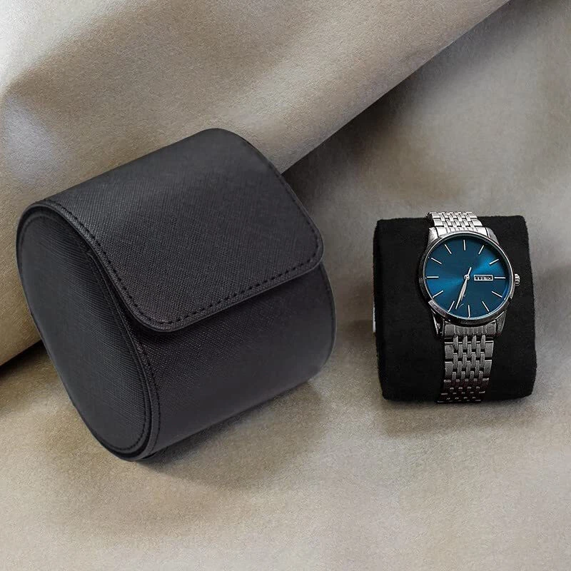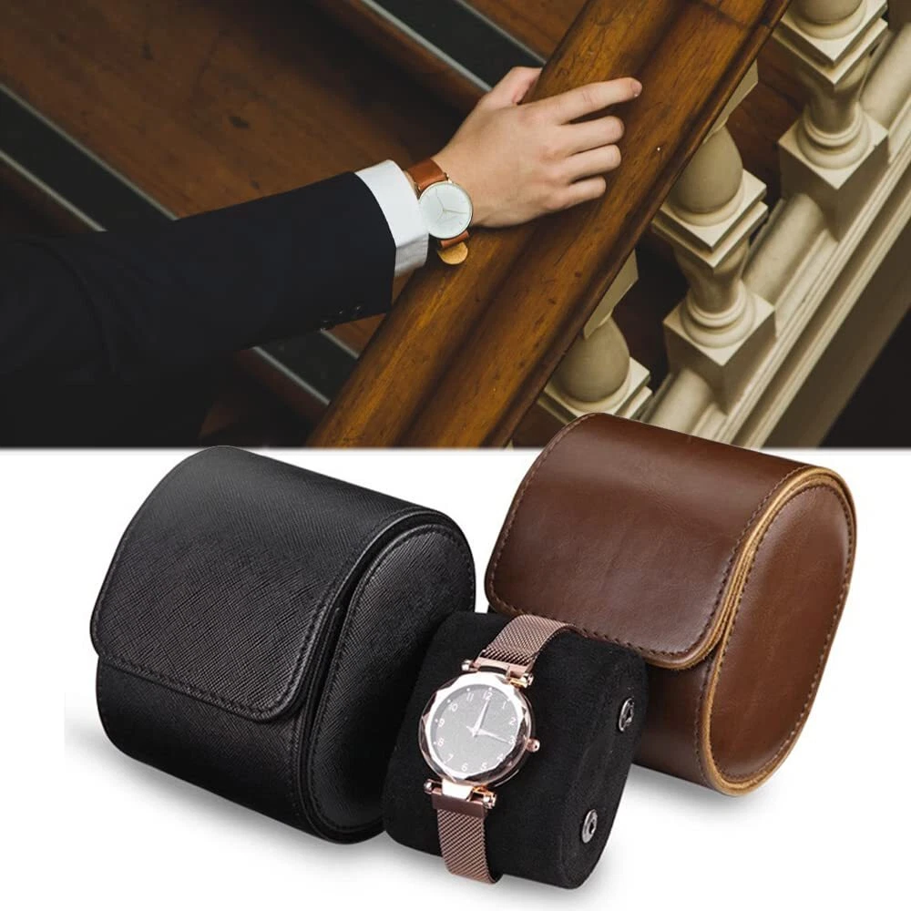 【PREMIUM LEATHER】: Made of high-quality, artificial leather, our watch case is both stylish and Sturdy, as well as design with a soft, plush lining that protects your watches from scratches and damage 【【FINE WORKMANSHIP】: Our watch box is meticulously crafted with attention to detail, featuring flat, even sewing; the inside pillow features four metal hidden buckles that keep your watches securely in place 【PORTABLE AND CONVENIENT】: Lightweight and easy to carry, our watch roll organizer is perfect for travel or storage at home, keeping your watches safe and protected from dust, drops, and scratches 【VERSATILE & PRACTICAL】: Use this watch case to store your watch at home, protect it during travel, or give it as a gift to friends and family. It's a great choice for Father's Day, Mother's Day, Christmas, weddings, birthdays, and more 【THOUGHTFUL GIFT】:Show your loved ones how much you care with this thoughtful and practical gift. Whether it's for a special occasion or just because, this leather watch case is sure to be appreciated and put to good use