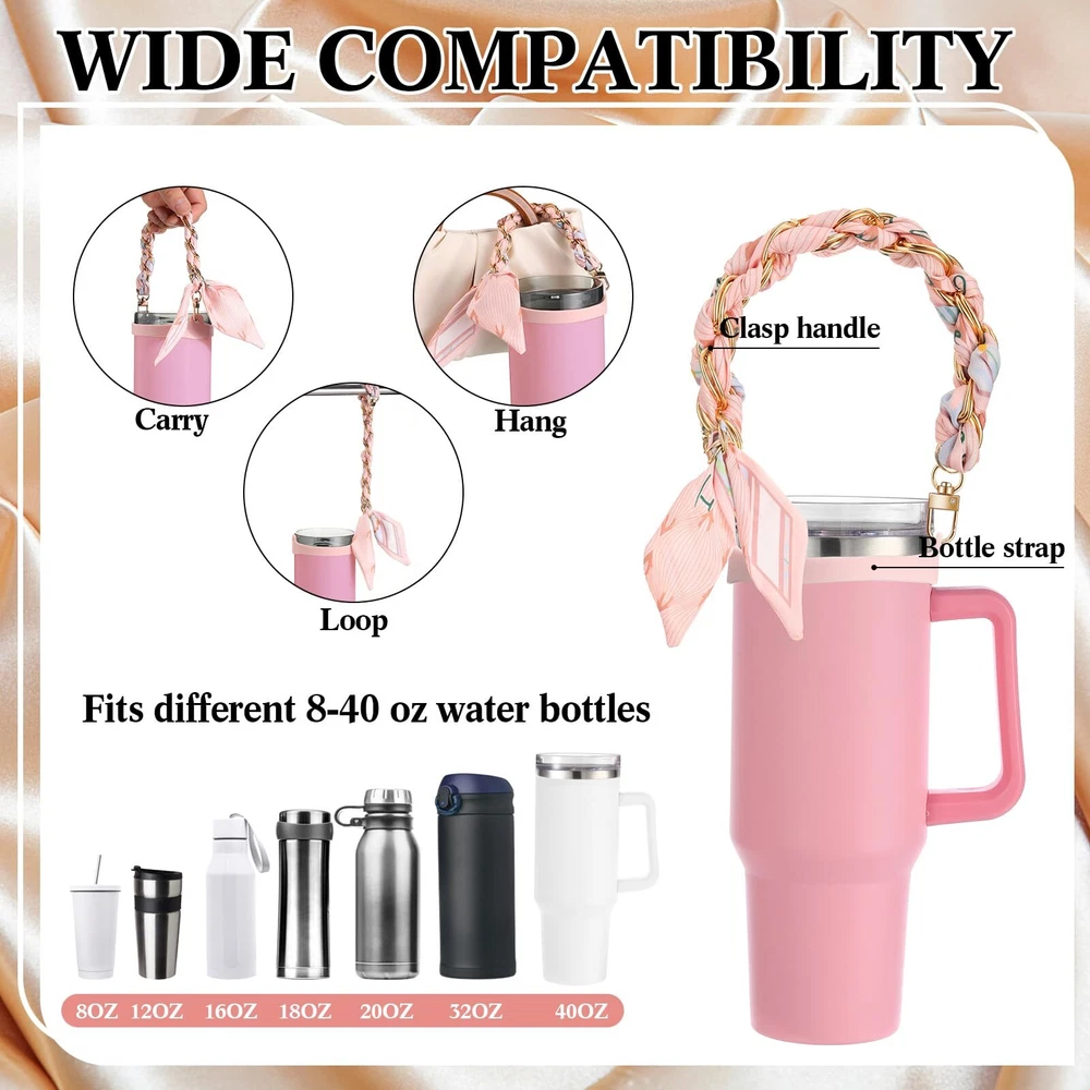Features: Our water bottle lanyard is designed for water bottles and handle them securely in place to prevent them from accidentally slipping, making a nice addition for outdoors. Our bottle handle strap makes an ideal gifts for boyfriend or girlfriend, son, husband, wife, friend, coworker on birthday, Christmas, Thanksgiving, Easter, graduation season, wedding, Mother's Day and much more. Specifications: Material: Handle: silicone Scarves metal strap: scarves and metal Color: Handle: pink Polyester metal strap: striped pink Size: Handle: about 2.56 x 2.56 inches/ 6.5 x 6.5 cm, fit cups about 8-40 oz Polyester metal strap: about 12 inches in length Package includes: 1 x Water bottle handle with strap Notes: Manual measurement, please allow slight errors on size. The color may exist a slight difference due to different screen displays. Easy to Carry: the silicone water bottle handle makes carrying water bottles easy; Simply slip on the water bottle holder, and attach the cute and delicate pearl metal strap; Ideally sized about 2.56 x 2.56 inches/ 6.5 x 6.5 cm, it fit most 8-40 ounce water bottles, our water bottle handle is well compatible with Stanley Cup Quality Material: our water bottle handle with strap is compatible with Stanley Cup, and made of quality and reliable materials; The holder crafted from safe silicone material, which is not easy to break, serving you for long term; Our water bottle holder with strap is versatile and can be carried in your hand, or hang on bags, backpacks, strollers, chairs, wheelchairs, bikes, and more Water Bottle Handle for Beauty Compatible with Stanley Cup: the quality ABS pearl metal chain of our water bottle sling comes with a lovely shell pendant; The pearl metal chain is measuring about 12 inches in length; The pearl metal chain adds a pretty touch to your bottle, giving an exquisite appearance; The pearl metal chain isn't just a pretty addition, detach and use it as a stylish keychain or a bag accessory Buckle Handle: the strap of our water bottle carrier handle can be removed; You can use it with or without the buckle handle; You can untie the strap and secure the holder with other items according to your needs; Impart style and convenience with the handle compatible with Stanley Cup, it's an ideal present for the modern individual Wide Application: this cup handle with strap is versatile, you can hold it in your hand or attach it to items such as backpacks, wheelchairs, chairs, bikes, etc.; It is a practical accessory, ideal for walking, hiking, camping, sports and other outdoor activities; This water bottle holder compatible with Stanley Cup gives you a more convenient experience; Please confirm the size before purchase
