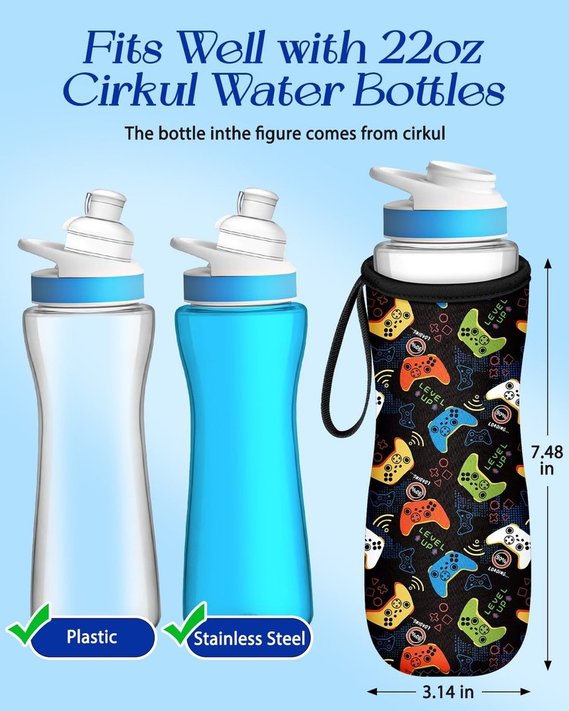 Water Bottle Sleeve for Cirkul 22 oz - Bottles Cover Holder Carrier Bag with Handle Strap Product Details Size: 22 Ounces Color: Black Game Brand: Toykee MPN: CirkulSleeve0509-1ge-22oz-youxishoubing UPC: Does not apply EAN: Does not apply Brand: Toykee Material: Neoprene Bottle Type: Water Bottle Color: Black Game Capacity: 22 Fluid Ounces Brand: Toykee Material: Neoprene Bottle Type: Water Bottle Color: Black Game Capacity: 22 Fluid Ounces Special Feature: Insulated Product Care Instructions: Machine Wash Model Name: CirkulSleeve0509-1ge-22oz-youxishoubing Number of Items: 1 Reusability: Reusable Shape: Cylindrical Unit Count: 1.0 Count Item Weight: 0.19 Kilograms Manufacturer: Toykee Item Package Dimensions L x W x H: 9.92 x 5.28 x 0.55 inches Package Weight: 0.19 Kilograms Brand Name: Toykee Warranty Description: NO Suggested Users: Boys Part Number: CirkulSleeve0509-1ge-22oz-youxishoubing Included Components: Handle Strap Size: 22 Ounces Date First Available: May 12, 2025 Compatible with Cirkul 22 oz Water Bottles & Handle to Carrier: Fits both plastic and stainless steel bottles. It has a short handle for hanging and is easy to carry by hand. Prevents scratches and dents: This sleeve can protect your bottle. It also enhances the friction between your hands and the cup, providing a more secure grip and reducing the risk of accidental drops. Absorbs Sweat, Prevent Condensation and Easy to Clean: Made of neoprene, it effectively absorbs sweat, keeping your bottle and hands dry. It also prevents your desk or bag from getting wet. Machine washable. Thermal Insulation: This bottle cover can keep your beverages hot or cold for longer periods. Whether it's a hot or ice-cold drink, you can enjoy the right temperature for a longer time. Great Item for Cirkul Fans: The fashionable design makes your cup personalized and adds style to your activities such as working, fitness, walking, traveling, hiking, camping and more.