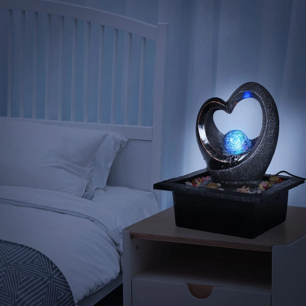 Mini fountain provides soothing relaxation and tranquility. Listen to the sounds of a water cascade crashing down onto the tiers below as they gently rock you to sleep or bring you a comforting stress relief. DECORATIVE ACCENT: The Electric Meditation Indoor Fountain is a stylish piece of home decor that fits on the kitchen counter, living room table, or office desk. It adds beautiful value to any space that will surely wow your guests! SOOTHING RELAXATION: The modern tabletop water fountain provides soothing relaxation and tranquility. Listen to the sounds of a waterfall crashing down onto the tiers below as they gently rock you to sleep or bring you a comforting stress relief. BUILT-IN AUTOMATIC PUMP: Each portable water fountain kit has a built-in quiet submersible pump that continuously circulates the water keeping it safer, cleaner & free of algae. It features an adjustable water flow rate and a simple plug in operation. INDOOR SAFE: A versatile gardening and landscaping piece, this cool tiered desktop cascade LED fountain can be placed anywhere inside or outside your home. Perfect for your bedroom, garden or patio!