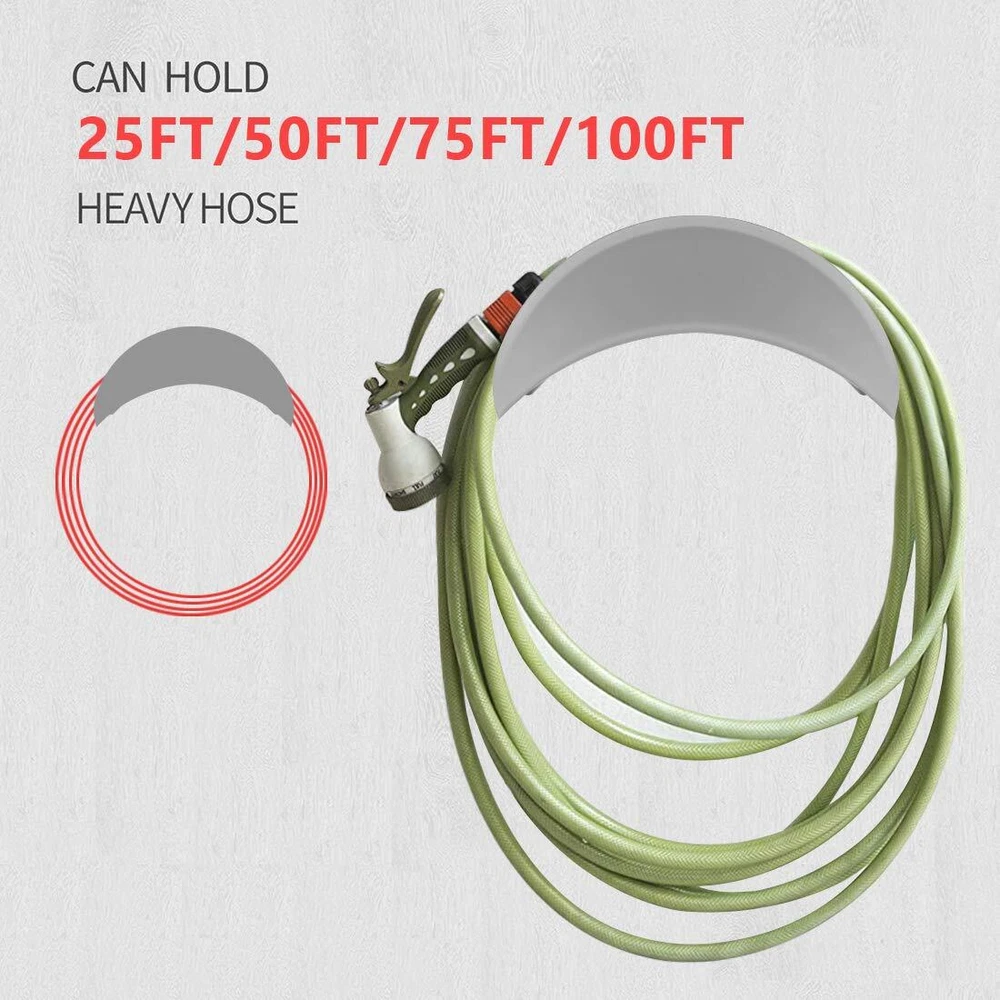 Material:Iron Instead of leaving your hose lying around where it could get tangled and damaged, hang it up tidily on the side, and not only give your hose a longer life- make your yard look much nicer and neater! This high-quality hose hanger is built not only too last but also to keep its sleek and neat appearance! It is made to be hung outside and will be rust-resistant, even in harsh weather and climate! The hose holder can help the hose stay in good condition, prevent your garden hose from kinking or tangling, reduce floor space, neat and easy to store. Garden hose mount is made of durable heavy duty iron materials, not easy to rust, can bear heavy weight sufficient to support large hoses and keep upright. Garden hose mount easy to use, no assembly required, hanging design easy to hold and convenient to hang the holder on the faucet or screws. Garden hose rack for organizing power tools, garden hoses, ropes and other bulky items, save you the trouble of organizing tools, gives your garage or backyard a beautiful look that. Product Size: 11.4"x4.52"x5.12"(29x11.5x13cm)