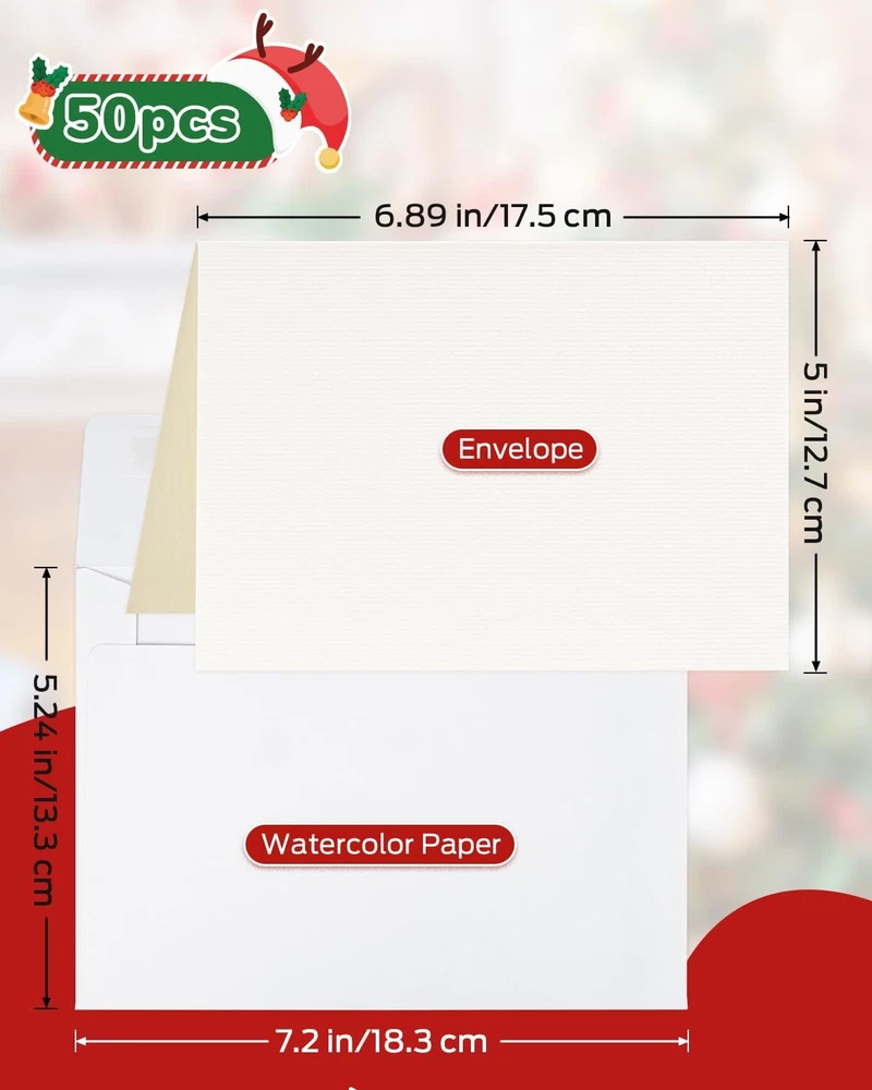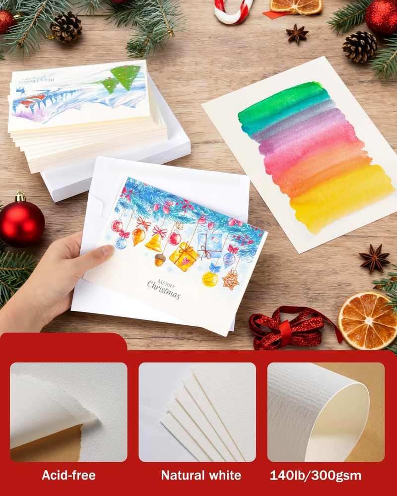 Watercolor Cards and Envelopes Set - 50 Folded 5X7 Inch Blank Heavyweight Paper