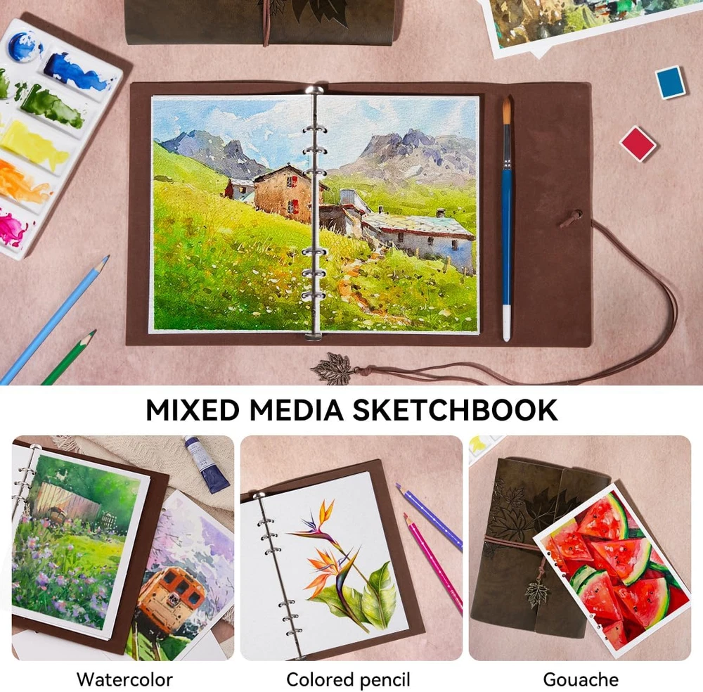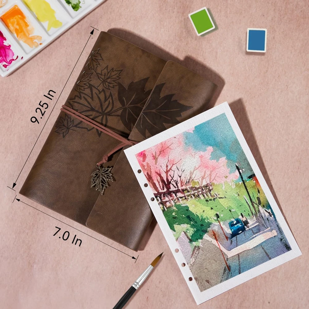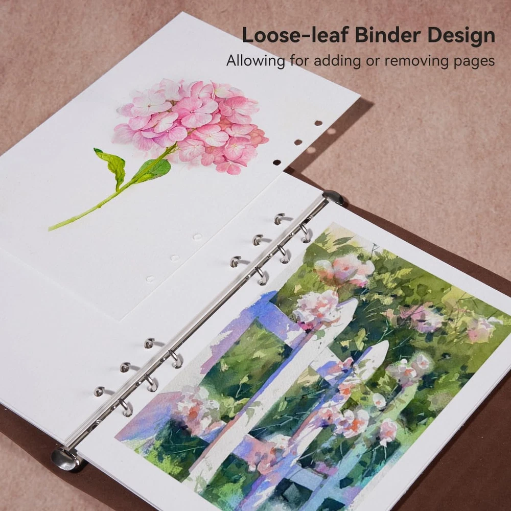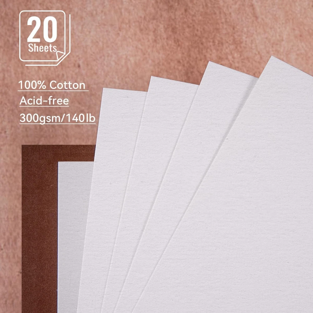 Acid Free & 100% Cotton:Elevate your art with our premium watercolor paper, meticulously crafted from 100% cotton and boasting acid-free properties. Enjoy vibrant colors that stay true over time, thanks to its exceptional color stability. Whether you're into wet-on-wet, drybrush, printmaking, or mixed media, our versatile paper offers endless creative possibilities Cold Press Watercolor Paper: Experience the textured allure of cold press watercolor journals, offering a slightly rough surface that adds depth and character to your artwork, perfect for expressive techniques and creating atmospheric effects. Easy Detach and Display: Featuring a convenient refillable design, this watercolor journal allows you to effortlessly remove pages for display or storage, making it perfect for artists on the go. Unleash Your Creativity : Featuring 20 sheets of premium 300gsm paper, this compact yet sturdy notebook is perfect for capturing your artistic visions on the go. Whether you're a seasoned artist or just starting out, our journal provides the perfect canvas for your watercolor masterpieces. With its heavyweight paper and ample pages, it's time to bring your ideas to life and create something truly extraordinary. Wide Application:Ideal for watercolor, gouache, acrylics, and more, this paper is a must-have for artists of all levels. With its unique cover design, our journal is not only perfect for personal use but also makes a thoughtful and artistic gift. Whether you're sketching, painting, or journaling, our watercolor paper provides the perfect surface for your artistic expression. Product Description