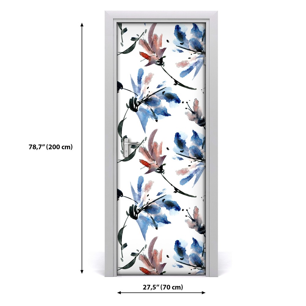 Embroidered delicate flowers Bubble Free Door sticker black and Colourful