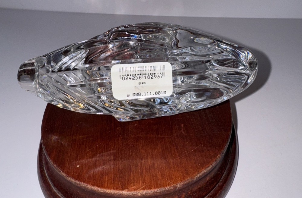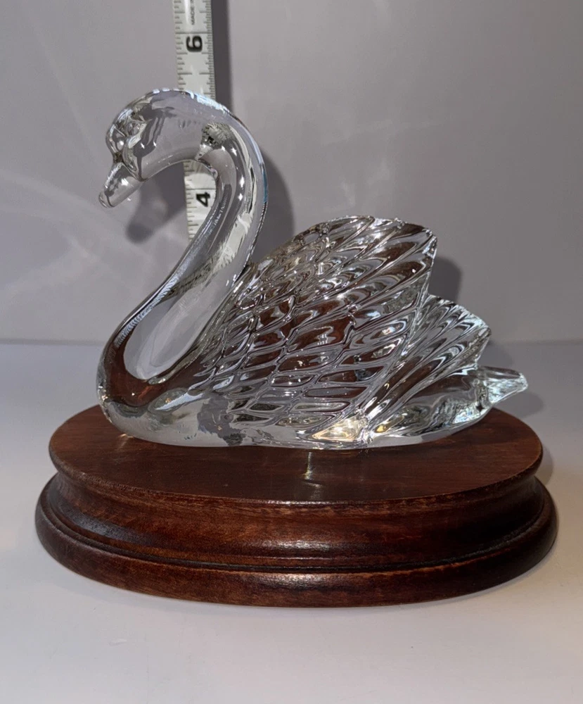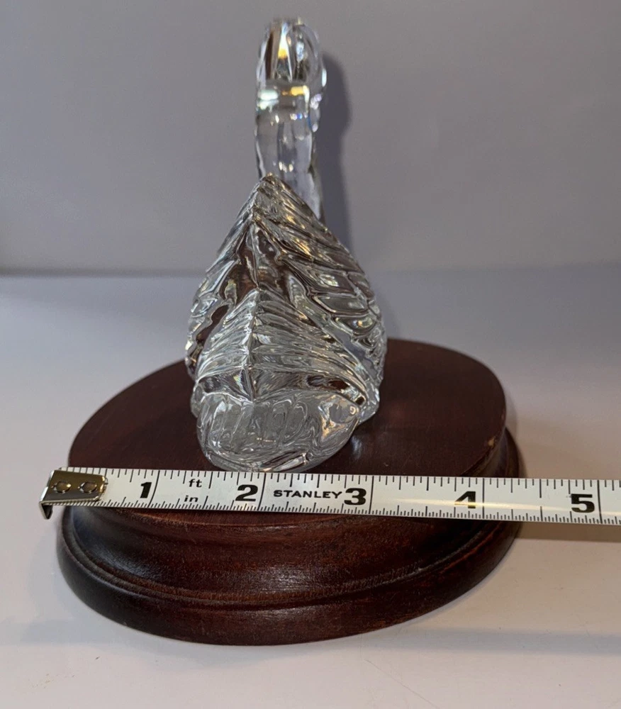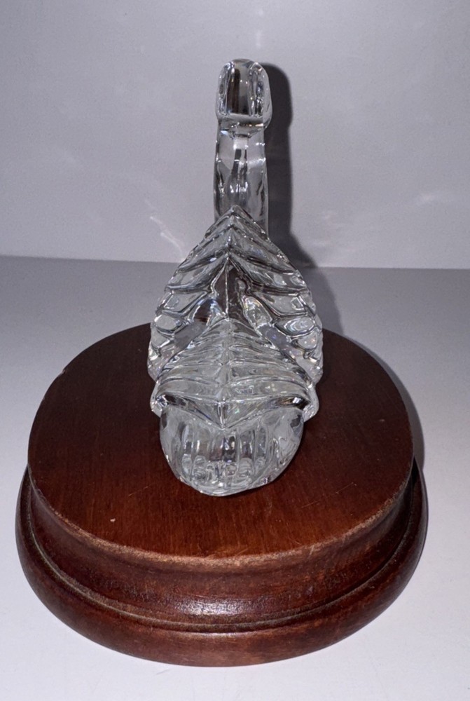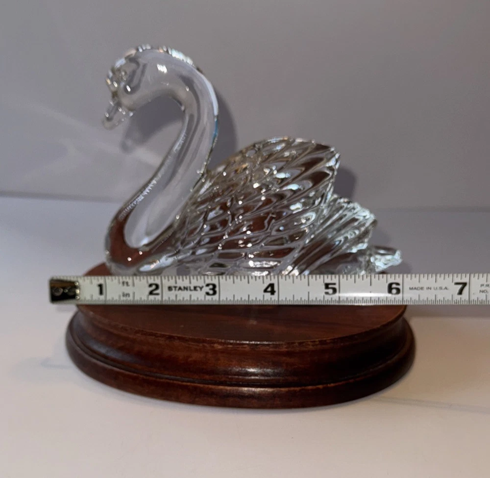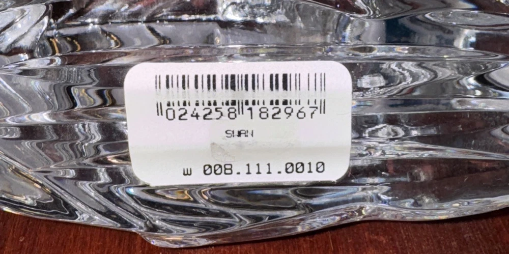 This exquisite Waterford crystal figurine depicts a swan and is part of the Legends & Lore series produced by The Waterford Society in 1996. The figurine is handmade using hand-blown glass production techniques and has a glossy finish. The swan figurine is 5.5 inches in length, 4 inches in height, and 2.25 inches in width, and weighs 2 lbs. The figurine is a vintage item from the late 20th century and is an original, licensed reproduction from Ireland. It features an abstract pattern with a clear color, and its production style is art glass. The item is in excellent condition and comes with its original packaging. This Waterford crystal swan figurine is a stunning decorative piece that will add a touch of elegance to any room.