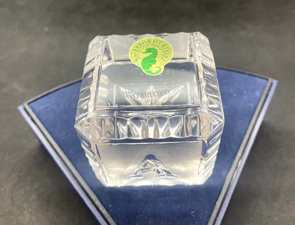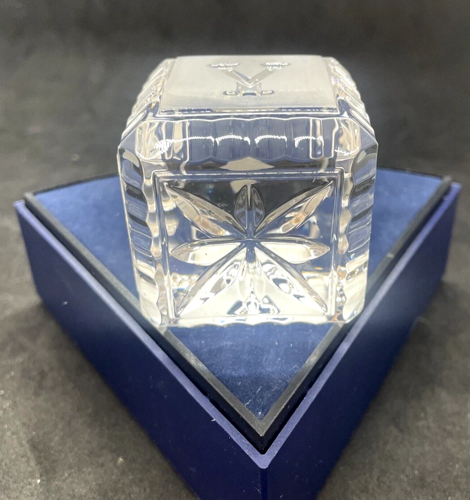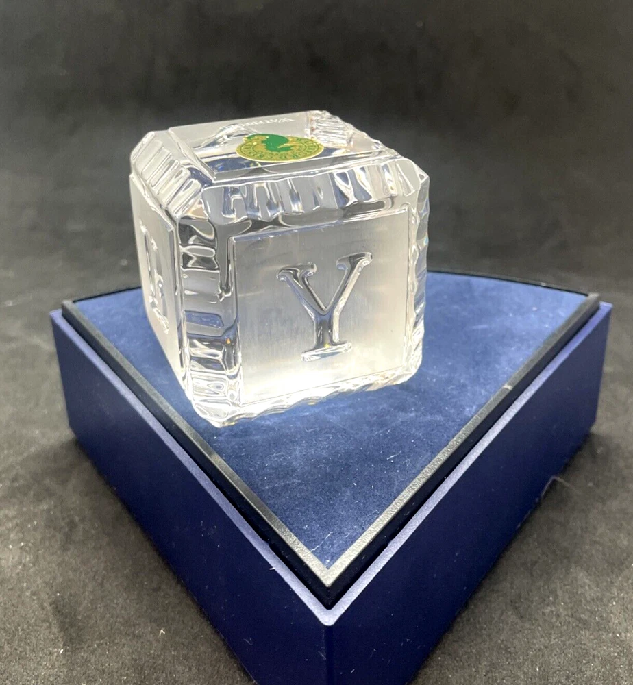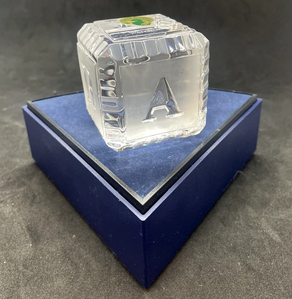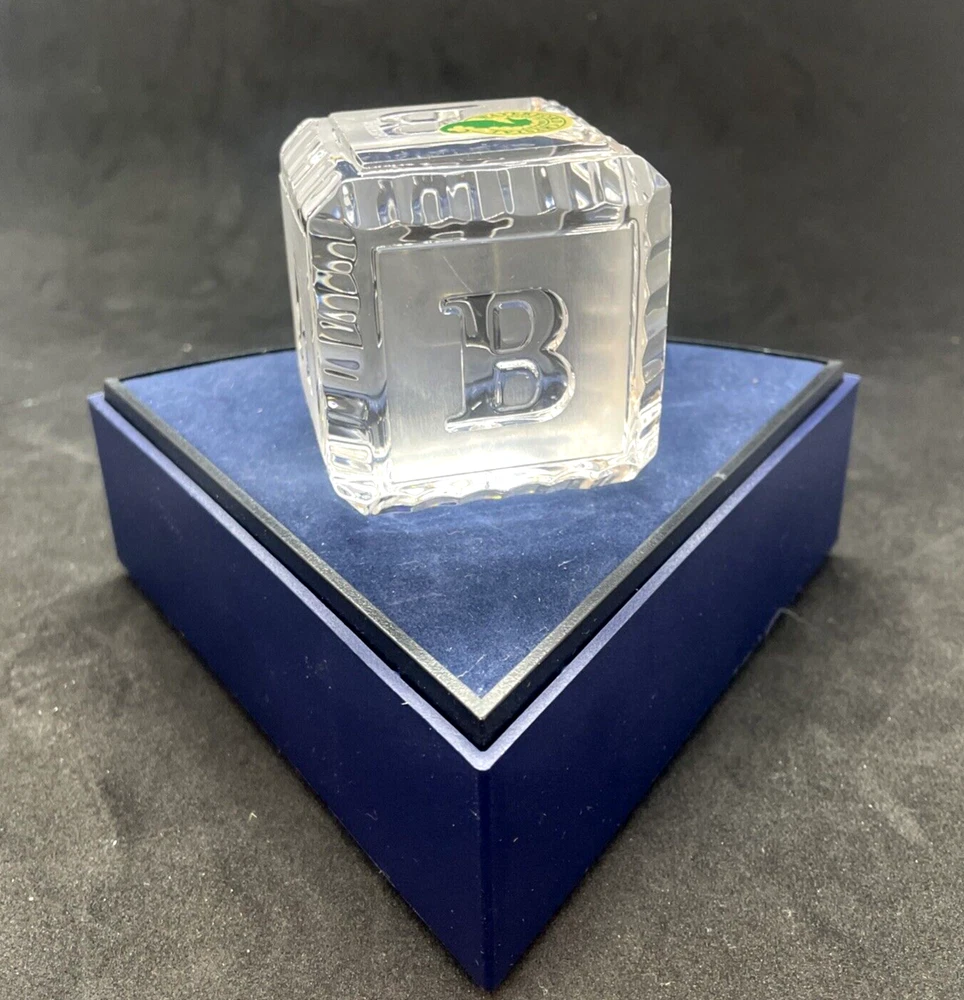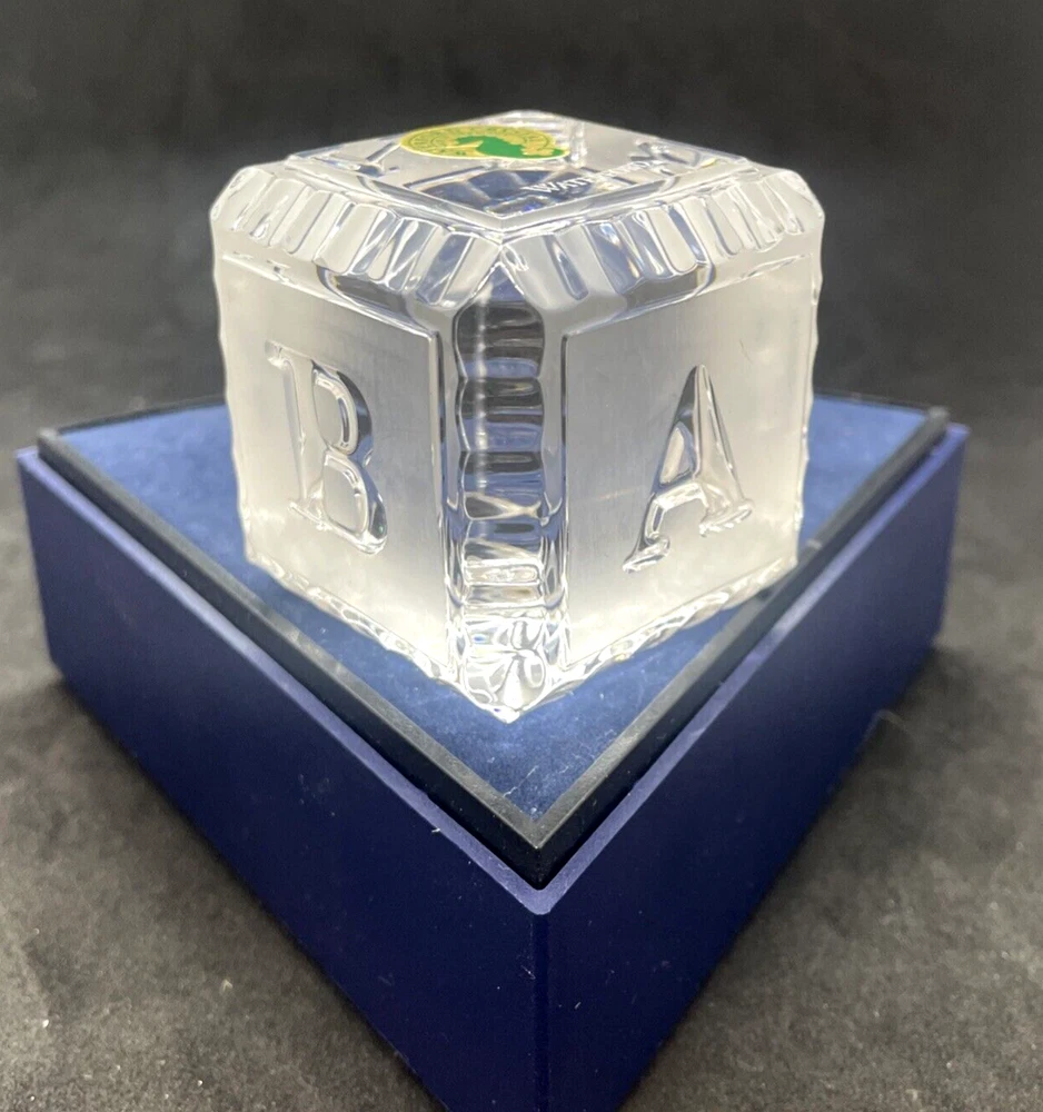 Waterford Crystal BABY Alphabet Block 2" Paperweight Glass Square Cube This baby block is in excellent pre owned condition. There are no chips or cracks. It measures 2"x 2" x 2". Please note the photos for detail.