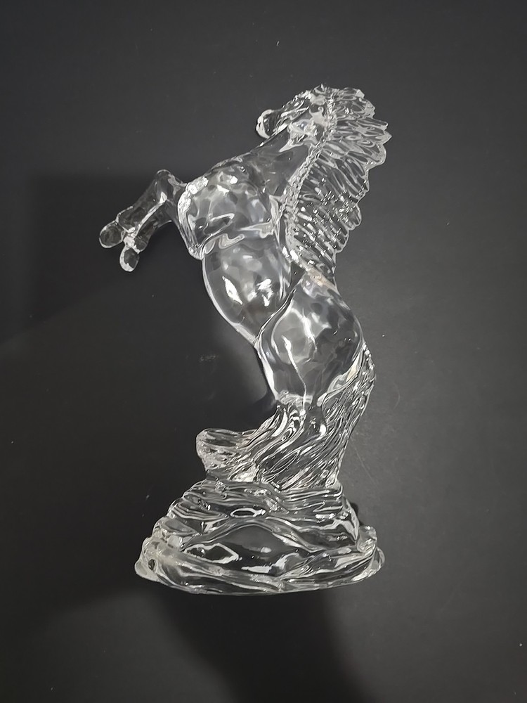 Experience the elegance of equine artistry with this Waterford Crystal Horse Figurine. Standing at an impressive 9.5 inches in height, this glass sculpture captures the graceful spirit of a horse in a stunningly realistic format. Crafted with meticulous attention to detail, it is an authentic piece that brings a touch of animal-themed sophistication to any collection or display. The figurine's origins trace back to China, where skilled artisans shaped and crafted each piece, ensuring that each sculpture met the high standards associated with the Waterford brand. Without its original packaging, this horse sculpture is ready to be admired and showcased by art enthusiasts and equine lovers alike.