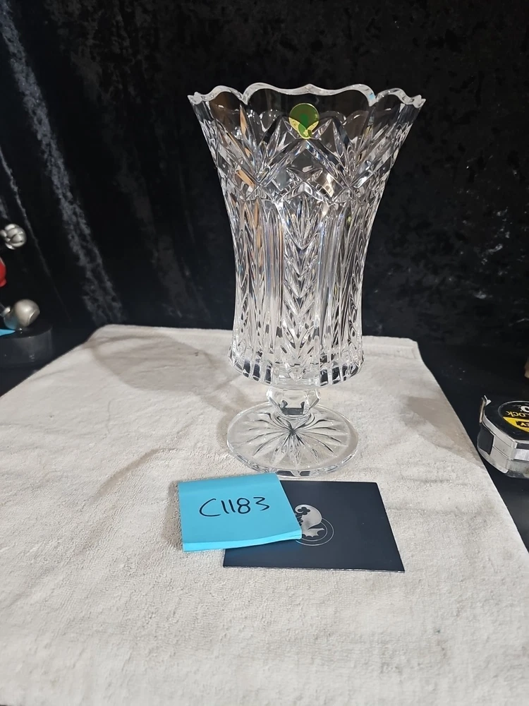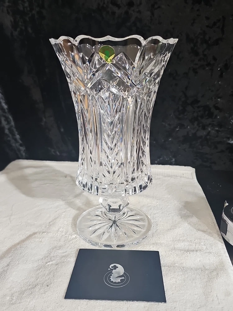 WATERFORD CRYSTAL IRISH TREASURE 10 3/4" FOOTED VASE 5TH ED good condition I have assigned it as used because the bottom part looks as if it had been glued there. I found it and that's how I put it up for sale. Thanks for looking at the details in the photos.
