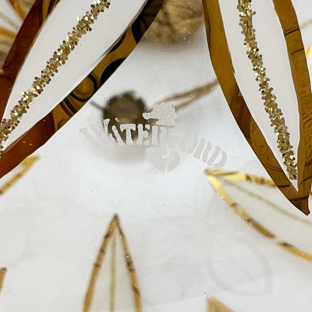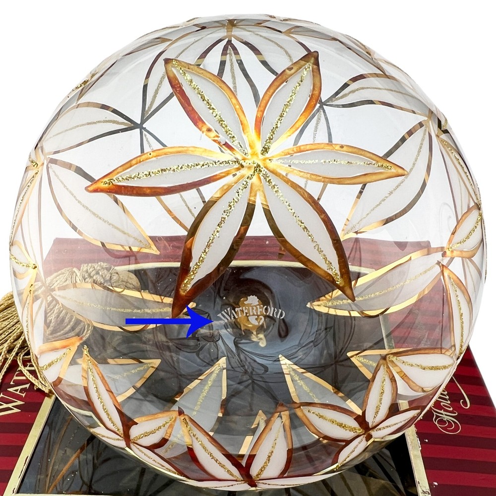 Waterford Crystal - Lismore 24CT Gold Ball Holiday Heirlooms Ornament For your consideration, "Lismore 24CT Gold Ball" ornament is an oversized ball hand-decorated with 24CT gold to replicate the timeless Lismore pattern. Much larger than the typical Holiday Heirlooms ball ornaments, I have taken a picture next to a typical Waterford Crystal ball ornament and then a soda can to help you envision size. The image of the ornament sitting atop the box is held in place with museum putty which is the white that you see underneath the ornament. 4-1/2" Across Hand made and decorated Beautiful, damage-free The ornament stand and clear ornament are not included but used as photography props "The name Waterford has been synonymous with fine quality and excellence in workmanship for over two centuries. For generations, the master craftsmen at Waterford Crystal have been creating the most beautiful and sought after crystal in the world. Waterford Holiday Heirlooms bring the tradition of hand cut crystal from the world's leading artisans to a collection of handcrafted holiday ornaments that reflect and illuminate the spirit of the season. The Holiday Heirloom ornament was created by highly skilled glass-blowers using centuries old techniques handed down from generation to generation. Artists skilled in the application of intricate detail painstakingly adorn and decorate each piece. The charm of handcrafting gives unique characteristics to your ornament. No two are exactly alike. With signature flourish, a Waterford inscribed hanger cap and coordinating with ribbon crown your Holiday Heirloom ornament." Ships insured Have more Christmas listed Value Added Service We answer emails personally and understand you have concerns and questions that may be outside of the scope of the auction copy Feedback is left by us when we receive your payment. It's the very least we can do to thank you for putting your trust in us We know how to pack, using the proper materials to best protect your purchase Shipping Buyer is responsible for shipping costs, unless the listing is advertised as "Free Shipping". The shipping fee is either clearly stated or the eBay calculator determines shipping based on your zip code and the box particulars. Multiple purchases may have an unknown shipping rate due to fluctuations in weight but items will be combined to save money whenever possible. Insurance is always provided by us to cover loss or in the rare instance, damage If you intend on bidding on multiple items, please let us know so we don't start packing in advance In the case of damage in an insured shipment: Retain all packing materials and the box that was received. Please submit digital images of the damage as well as the shipping box and packing materials via Contact Seller in eBay. Returns If you receive something not as described due to a blatant mistake on our part, we'll pay everything; return shipping as well as a full refund of the purchase price and the original shipping Buyer's Remorse: We are flexible if a purchased item arrives and you simply change your mind. A 15% restocking fee will be charged and return shipping is at buyer's expense Please notify us within three days of item(s) receipt and for pre-authorization (use the contact button). The item(s) must be returned and received in the same condition as when originally shipped. Item(s) must be returned shipping prepaid, insured for the full value and safely wrapped and packaged to prevent shipping damage. Unless stated as new, these pieces have been around for many years, some as many as 100 years and are sold as described. They may have been displayed, used, washed, packed, etc The pictures and descriptions are as detailed as possible, and all reasonable care has been taken to describe as accurately as possible along with any damage or issues noted. However, vintage and antiques are previously owned If anything less than perfect, out of the box, isn't acceptable, these style pieces may not meet your standards. - All sales are US only at this time.