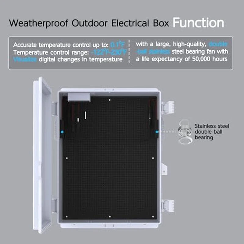 You may also like ABS Plastic Waterproof Outdoor Electrical Box WiFi Enclosure W/ Fan Accessories 64.98 USD Free shipping Heavy Duty Waterproof Dustproof Electrical Enclosure Junction Box Industrial Use 48.08 USD Free shipping About this item 【Sturdy and durable】The junction box is made of high-quality ABS material, which has good impact resistance and ensures good electrical insulation. 【EASY TO INSTALL】The waterproof box comes with a removable grill mounting plate and 2 mounting brackets, you can easily fix the device into the waterproof plastic box. The outdoor electrical box comes with mounting screws to hang on the wall or fence. 【Ventilation and Heat Sinks】 The junction box is equipped with two high-volume 12V fans on either side of the box and a 1. 77-inch diameter heat sink. The junction box also has a 12V thermostat. When the temperature inside the junction box is above or equal to the start temperature, the fans activate to rapidly remove heat from the junction box, preventing excessive temperatures from causing equipment failure or improper operation. When the temperature drops to the stop temperature, the fan stops running. This extends the service life of the fan and saves on electricity costs. 【Rainproof and dustproof】Outdoor all-weather electrical box, the outside of the air outlet is equipped with a rainproof shutter, built-in dustproof mesh, the window leaves are tilted downward by 45 degrees, and waterproof strips are used in the contact parts with the electrical box. The air inlet at the bottom is equipped with 2 dustproof nets and 1 piece of double-sided tape, and the dustproof net is pasted on the air inlet. Dust can be prevented from entering. 【Safety Protection】The electrical enclosure box is equipped with a simple non-slip buckle to fix the box door, waterproof and dustproof, and reserved lock holes to provide double safety protection. 【Product Dimensions】 The external dimensions of the project box are 15. 7 "Hx11 "Lx5. 9 "W inches and the internal dimensions are 13. 8 "Hx10. 6 "Lx5. 1 "W inches. Material:ABS Plastic Brand:Akwscyby Color:milky white Product Dimensions:5. 9"D x 11"W x 15. 7"H Finish Type:Polished Variety Pack Sweet Salty Nut Granola Bars 15 Ct Portable Snack Treats New 11.22 USD Free shipping Sweet Salty Peanut Chewy Granola Bars 15 Count Healthy Snack Treat New 11.22 USD Free shipping Ready to Eat Chewy Marshmallow Snack Bars 12 Count Oversized Treats 13.96oz New 9.18 USD Free shipping Pre-Ground Black Pepper Seasoning Spice Kitchen Essential 4.7oz New Refill 8.43 USD Free shipping Freshly Ground 5.8oz Black Peppercorns Grinder Refill Gluten-Free Enhance Flavor 8.43 USD Free shipping Gourmet Blend Peppercorn Medley Grinder Refill Whole Spices Seasoning Granules 8.43 USD Free shipping Chewy Original Marshmallow Cereal Bars Ready to Eat Snack 31.2oz 40 Count New 14.82 USD Free shipping 6 Mega Rolls Premium Toilet Paper Strong Soft Everyday New Bathroom Septic Safe 10.47 USD Free shipping 3-Opening Linear Gallery Collage Picture Frame 4x6 for Home Office Party White 13.41 USD Free shipping 4-Piece Hexagonal Modern Wood and Stone Coaster Set for Everyday Dinner Parties 10.45 USD Free shipping Artificial Green Eucalyptus Plant 12" Blown Glass Vase for Nightstand Desk Decor 22.45 USD Free shipping 100% Cotton Plaid Woven Table Throw Machine Washable Dining Tablecloth Tabletop 19.47 USD Free shipping