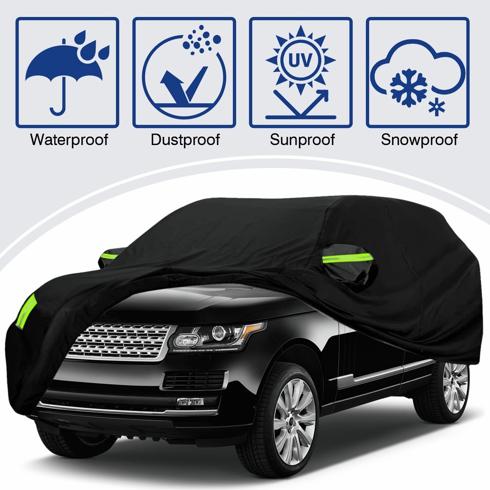 Item Width: 75 in Manufacturer Part Number: APD03WB003 Number of Pieces: 1 gtin13: Does not apply Features: Breathable, Elastic Hem, Foldable, Full Coverage, Mirror Pockets, Portable, UV Resistant, Waterproof Attachment Type: Strap-On Item Length: 191 in UPC: Does not apply Item Height: 73 in Items Included: Straps Universal Fitment: Yes Material: Polyester Color: Black OE/OEM Part Number: Fit Nissan Rogue Type: Car Cover Brand: Unbranded Suitable For: SUV, Crossover Manufacturer Warranty: 1 Year