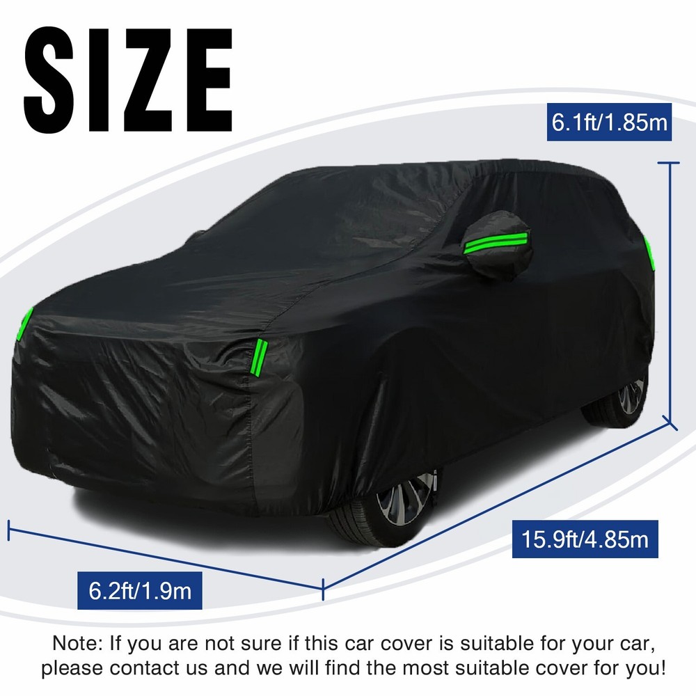Feature : High quality: Car Covers are made of Heavy Duty 100% Waterproof material.Great for sunproof rainproof. Better for wear-resistant and tear-resistant. 4 Securing Straps : The elasticated edge of the cover will provide a good fit for your car, and 4 securing straps underneath, keeps your car in place even in windy days. Reflective Strips: The fluorescent reflective strips will shine at night to remind others away from the car and help you find the car quickly.With ear design for covering car mirrors. Suitable for All Seasons: Outstanding snow-proof, water-resistant and durable. All-weather protection, the car cover is perfect for indoor and outdoor use and keeps your vehicle look brand new, dust-proof, anti-UV, heat protection, and scratch-resistant. Size Fitment- Dimension:191'' L x 75'' W x 73''H.Please Measure Your Car's Length First.This is Very Important to Avoid Unnecessary Trouble. Specifications : Type: Full Car Cover Size: 191*75*73" Color: Black Note: In Different Years, The Length Of The Car Is Different. Please Choose The Cover According To Your Car Length. Package include : 1 x Full Car Cover