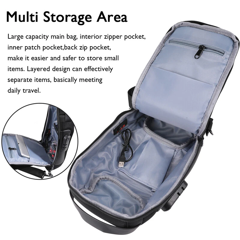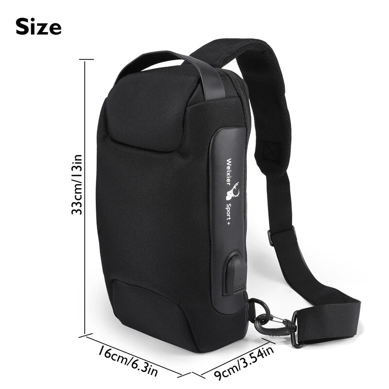 Crossbody Sling Backpack Travel Hiking Chest Bag Daypack Waterproof Anti-theft Crossbody Sling Backpack Travel Hiking Chest Bag Daypack Waterproof Anti-theft 100% Brand New & Excellent quality Free & fast shipping, with tracking number provided Feature: * Breathable: The waterproof cipher bag is made of high-density oxford for durability, and the breathable mesh sponge desigh on the back and shoulder straps enhances breathability, heat dissipation and sweat resistance, at the same time, the backpack adopts a portable design to improve comfort. * Waterproof: Using high-density impermeable fabric, no rain erosion when going out, 95% surface area is abrasion resistant and scratch resistant fabric, it is a great choice for sports, camping, hiking, work, cycling, travel and other accasions. * Password Lock Protection: The waterproof password bag uses a zipper design with a three-digit password (the initial password is 000), which can prevent the chest bag zipper from beging opened and steal valuables when going out, perfectly protecting your personal belongings. * USB Port Design: The password chest pack provides a USB charging port, built-in USB charging cable, the charging port is located on the side of the backpack, USB charging (dual port) makes it easier to charge your phone outdoors and when traveling. * Multiple Storage Areas: Large-capacity main pocket, inner zipper pocket, inner patch pocket, rear zipper pocket, make storing small iteams easier and safer, the layered design is ideal for storing cameras, power banks, water bottles, notebooks, pens, etc., it can effectively separate items and meet your storage needs, which is practical and stylish. * Multifunctional Use: The waterproof cipher bag can be used as a messenger bag, shoulder bag, cross-body backpack, casual day bag, chest bad, work or business bag, also perfect for daily use, office, shool, outdoor, travel and business, etc. occasion, but also the perfect gift for friends and family. Specification: Colour: Black Material: ABS+ Oxford cloth Style: chest bag Opening: Combination lock zipper Adjustable shoulder strap length: 80~115cm/32~45inch Product size: 16(length)*9(thickness)*33(height)cm/6.3*3.54*13inch Net product weight: 0.38kg Package include: 1 x Waterproof Password Bag Payment Shipment Return Feedback Contact us Payment * We Accept Payment via PAYPAL ONLY . * Payment Must be Made within 4 Days of Auction Closing. * Non-Payment may Result in a UPI (Unpaid Item) being Put on Your Account. eBay will Automatically Close Your Account if You Accumulate 4 UPI's total. * Please List Your Special Requests ( Color, Size, Packages, etc. ) in the PAYPAL NOTES SECTION when you make payment. Shipment * Shipping will be handled in 24 business hours after payment got. Ship to PayPal Address only , please confirm it before paying. * Please leave your phone number in the address in case there is an address problem. Return * Returns and Exchange accepted within 60 Days. * Refund will be given as Money Back. * Free Return shipping. * Before you return the defective item,please email us for the RMA, and we will reply you in 24 hours in working days. If you do not get reply please check if your mail box has refused our reply or not, then send to us again, thanks! Feedback If you are satisfied with the transaction please remember to leave us a positive feedback (5-Star) will be much appreciated. Please DO remember to contact us before leaving the neutral (3 stars) , negative feedback (1-2 stars) or opening a case/dispute if any problem caused by the item . Normally your email would get replied within 24 hours on working day and your issue would be followed up carefully until we've reached a consensus! We will try our best to solve the problem and leave you a happy shopping mood here. Thank you! We are not only selling good items, but also selling with excellent after-sale service and a strong sense of responsibility. We will always try our best to find you a satisfactory solution if any problem takes place! Contact us Email muchbuy-outlet at Paypal registered email or ebay message.