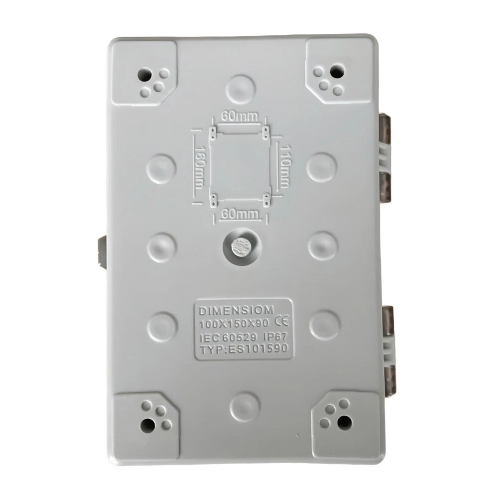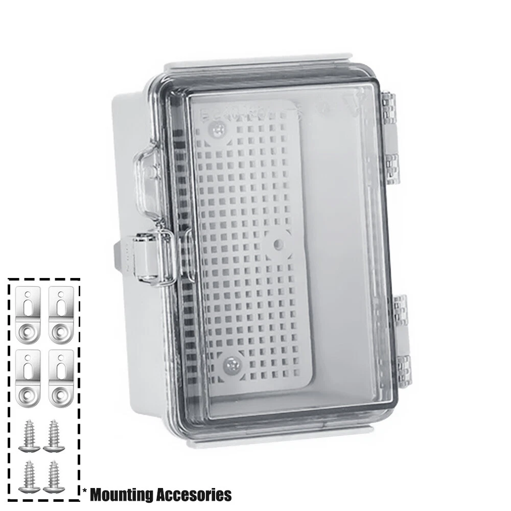 Prodcut Description: 1.Waterproof/Dustproof junction boxes,perfect for use outdoors. 2.Junction box means these are well protected from rain and water splash back, making them perfect for joining wires inside. 3.Easy to install and easy to use. 4.100% brand new and high quality. 5. Size:5.9" x 3.93" x 3.54" Features: 【Specifications】Product name: Electrical Box; Waterproof rating : IP67 ; Qualification:CE、ROHS; Material: ABS, PC; Main Color: Gray,Transparent. 【Industrial Electrical Box】: Electrical unit is not only weather resistant but also waterproof and does not allow dust to enter. You can drill holes inside depending upon your project requirement with no cracks and compromise. 【Easy to operate】: Electrical unit is easy to install, Hinged enclosure makes the opening and closing easier; Come with transparent cover,the inner project of junction box can be more visible. 【Comprehensive Industrial Enclosure】: The junction box features stainless steel latches for added security and locking. Moisture proof, sunscreen, anti-corrosion for safety from weather based environmental hazards. Package Included: 1 x Electrical junction box 1 x Mounting Plate 1 x Accessory