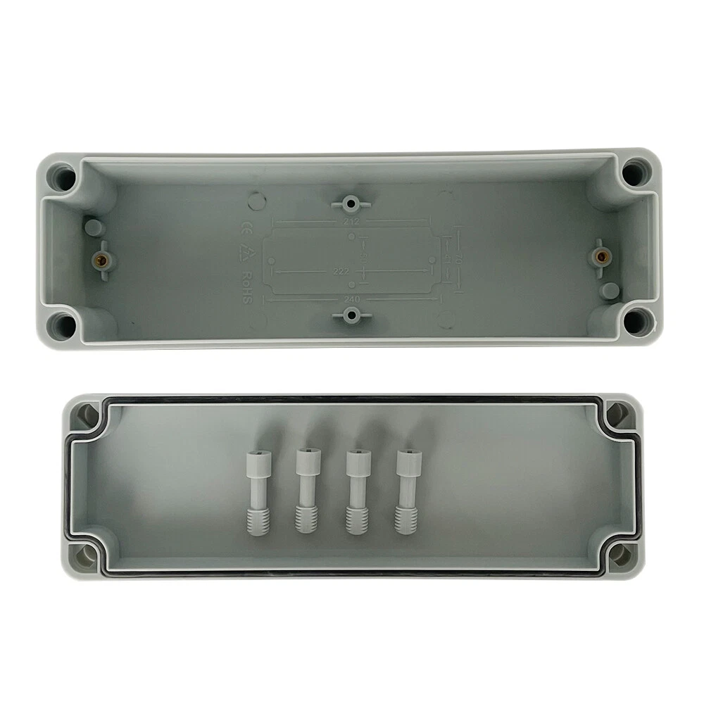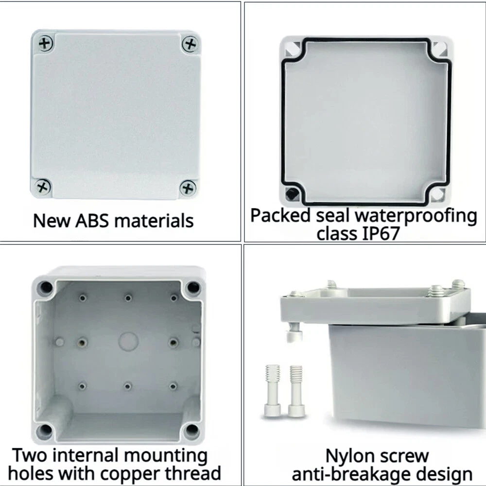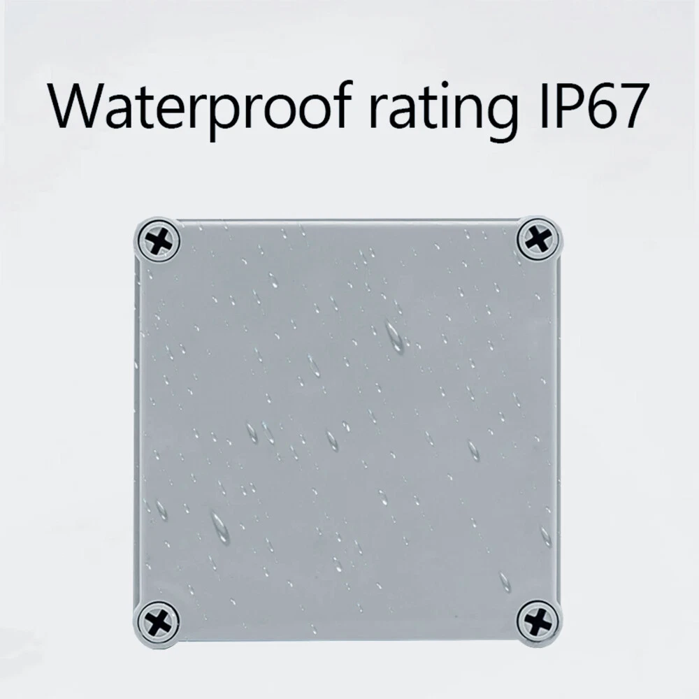 Brand: Unbranded IP Rating: IP67 Material: ABS/Plastic Suitable For: Ceiling, Exterior, Interior, Wall Resistance Properties: Child Resistant, Corrosion Resistant, Dustproof, Dust Resistant, Grease Resistant, Impact Resistant, Moisture Resistant, Rustproof, Rust Resistant, Scratch Resistant, Shockproof, Sunlight/UV Resistant, Tamper Resistant, Tear Resistant, Waterproof, Water Resistant, Weatherproof, Weather Resistant MPN: Does Not Apply Room: Any Room, Indoor/Outdoor Features: Waterproof Application: Automotive, Branch Circuit, Charging/Power, Commercial, Control Equipment Panels, Conveyance Lines, Cooker, Data Centers, Electrical Wiring, Electronics, Fan Control, Home/Garden, Home Appliance, Industrial, Instruments, Large Appliances, Light Control, Multi-Outlet/Power Splitter, Outlet, Portable Generator, Power Transformers, Small Appliances, Telecommunications, Transportation, Voltage Conversion Box Shape: Rectangular Protection Properties: Wire Protection Color: Gray Type: Small Junction Box Mounting Style: Panel, Surface, Suspended, Wall