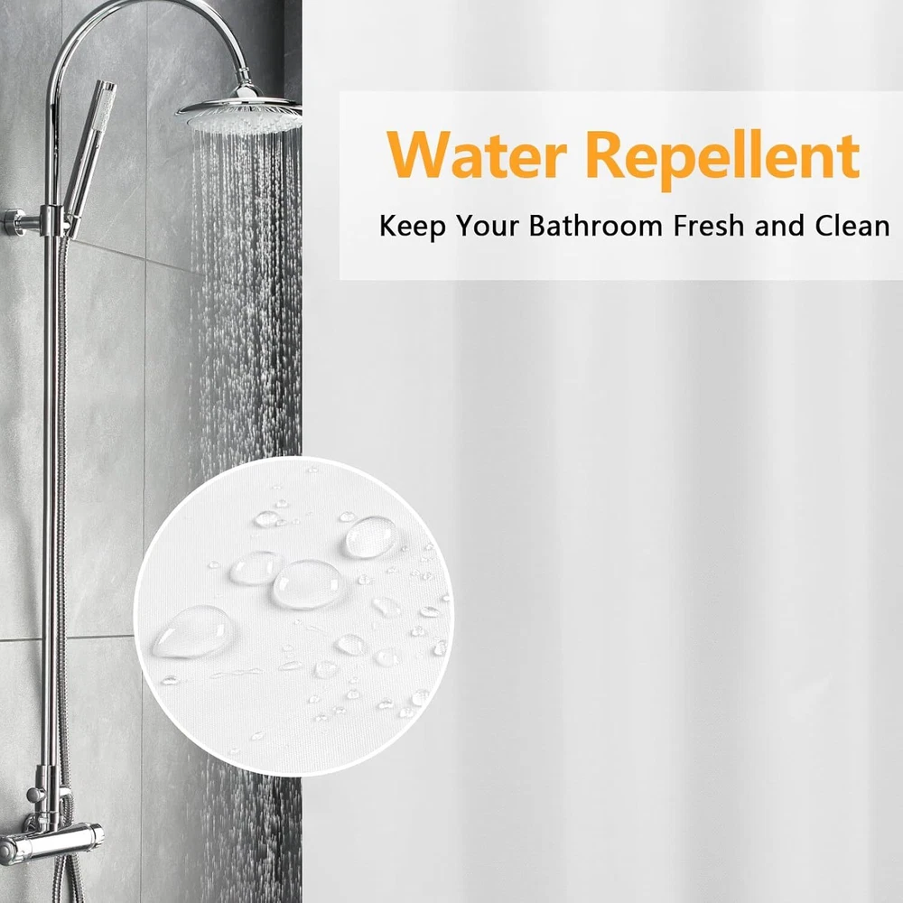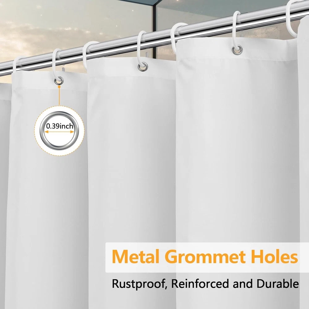 Waterproof Fabric Shower Curtain Liner with 3 72"W x 72"L (Pack of 1), White Product Details Brand: Seenus Color: White Material: Polyester Product Dimensions: 72"L x 72"W Opacity: Blackout 【Waterproof & Dry Quickly】Seenus fabric shower curtain liner has a waterproof coating that promotes water to slide off quickly, water-repellent but breathable. Dries quickly to help you separate wet and dry areas easily in the bathroom. 【Hotel Quality Material】Made of premium polyester fabric which is sturdy, odorless and family-friendly. And fabric shower curtain liners can offer greater privacy compared to clear peva shower liners. So if you don't like plastic shower liners, this fabric shower curtain liner will be a better replacement. 【Magnetic Weighted Hem】Featured 3 heavy magnets at the bottom, which can weight the curtain and so allow it to hang better, keeping the liner in place and prevent it from billowing. This opaque white shower curtain can be used as a stand-alone shower curtain or as a inner shower liner to protect outer shower curtain from dirt and wet. 【Lasting Durability】Designed 72'' width by 72'' height for most bathroom or bathtubs. This cloth shower curtain liner is reinforced with 12 rustproof metal grommet holes, making it more durable and less likely to tear. Easy to install and suitable with any straight or curved shower rods (rods and hooks are not included). 【Machine Washable】Seenus fabric shower liner is so easy to care and maintain. Can be machine washed in cold water and ironed at low temperatures to keep it fresh and reusable. We recommend opening the shower liner completely to dry after each use.