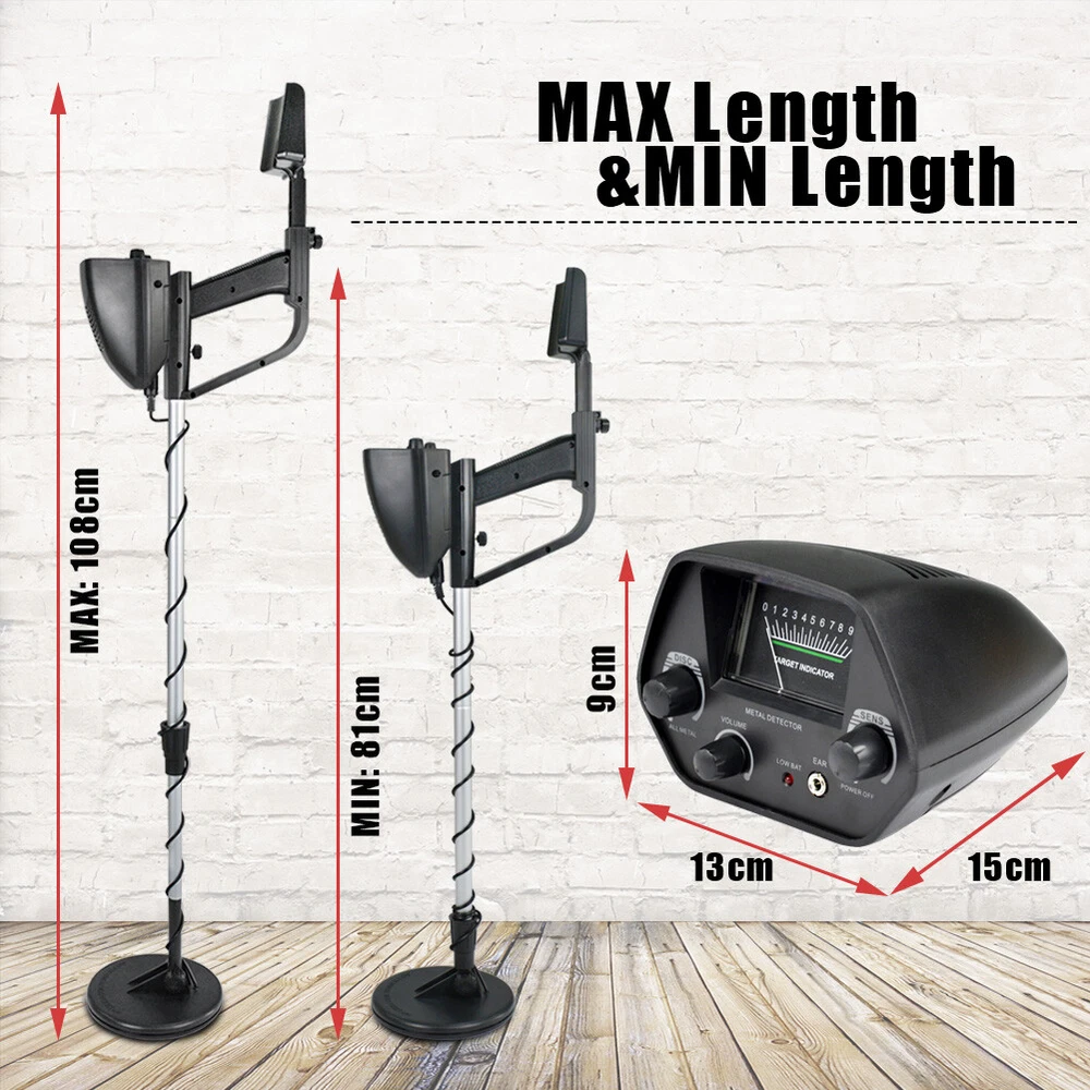 NEW MD-4030A Waterproof LCD Metal Detector Deep Sensitive Digger Treasure Hunt P roduct Description: This MD-4030Ametal detector is ideal for those who are looking for a serious entry-level machine. With your metal detector, you can hunt for coins, relics, jewelry, gold, and silver just about anywhere. This metal detector is versatile and easy to use. The MD-4030A detector improves weight and size, makes it easy to carry and place. Applications: - Detecting metal objects buried underground. Widely used in security check, treasure hunting, material check etc.. Features: 1. Two Operation Modes: All Metal, Disc 2. Volume - To adjust the volume level of speaker and headphone. 3. Earphone Jack - Lets you connect headphones (not supplied) to the detector. 4. View Meter and Pointer - The meter pointer swings to the right if metal is found. 5. Waterproof Search Coil - Lets you search for metal objects under shallow water. 6. Adjustable Stem - Lets you adjust the detector's length. Specifications: 1. Power: 2 x 9V (6F22) 2. Frequency: 5.0 KHz 3. Current: Standby: 10mA,Max: 70mA 4. Voltage: 7.2-9.6V 5. Sensitivity: US 25 Cent: 130mm 6. Indication Mode:Mechanical Indicator Mode, Sound Mode 7. Stretch Length: 31.8-42.5 inches 8.Detector Diameter:6.3 inches 9. Color: Black 10. Weight: 1Kg (not include battery) 11. Package Size: 14.9(L) ×8.8(W) × 3.9(H) inches 12. Package Weight: 1.2kg Package Included: MD-4030A Metal Detector * 1