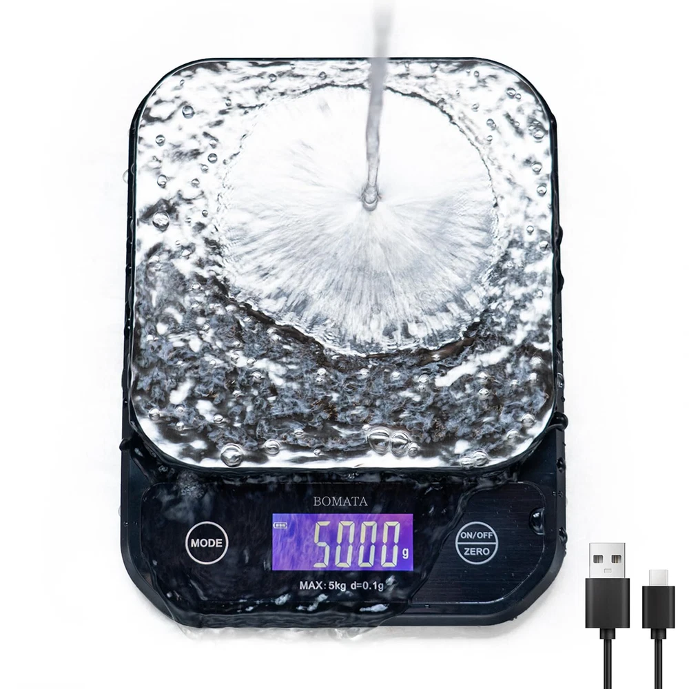 [ Waterproof IPX6, More durable, Easy to Clean]: Kitchen items are easily soiled and wetted by oil, flour, etc. The internal parts of this scale are waterproof and dustproof encapsulated. More durable than typical kitchen scales and can be rinsed underwater if necessary. [ High Precision ]: Resolution/Increment:0.1 g/0.01 oz, Measuring range: 0.01 oz to 11 lb (0.5 g to 5 kg). Equipped with high precision weighing sensor to ensure accuracy and stable. Wider use than scale with 1 g resolution, such as yeast powder, baking powder, seasonings, etc [ 4 Units, Tare, High -quality Parts ]: 4 Units ( oz, lb, g, ml ), Tare Function, Auto-off ( cancelable ), Calibration etc. Advanced full-view large LCD with Backlit , Stainless steel Platform, Touch-sensitive buttons, Built-in buzzer. (Note: The Beep can be set off) [ Dual Power Supply, TYPE-C Rechargeable ]: With built-in lithium battery can be charged by TYPE-C USB cable. Can also be powered by 3 AAA batteries . ※Make sure to take out the AAA battery when washing.( Accessories do not include AAA batteries ) [ Size, Package Contents ]: Size of Scale: 8.3 x 6.3 x 1.2 inches. It Can meet your measurement needs from large meat, food to small condiments, etc. Package Contents : Scale x 1, USB Cable x 1, User manual x 1.