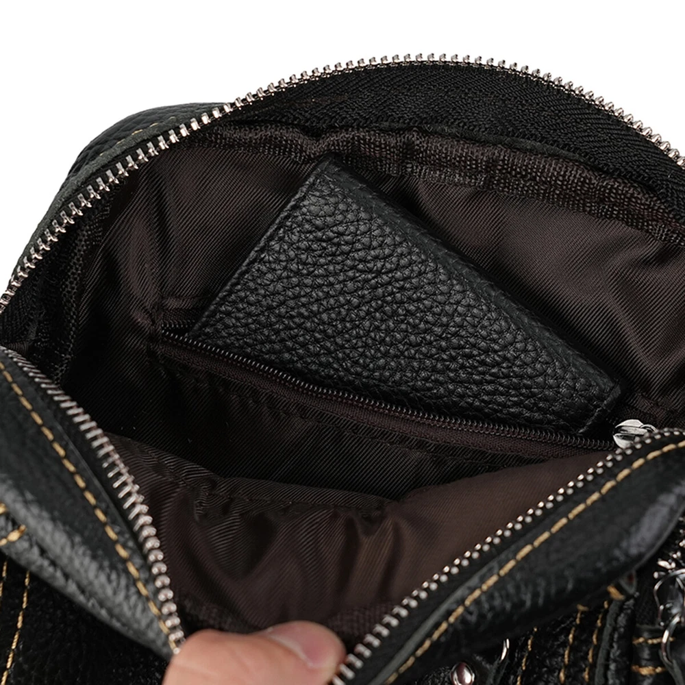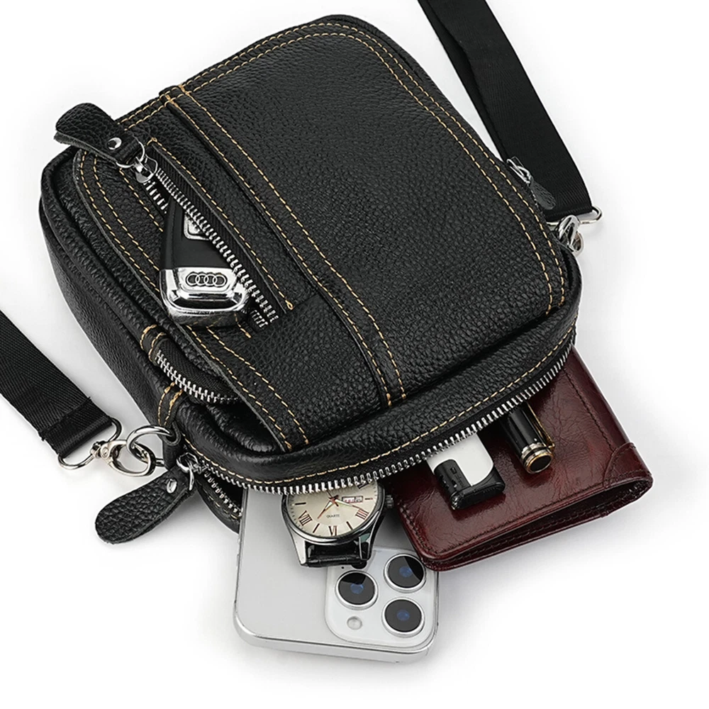 Feature: 1. Smooth zipper, thick hardware buckle, easy to open and close 2. Adjustable shoulder strap to adjust the length. Chest bag and shoulder strap are linked by a removable metal buckle for easy use 3. High quality real leather texture material, beautiful and durable Specification: Color: Black/Brown/Khaki Size: 7.7*8.5*6.5cm Using as: Sling bag, daypack, chest bag, cross-body bag, shoulder bag. Occasion: Perfect for outdoor sports (hiking, camping, climbing, running, cycling etc), school, shopping and so on. The bag can easily match any clothes, no matter formal or casual. Package Includes: 1 x Wallet