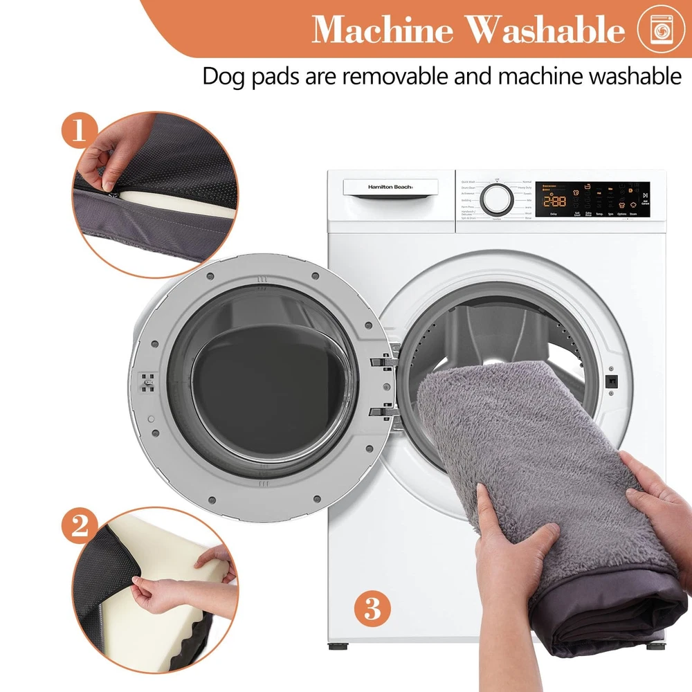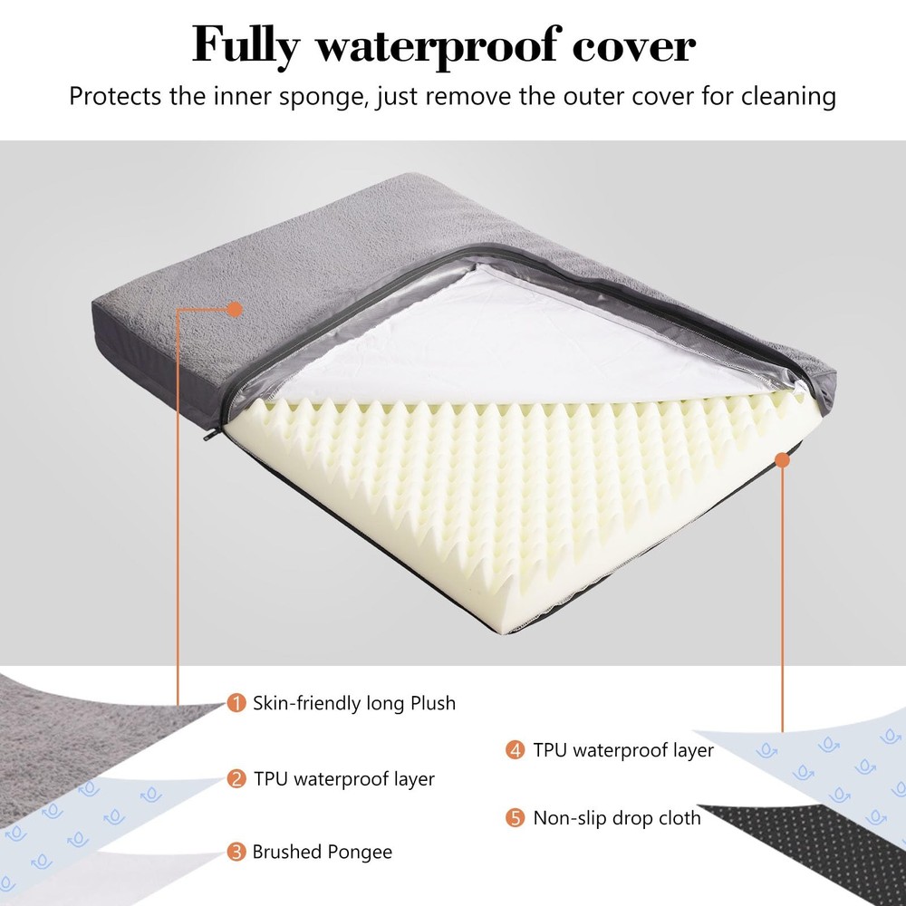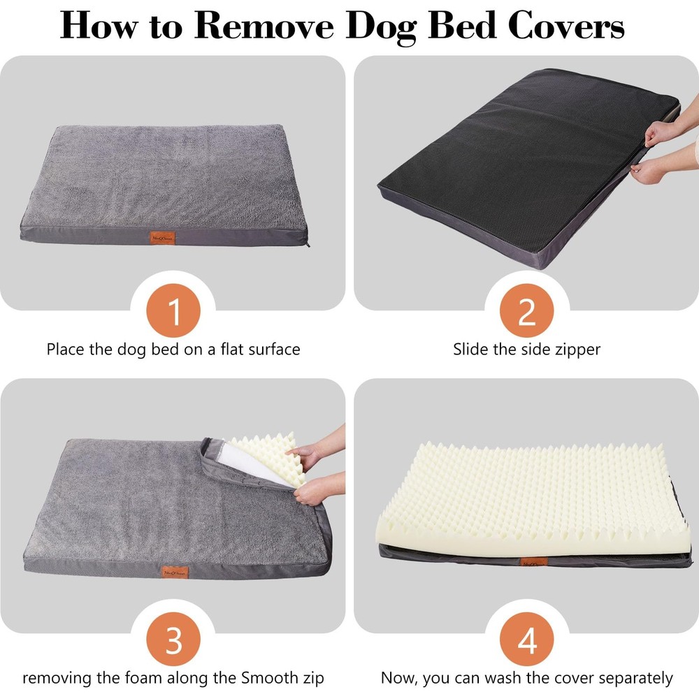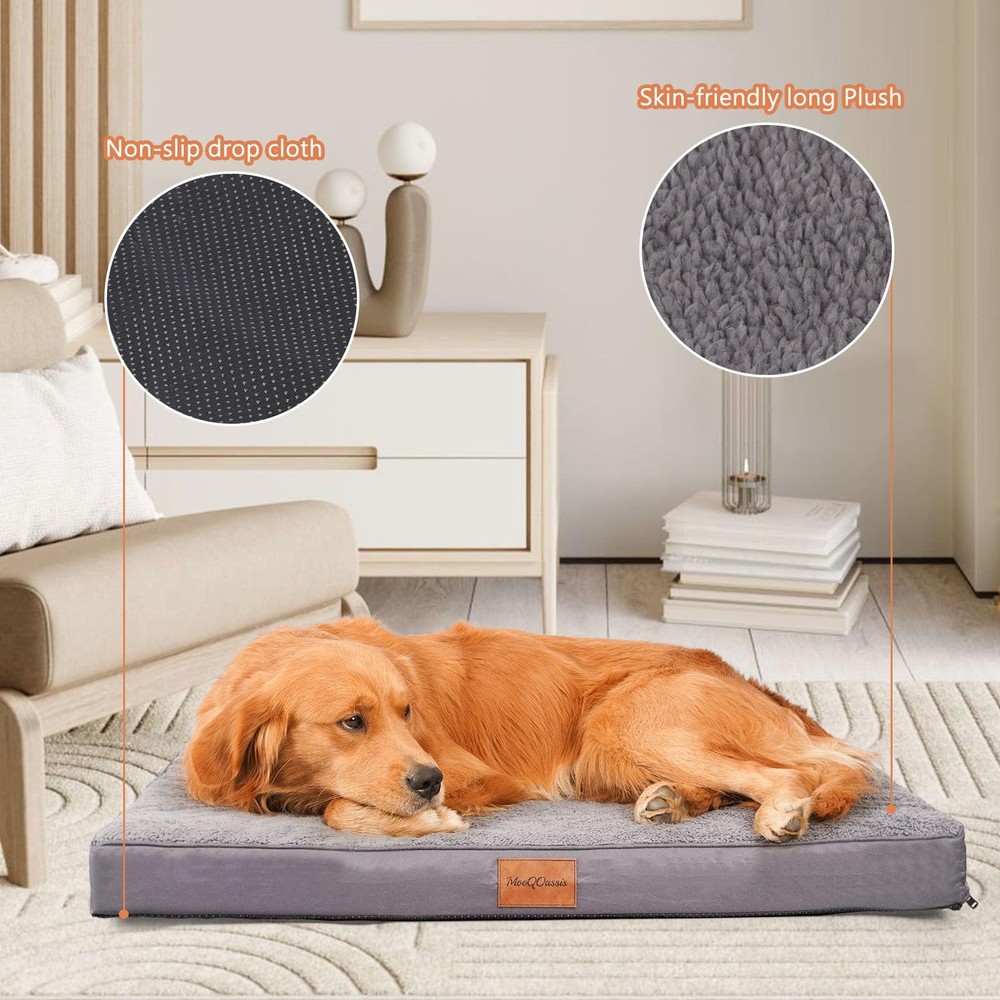 Specifications: Material: Egg Crate Foam、fully composite TPU waterproof layer Color: Grey Size: 75×45×7cm / 29×18×3 inches, 88×55×7cm / 35×22×3 inches, 91×69×7cm / 36×27×3 inches, 104×68×8cm / 41×27×3 inches, 119×73×9cm / 47×29×3.5 inches Package Included: 1 x dog cushion Features: 1. This dog crate bed can be placed in the living room, cage and other places to correct your pet's spine 2. The plush dog beds can keep your furry pet warm in the cold winter months. 3. The washable dog bed is made of cotton fleece surface, fully composite TPU waterproof layer and 3D egg memory foam padding, with high elasticity and softness. 4. Detachable for easy cleaning and storage. Easy to fold flat, portable and lightweight ORTHOPEDIC DOG BED: filled with 3 inches of high-density egg memory foam, which evenly distributes your dog's weight and provides maximum support and comfort for pets of all ages (especially puppies and senior dogs) WATERPROOF AND TEAR-PROOF COVER: The dog crate mat features a removable three-layer composite TPU waterproof cover that protects the inner foam from urine, simply care for the cover, which is machine-washable, saving you time and energy OPTIMAL SLEEPING SURFACE: dog beds large sized dog features an ultra-comfy plush surface that provides optimal softness and comfort for your pet, and can be used in a variety of scenarios, including in kennels and crates, or placed directly on the floor, and looks great with any home decor NON-SLIP DESIGN: The bottom of this indoor and outdoor chew proof dog bed features a non-slip and anti-scratch design that prevents pets can prevent pets from moving when stepping on or off the mat, preventing accidents and making pets feel safe and comfortable CARE INSTRUCTIONS: Foam Long Dog Bed features an “L” shaped zipper design that makes it very easy to remove or insert the foam. Please note that the internal foam is not washable. Upon receipt of the product, it is ready to use, if there is a crease, fold it in the opposite direction to restore it