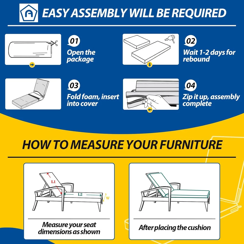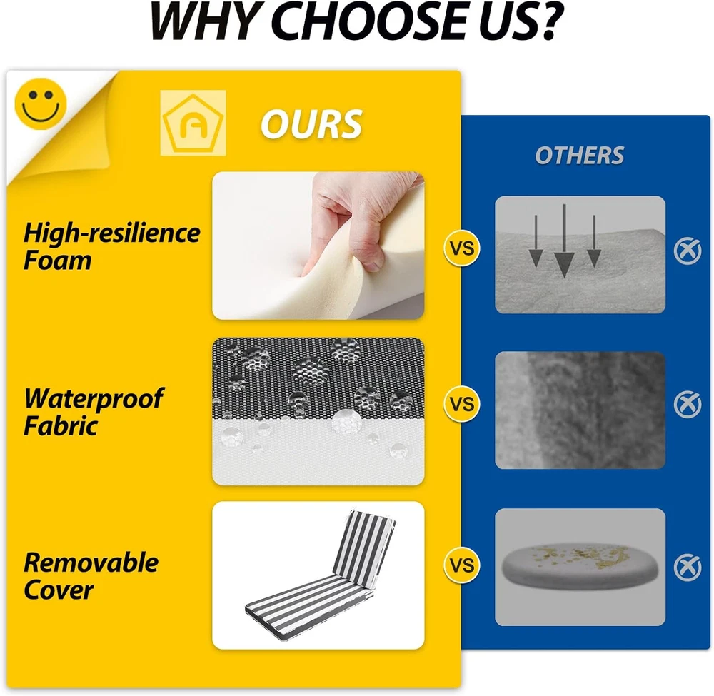 Store New Arrivals Add to Favorite View Feedback Contact Outdoor Chaise Lounge Cushions for Patio Furniture Lounge Chairs, Waterproof Fabric, 74 X 23 X 3 Inch, Gray Cabana Stripe Description Unit Count 1.0 Count Number of Items 1 Color Gray Cabana Stripe Pattern Striped Product Dimensions 74"L x 23"W Country of Origin China Shape Rectangular Item Weight 8.64 pounds Pillow Type Furniture Cushion Fill Material Foam Age Range (Description) Adult Size 1 Count-74 in L x 23 in W x 3 in T Special Feature Water-Resistant, Waterproof, Fade-Resistant, UV-Resistant Cover Material Polyester About Size: Seat: 46L×23W×3H inches, Backrest: 28L×23H×3T inches (dimensional tolerance: 1'' ). To get the right outdoor chaise lounge cushion, please measure the seat size of your outdoor furniture before ordering. Compressed and packed in a roll, the cushion foam inserts may come to you a bit bigger and thinner than their normal sizes after you unpack them. Please allow several days for them to rebound back or pluff them up faster by evenly moving a hair dryer around them for several minutes Waterproof and Removable Cover: Made of sturdy, breathable polyester fabric with a waterproof coating, the cushion cover is UV-protected and fade-resistant, providing you with a comfortable outdoor experience. The removable cover features a zipper for easy cleaning and replacement. The zippers are covered and invisible, so you don't need to worry about them affecting the appearance or functionality Upgraded Cushion Foam: The thicker powder-free high-resilience foam can quickly regain to its original shape after sitting for a long time and provide you with soft and comfortable using experience. This can not only effectively relieve the pressure on your body and enhance your comfort, but also make the chaise cushions more durable after long-term use Non-slip Ties and Piped Edge: The four non-slip ties can be fastened to your furniture to keep the outdoor cushion in place. Some seams are finished with piping, which reinforces the edges and makes the outdoor furniture cushion more stylish Wide Use & Some Tips : The outdoor lounge chair cushions can be used on your chaise lounges in various outside spaces like the pool, patio, balcony, deck, backyard and gazebo. Some tips: the foam inserts and the covers will be separately packed in bags and then put together in one box so please check carefully if they are all included in the box. Easy assembly will be required. If you need any help, please contact our customer service staff first Product Description AAAAAcessories cushions in different sizes and colors Add to Cart Add to Cart Add to Cart Add to Cart Add to Cart Add to Cart Add to Cart Customer Reviews 4.5 out of 5 stars 243 4.4 out of 5 stars 671 4.7 out of 5 stars 26 4.6 out of 5 stars 75 4.5 out of 5 stars 306 4.5 out of 5 stars 58 4.7 out of 5 stars 21 Price $84.99 $ 84 . 99 $114.99 $ 114 . 99 $128.99 $ 128 . 99 $118.99 $ 118 . 99 $49.99 $ 49 . 99 $49.99 $ 49 . 99 $44.99 $ 44 . 99 Size 72 x 21 x 3 24 x 24 x 5 + 24 x 19 24 x 24 x 5 + 24 x 19 x 4 25.5 x 25.5 x 5 + 25.5 x 13.5 19 x 19 x 3 20 x 20 x 3 + 20 x 24 x 3 42 x 18 x 3 Waterproof ✔ ✔ ✔ ✔ ✔ ✔ ✔ Fadeproof ✔ ✔ ✔ ✔ ✔ ✔ ✔ Ties 4 Ties 2 Ties 2 Ties 2 Removable Ties 2 Removable Ties 4 Ties 2 Ties Rolled edge ✔ ✔ ✔ ✔ ✘ ✘ ✔ Non-slip Bottom ✘ ✘ ✘ ✔ ✔ ✔ ✘ ABOUT US We offer the best prices around on high quality products. Our E-store includes media such as books, movies, music and games while offering electronics, toys, sporting apparel, clothing, tools, general home, garden items and more. SHIPPING We are always working hard to ensure your package arrives as soon as possible. Please understand that some factors like weather, high postal traffic, and the performance of shipping companies are outside of our control. We offer free shipping to the lower 48 states and ship within 2 business days of payment, usually sooner. We do not accept P.O. Boxes. Please provide a physical address. For shipping outside of the continental USA, we only use eBay's Global Shipping Program.The item is shipped to KY and then sent to the rest of the world. International customers are responsible for all duties and taxes. Continue to check out in order to calculate costs for shipping the item to your country. Messages regarding eBay's Global Shipping Program MUST be directed at eBay EXCLUSIVELY. RETURNS We offer a 30-Day Return Policy on items which you are not completely satisfied with. You have the option for a full-refund or an exchange of the item. No returns are available on items shipped outside of the USA. PAYMENT We accept PayPal. CONTACT US This page content is yet to come Please ad us to your favorite seller and visit again later Thank You CUSTOMER SATISFACTION We try our very best to make sure every customer is completely satisfied. If there's a problem, message us! We're happy to help. WE ACCEPT Copyright © 2021 AutoDS. | All Rights Reserved