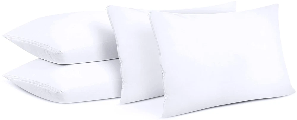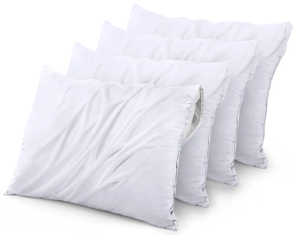 Waterproof Queen Size Pillow Protectors Zippered (4 Pack, White), Dust Mite and Bed Bug Proof Pillow case Protectors, Moisture Wicking Pillow Encasement Covers 20 x 28 Inches Pillow Protectors Set of 4: These pillow protectors are tailored to fit Queen-sized pillows, each measuring 20 x 28 inches. (Please note, this set includes pillow covers only, not the pillow inserts.) Polyester Knitted Jersey: This fabric provides great comfort and features a TPU coating on all sides to make it waterproof. Zippered: A premium zipper and double-hemmed stitching keep your pillow securely enclosed and protected. Easy Care: Machine wash gently with the waterproof lining facing inward and tumble dry on low heat. Avoid ironing, bleaching, or dry cleaning. Bed Bug Proof Pillow Covers: The high-quality zipper completely encloses the pillow, offering strong protection against bed bugs. Shipping We offer FREE shipping on all orders! We ship within Three business days of payment, usually sooner. We use a selection of shipping services such as UPS, FedEx, USPS etc. We only ship to the lower 48 states, no APO/FPO addresses or PO Boxes allowed. Local pickups and combined shipping options are not provided at this time. Return You can return a product for up to 30 days from the date you purchased it. Any product you return must be in the same condition you received it and in the original packaging. Please keep the receipt. Payment We accept payment by any of the following methods: PayPal Please pay as soon as possible after winning an auction, as that will allow us to post your item to you sooner! Feedback Customer satisfaction is very important to us. If you have any problem with your order, please contact us and we will do our best to make you satisfied. Contact Us If you have any queries, please contact us via ebay. We usually respond within 24 hours on weekdays. Please visit our eBay store to check out other items for sale! Thank you for shopping at our store.
